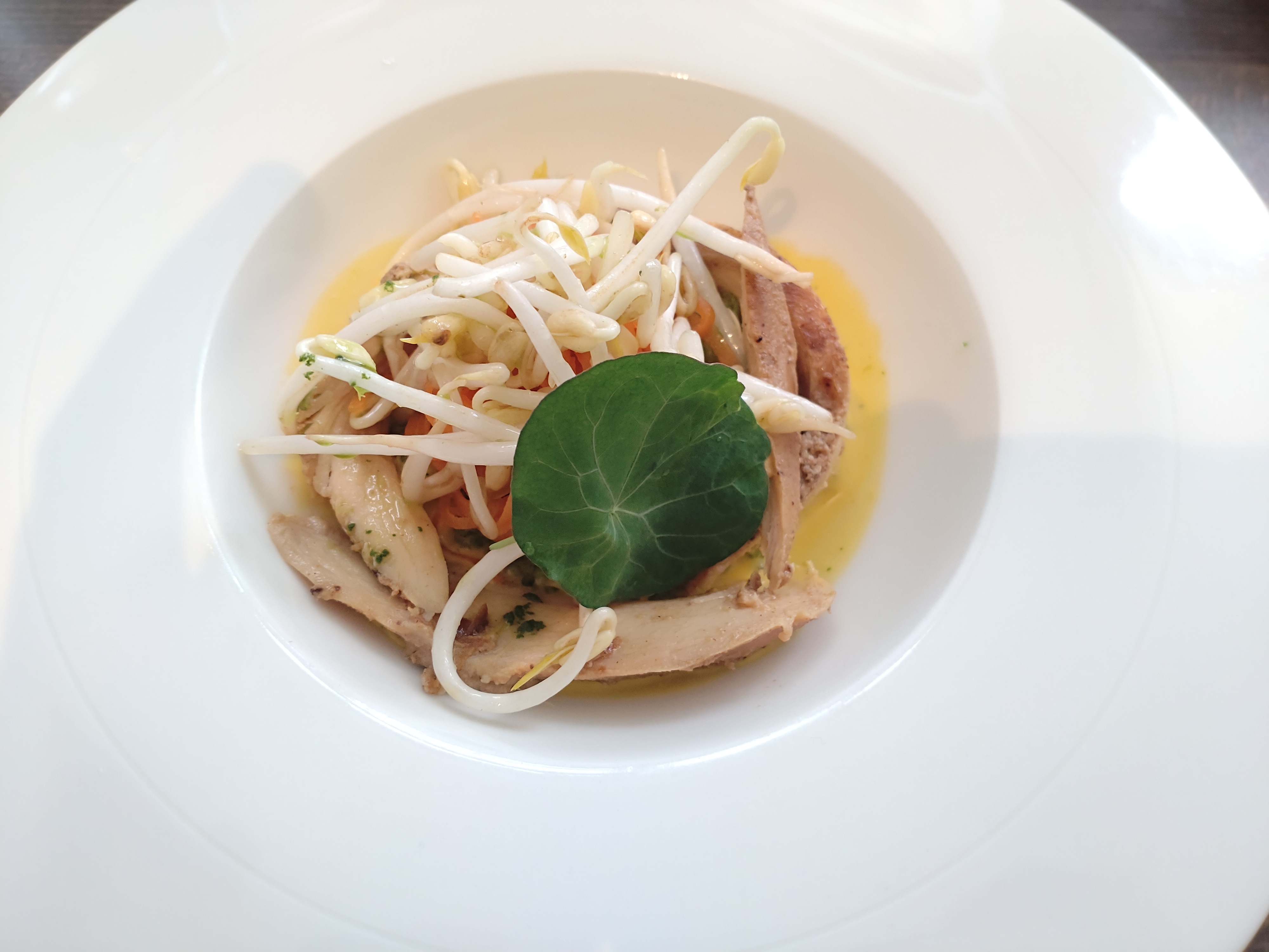 La nourriture était très intéressante avec l'utilisation de différents ingrédients qui ne sont pas couramment utilisés - curry dans un plat français, piment et basilic dans un dessert, etc. La truite était exceptionnelle. Légèrement croustillant à l'extérieur mais la chair reste tendre et savoureuse. Les saveurs sont bien équilibrées pour ne pas masquer le goût original du poisson lui-même. Le plat principal de porc était également très bon. La coupe, la saveur et la texture sont presque à la hauteur de l'un des meilleurs katsu de Kyoto. Le dessert était intéressant mais je n'étais pas trop fan des desserts créatifs comme celui-ci. Je préfère mes desserts traditionnels et sucrés. Le chef est très passionné et a même pris le temps d'avoir une conversation en face à face avec tous ses convives. Globalement, un excellent rapport qualité-prix compte tenu de la réflexion et du soin apportés à la vaisselle pour le prix.