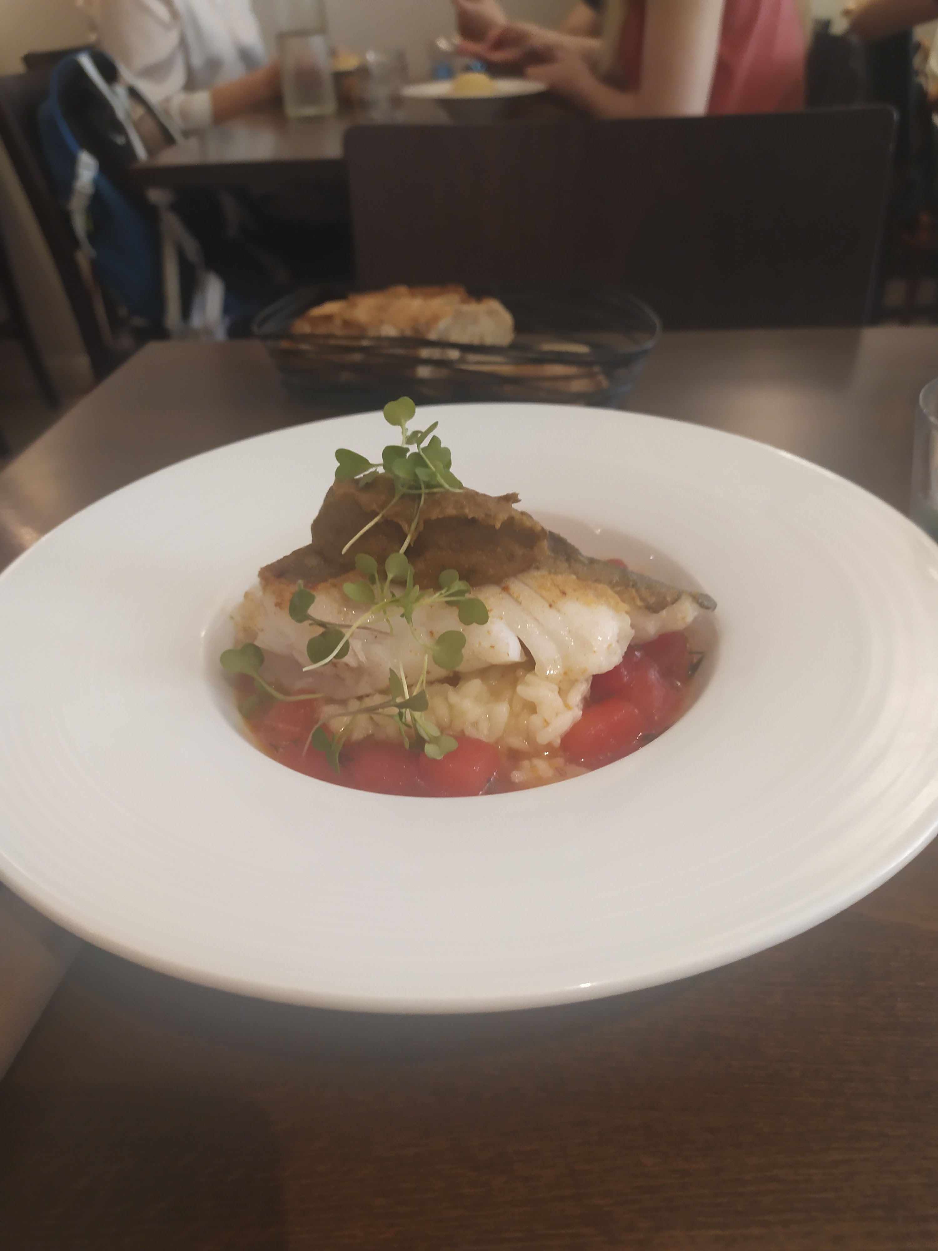 Quelle découverte surprenante ! La nourriture était excellente et très abordable. Nous avons pris le déjeuner et le poisson était tout simplement exquis. Peau croustillante et légèrement cuite à l'extérieur, et servie avec une délicieuse purée de pois chiches. Le dessert était également délicieux et tous les ingrédients se mariaient à merveille. Malheureusement, je n’ai pas d’autres photos car nous avons démoli chaque parcours avec tant d’enthousiasme. Merci Chef pour ce bon repas!