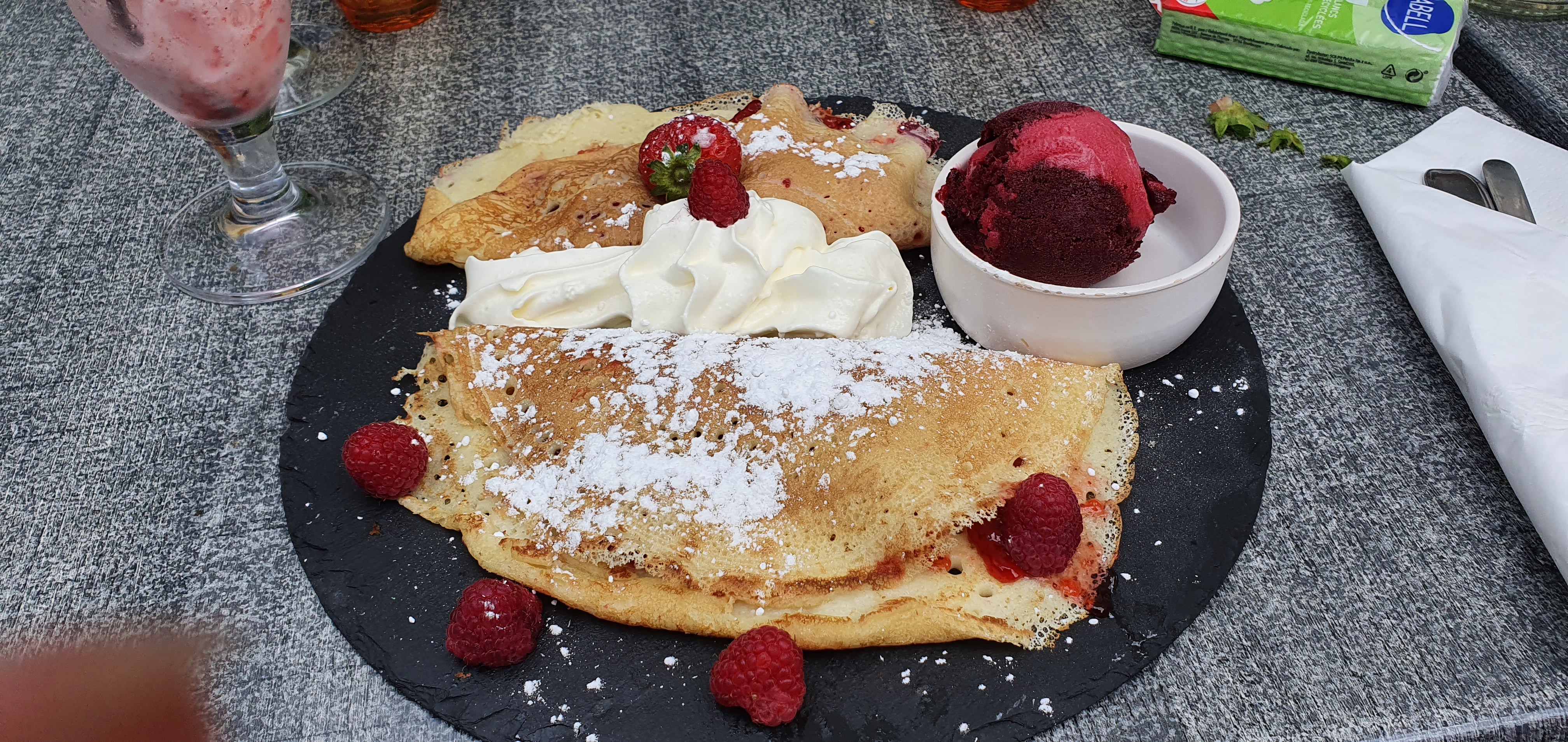Nous sommes arrêtés par hasard pour boire un verre et petit goûter, très belle découverte, nous nous sommes régalés! Fruits frais et glace excellente.