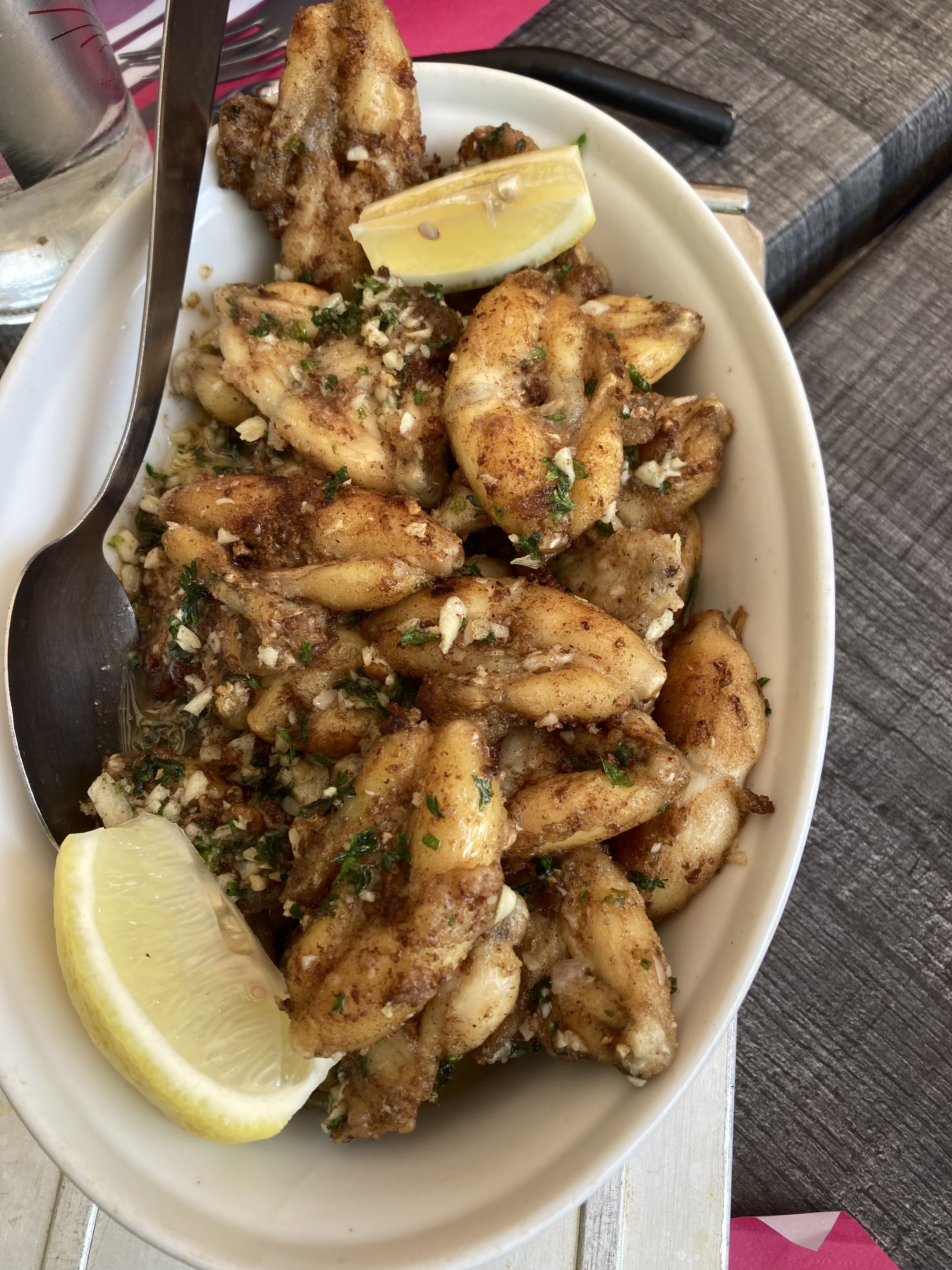 Grenouilles persillade très bonnes. Pas trop grasse. Service au top