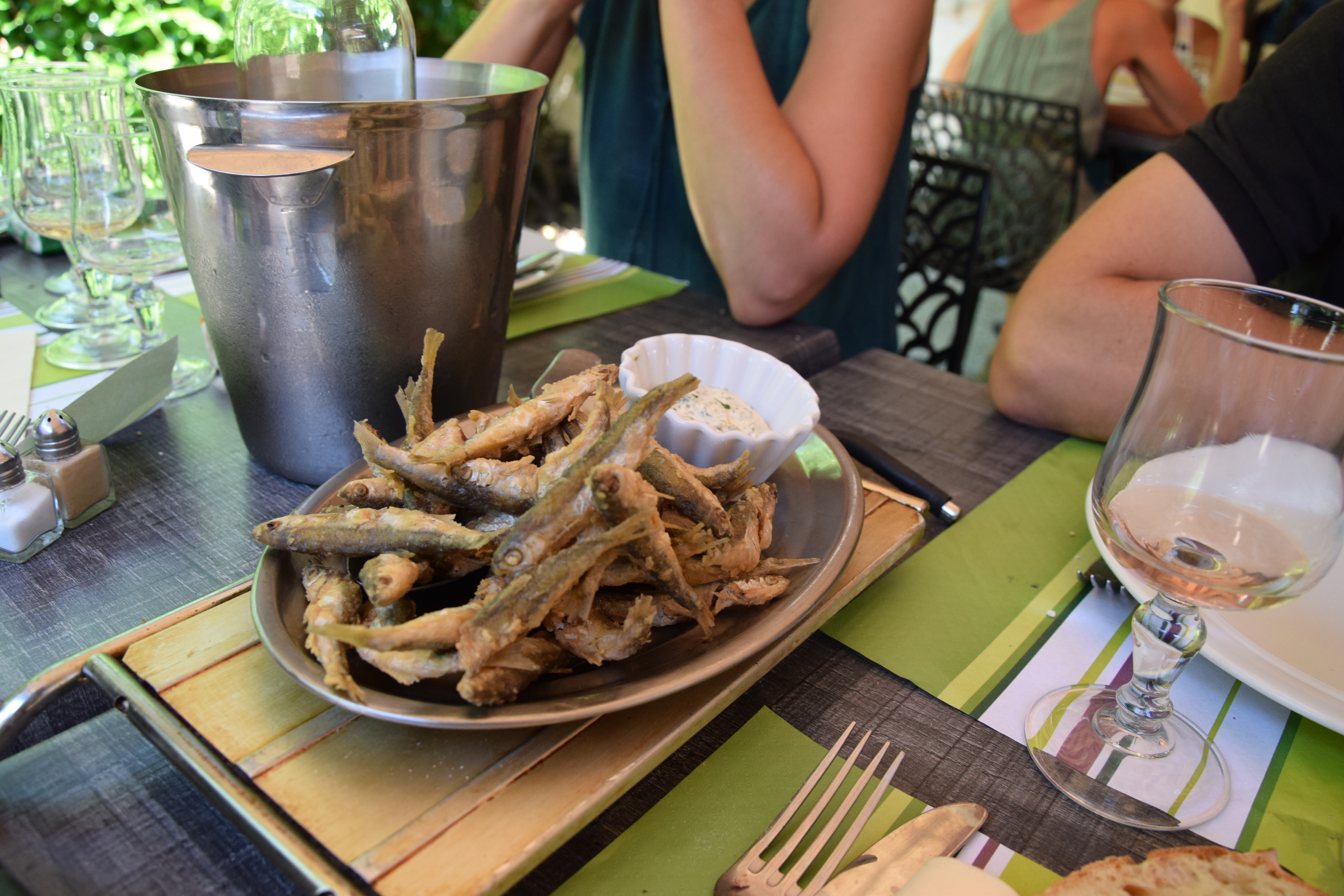 Agréablement surpris par les menus de notre table ! Escargots excellents tout comme la friture , les grenouilles a la provencale !! Pour le dessert, des glaces !! Rosé de provence le service sdans servi tres frais da