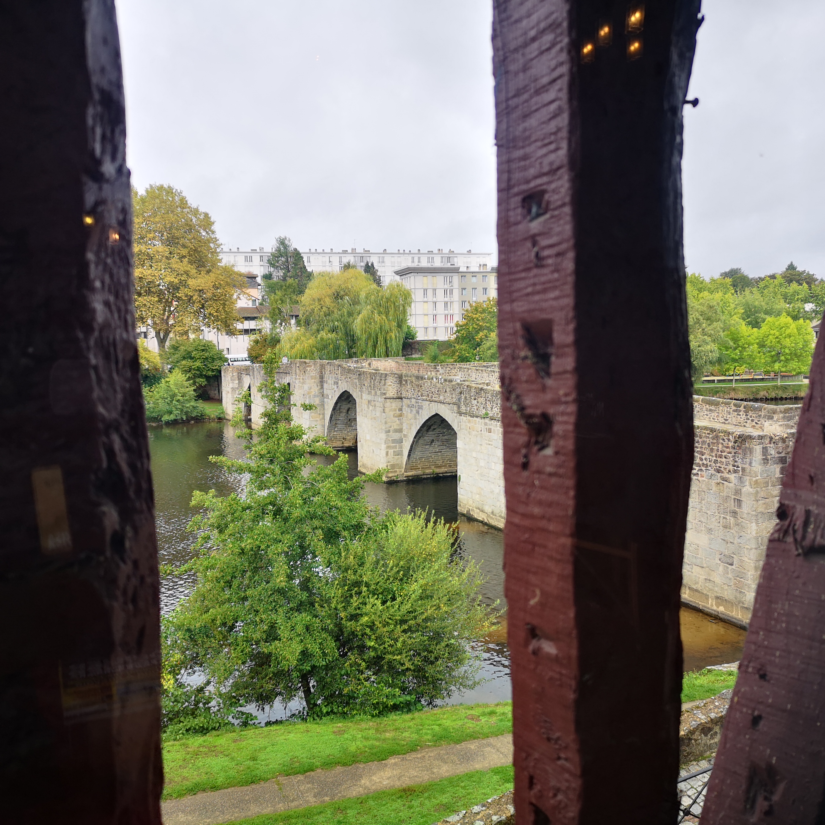 Permet une vue d'ensemble. La végétation est dense sur les bords de la vienne. Génial pour courir les bords sont aménagés on y prend le frais aussi. C'est à voir. Vieux quartier accessible par le pont.