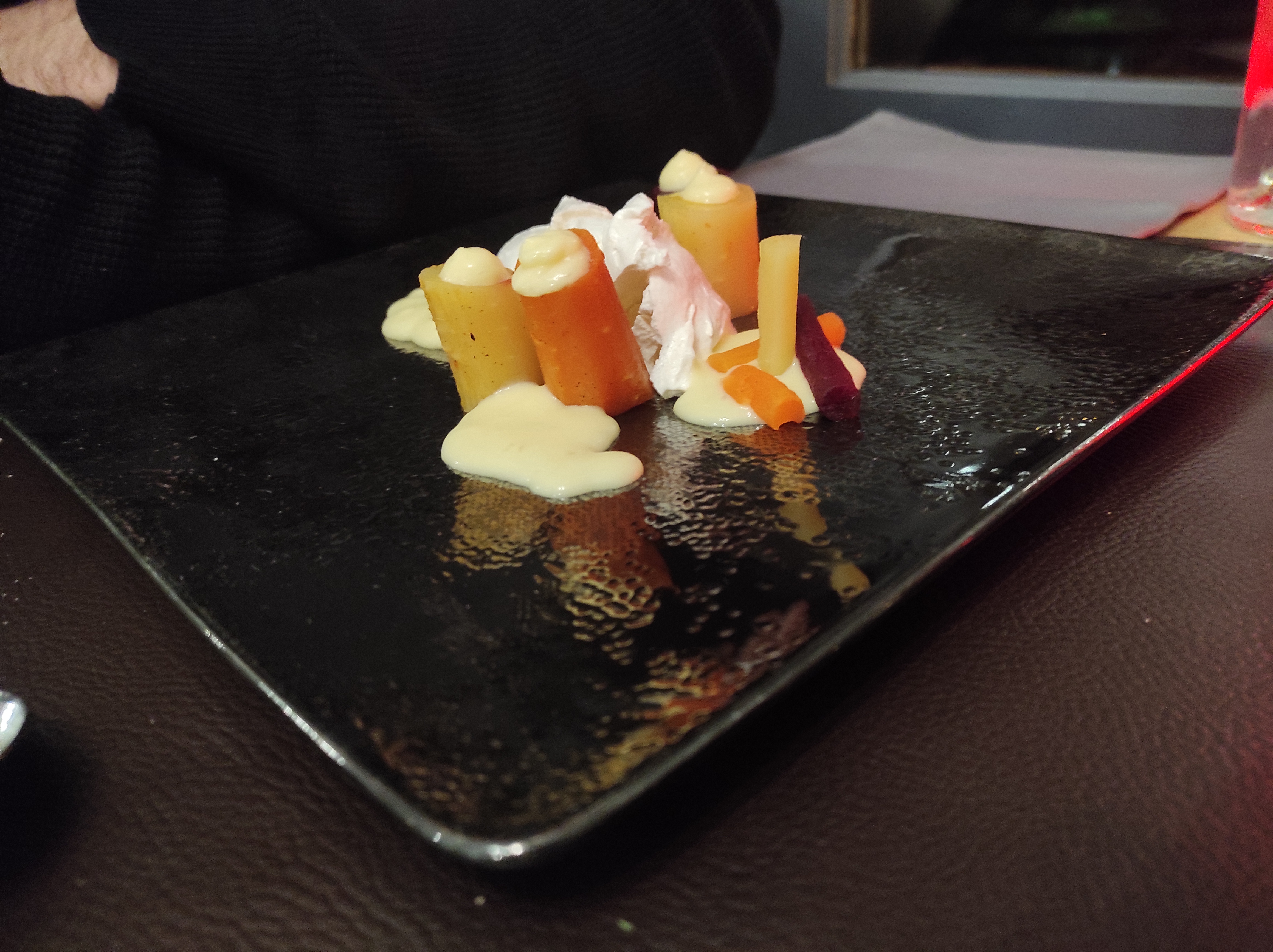 Très bon moment .Les assiettes sont originales et raffinées comme leur contenus . Une explosion de saveurs de l'entrée au dessert. A recommander pour sortir des chemins battus de la cuisine classique. ..