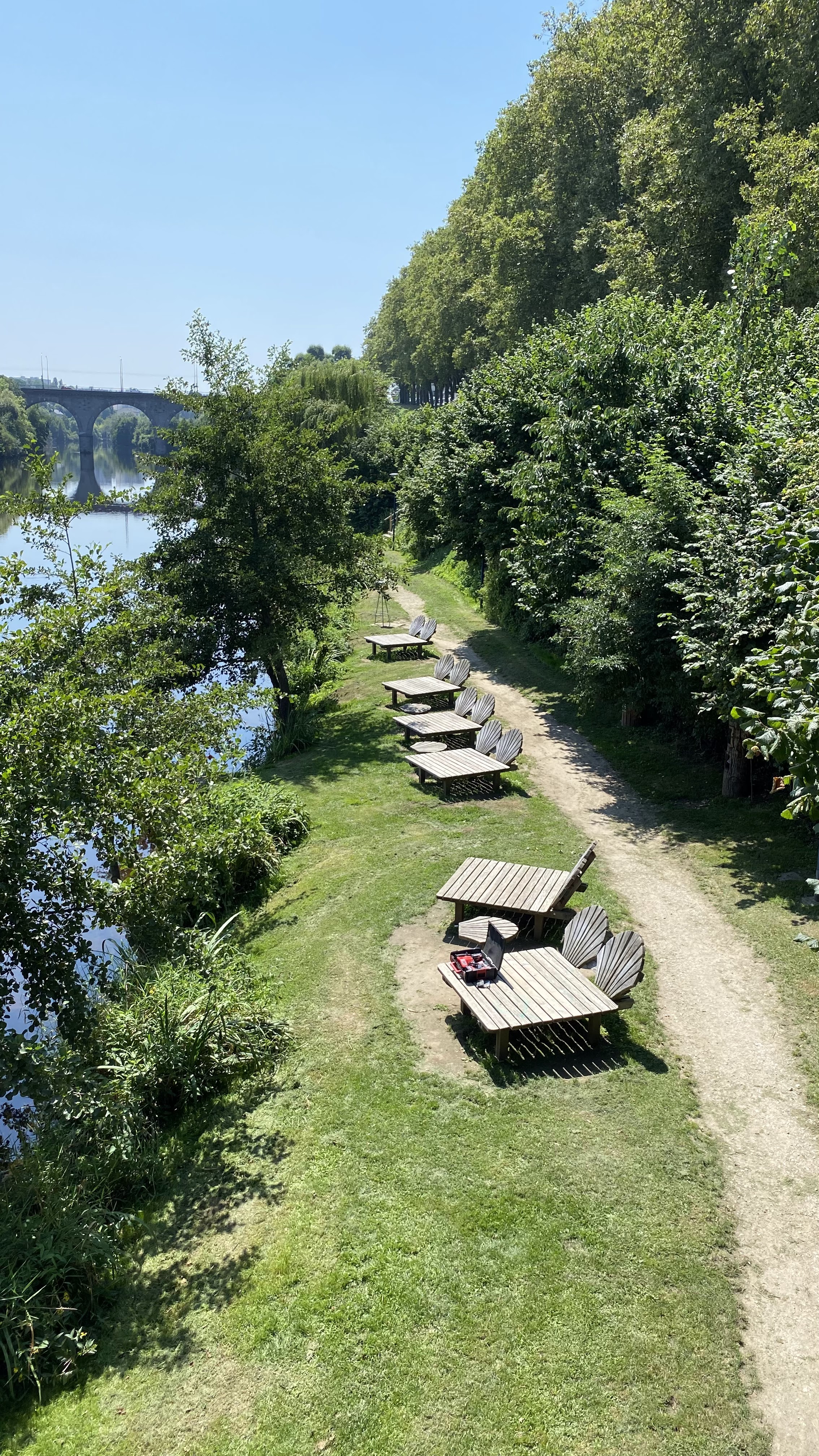 Promenades agréables à faire les aménagements (transats, terrains de pétanque et jeux pour enfants) sont agréables et ombragés l'après midi. Belle vue sur la Vienne
