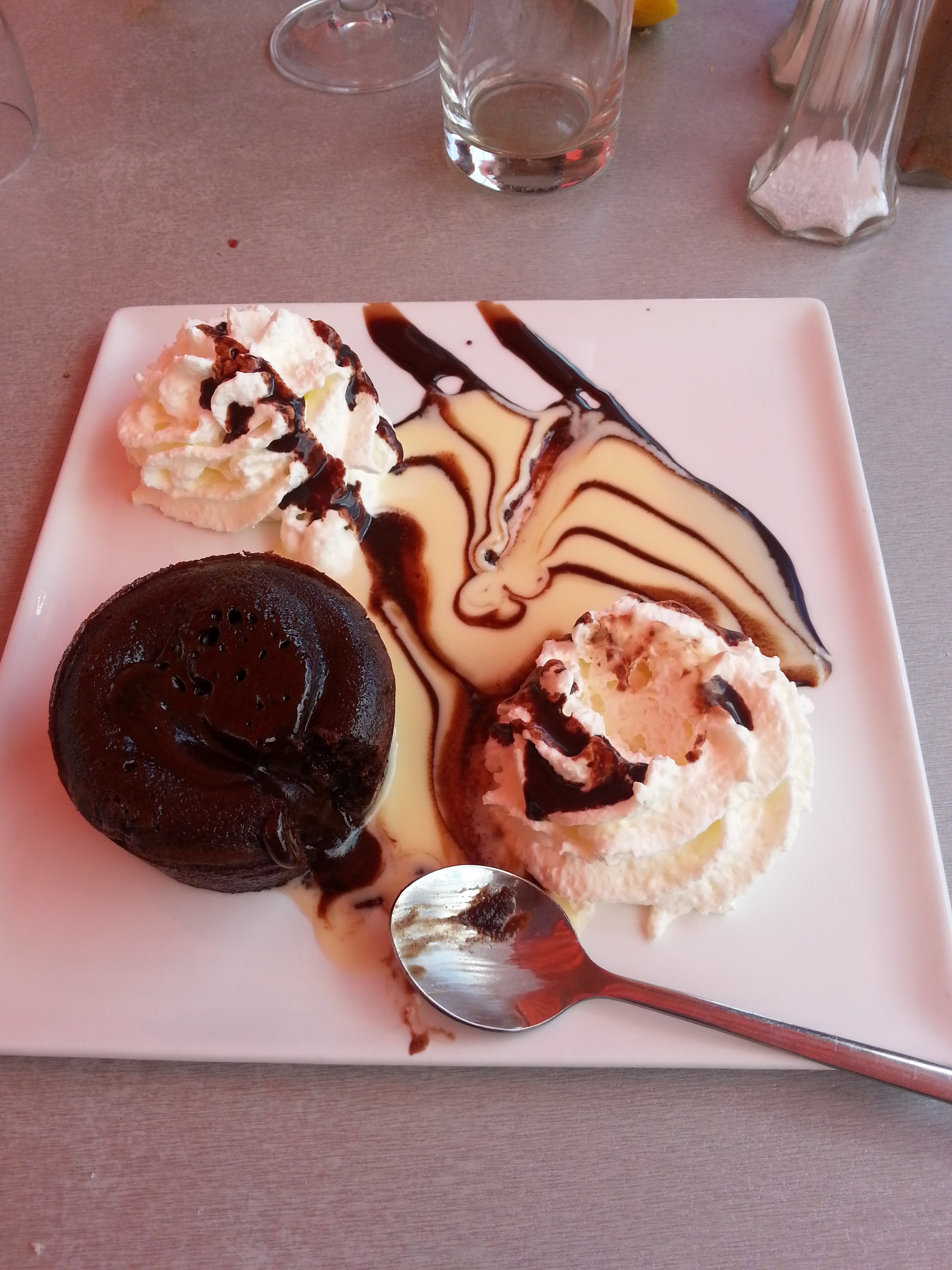 Resto bon sans plus le mi cuit de thon Était bien cuisine avec une petite ratatouille sympa le riz par contre un peu trop cuit et la salade un peu croquante sous la dent dommage service un peu long mais serveuse très sympa et pleine d'humour accueil sympa. Par contre petit bémol pour la déco et l'assiette fêlée avec un peu de sauce qui n'était pas sur le plat dans le coin et petit pot de fleur sur la table cassée mais resto raisonnable concernant les plats et le menu