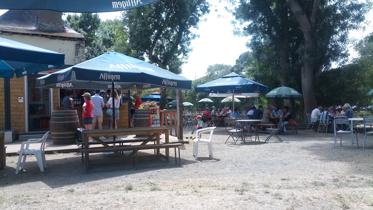 Super guinguette sur l'île Saint-Aubin. Exclusivement accessible par la petite navette, moyen de transport super original qui ajoute du charme au lieu