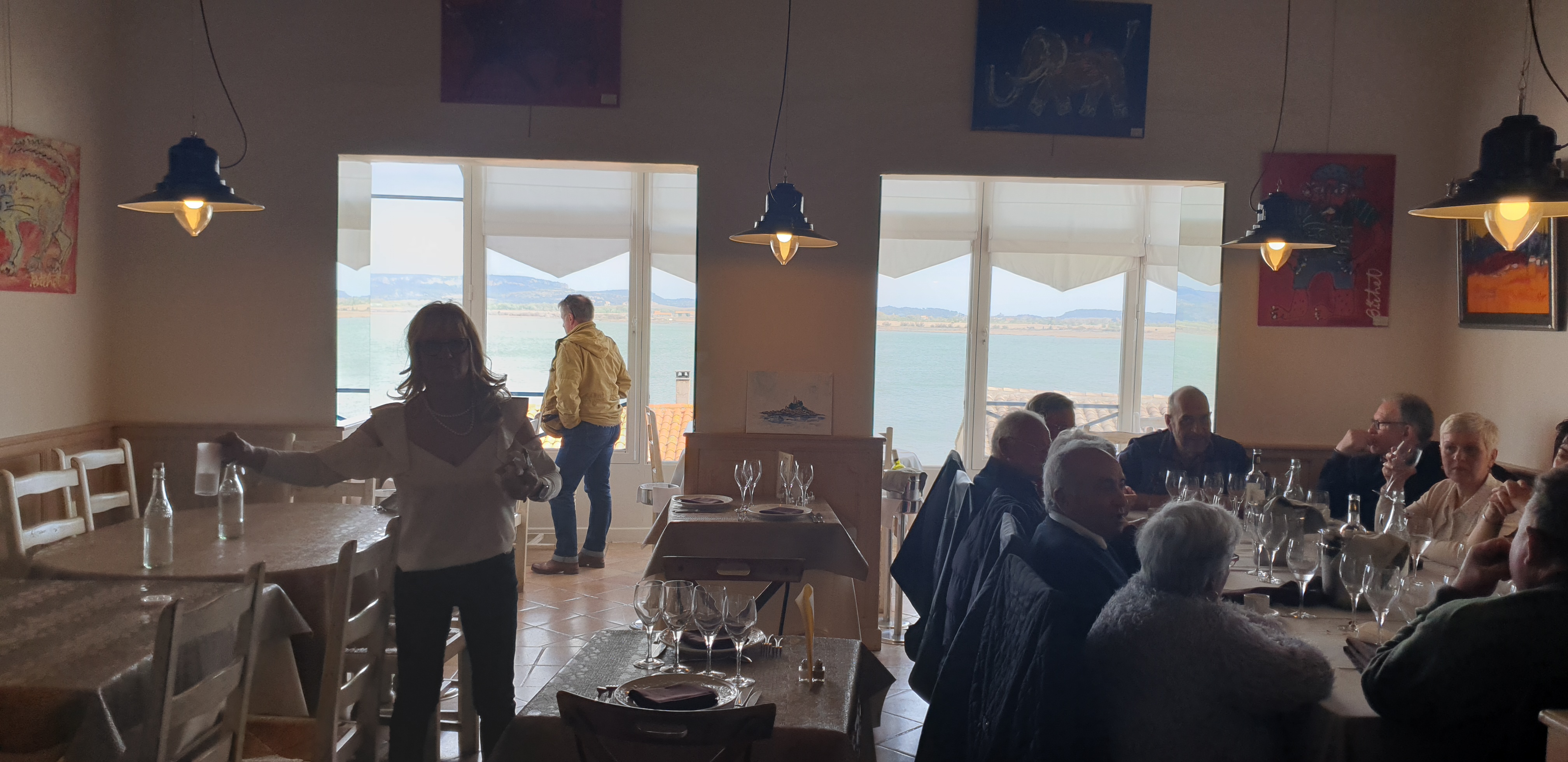 Pour la vue sur l'étang de Bages, préférez la réservation ou arrivez tôt....les plats sont corrects et bien présentés, seul bémol l'entrée et le dessert encore congelés à l'intérieur au niveau de centre (heureusement il fait chaud). Et les mignardises du café un peu restreintes.... Les vins sont extrêmement chers pour l'endroit. La salle est climatisée.