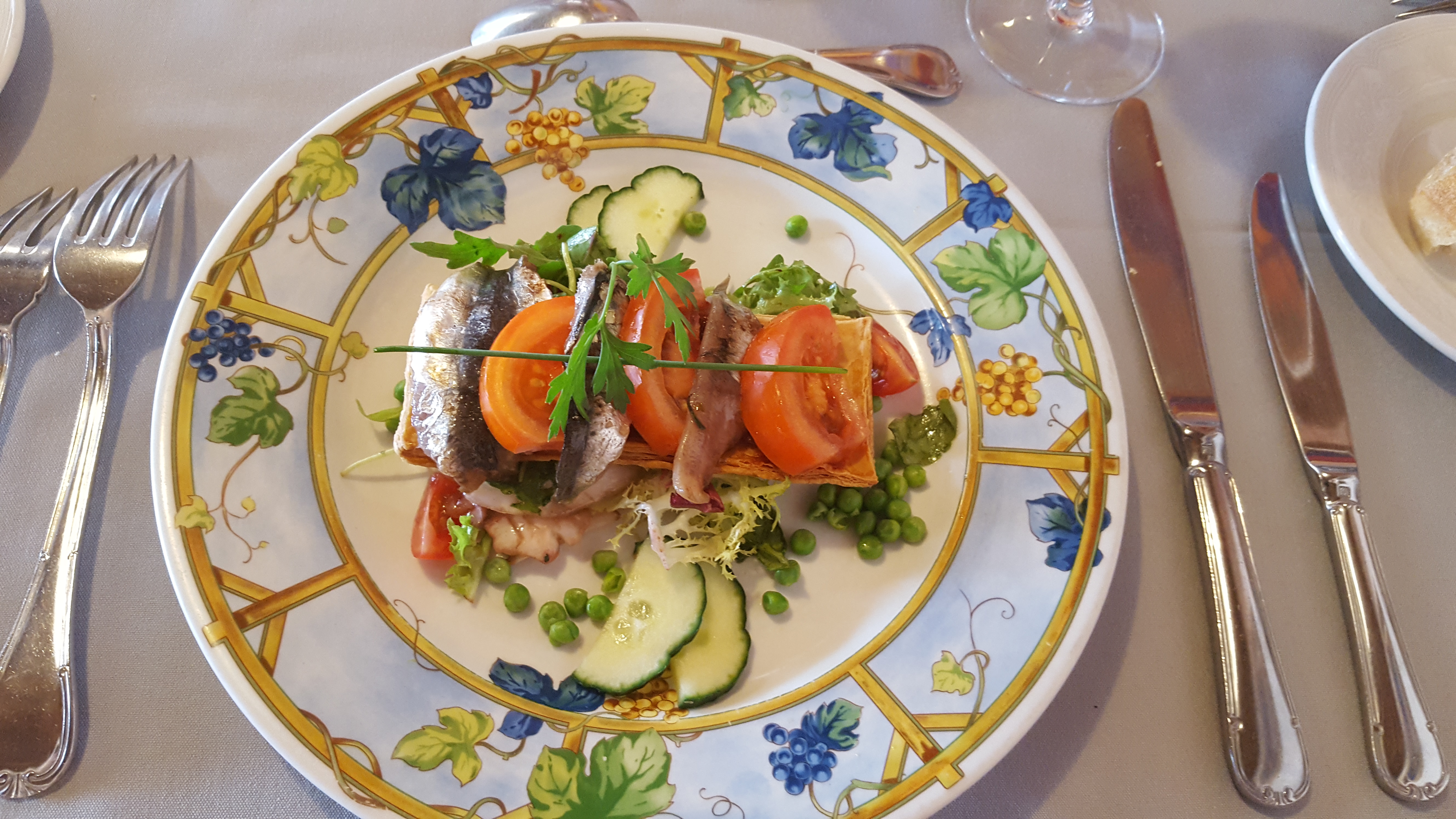 Accueil tres froid...peut etre n avions nous pas la tenue correcte exigee... Vient ensuite la placement a table et ma demande d un coussin pr notre petite en guise de rehausseur....oh le beau coussin du chat! (Très sale... Et tres poilu aussi!) Concernant le repas....mouais...au vue des tarifs on s attendais a mieux! Et surtout, n attendez pas apres le pain car ici c est rationné...pas de proposition de vin non plus..... Rien! On a juste l impression de faire chi** le monde Vraiment zéro.