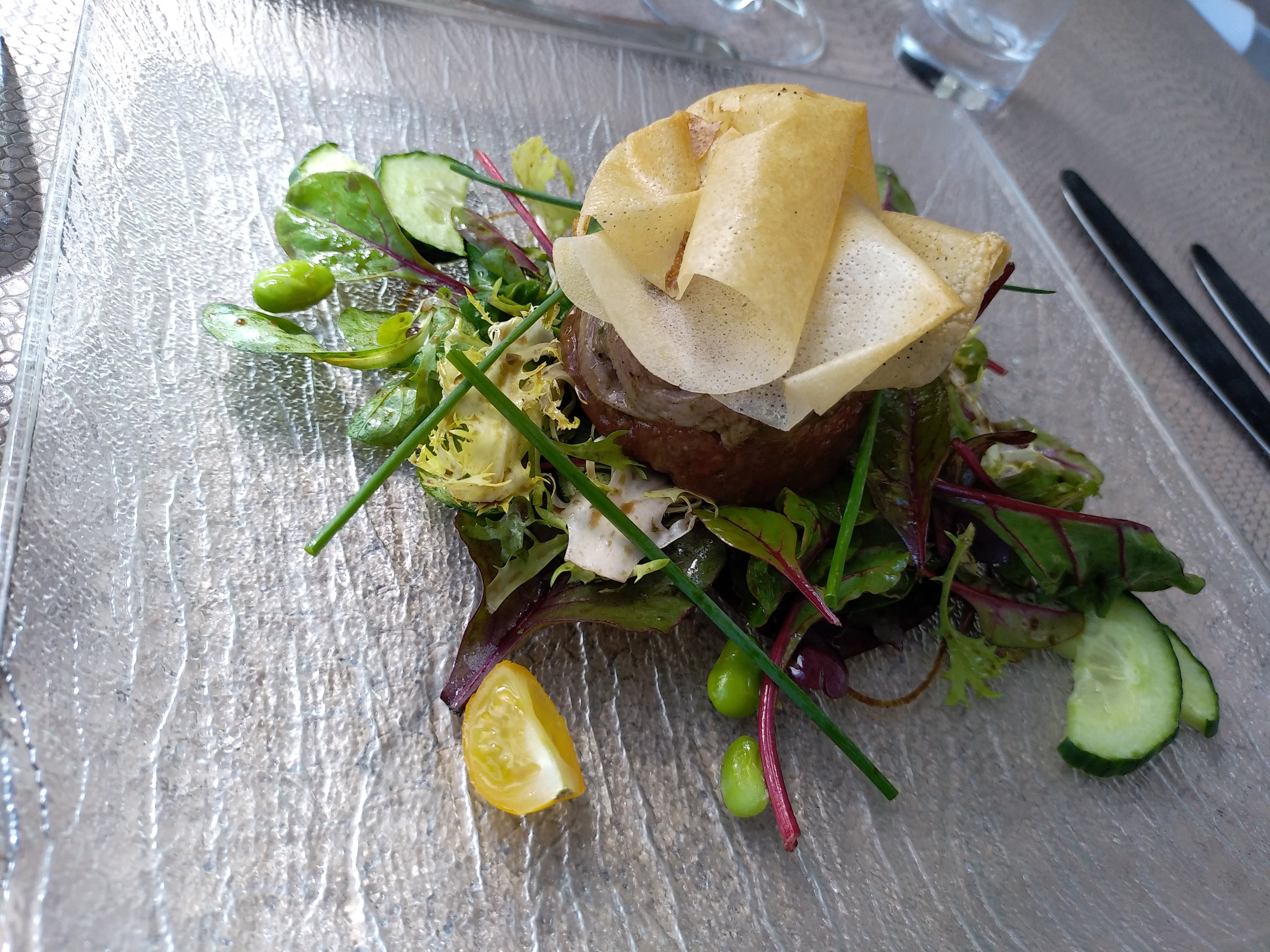 cadeau d'une wonderbox, nous ne regrettons pas d'avoir choisi ce restaurant, belle vue en terrasse sur l'étang, bien reçu et repas très copieux ,bon et original, à refaire