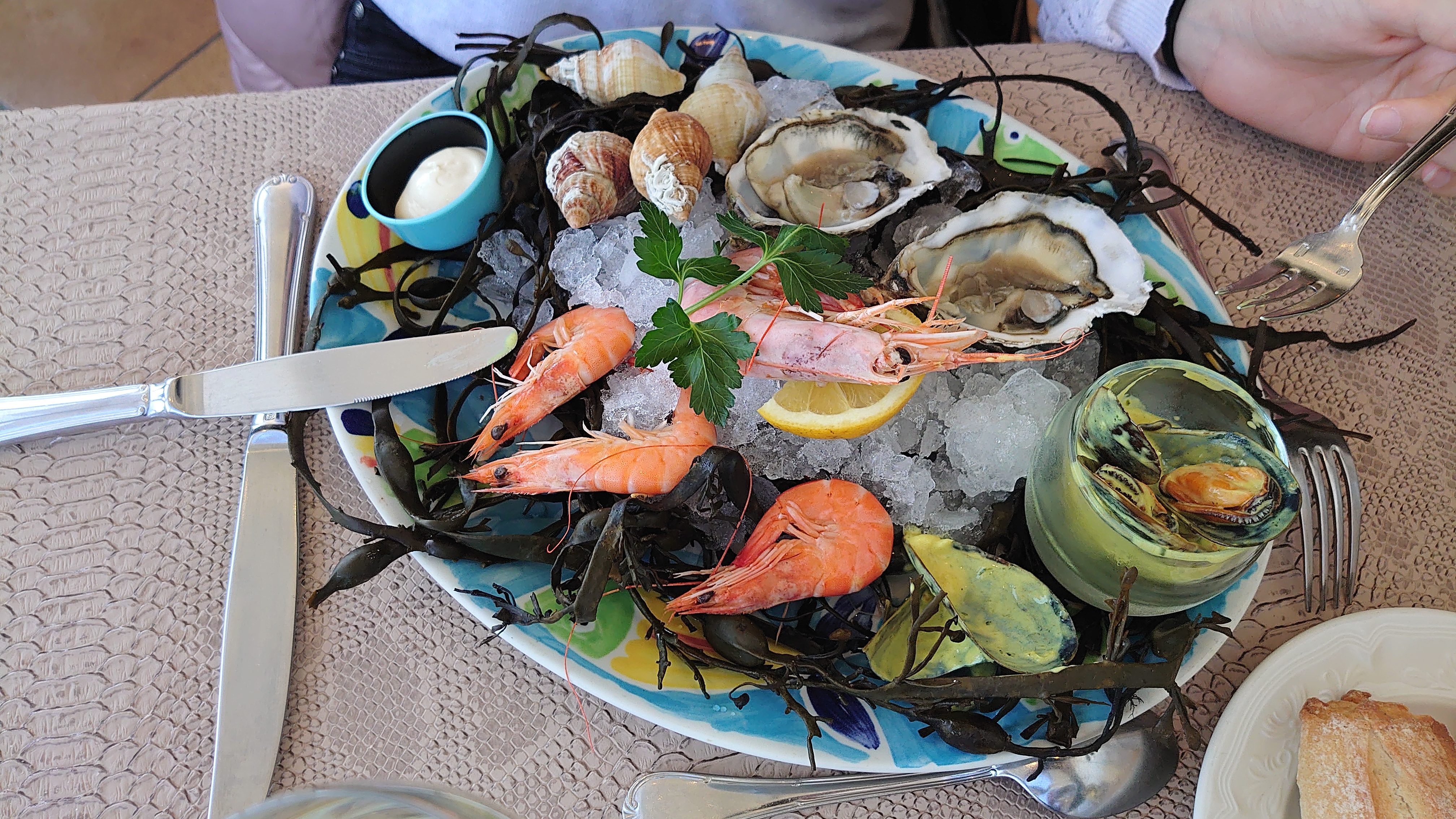 Offert par mon chéri pour mon anniversaire😉Moi qui aime les produits de la mer je me suis régalée de l'amuse bouche au dessert. Tartare de lisse, brochette lotte et gambas😊 Accueil sympathique, serveur aux petits soins. Assiettes bien garnies et goûteuses. Je recommande 👌