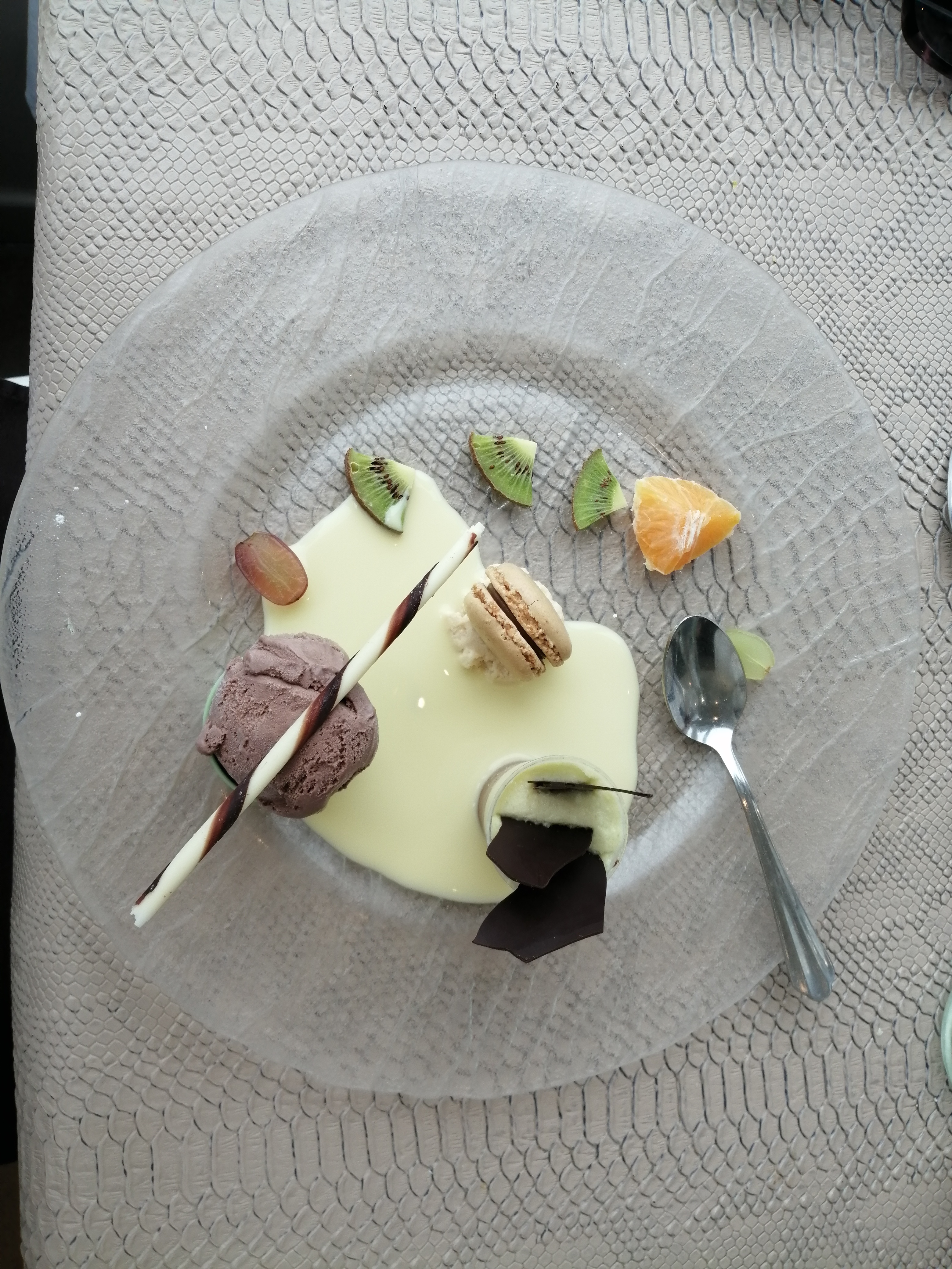 Très décevant. Poissons bouillis sans saveurs, fruits de mer en cours de décongélation, dessert figuette spécialité du restaurant réchauffée insipide. Le consomme de daurade avec une sauce chinoise sucrée pas adaptée. Aucun équilibre dans les plats.