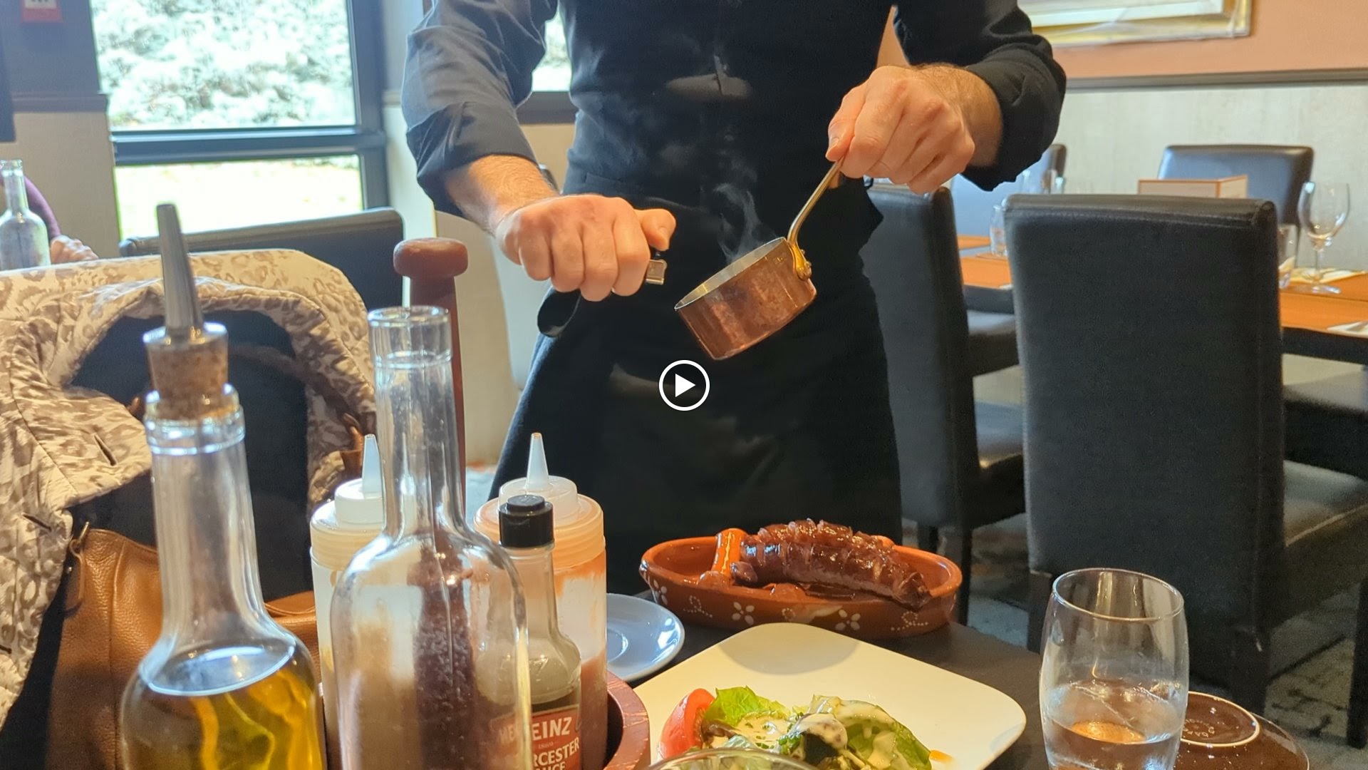 La serveuse n’avait pas l’air d’être contente d’être là et trop rapide pas le temps de finir que l’autre plat arrive déjà et ils te laissent pas le choix de rendre ton plat. Pour un restaurant Portugais plus de superbock dommage. La viande sèche j’ai eu du mal à la manger et le saumon fumé qui est en faite juste du saumon cru pas à mon goût. Nous n’avons pas eu les cafés donc nous avons décidé de partir de table. Très déçu