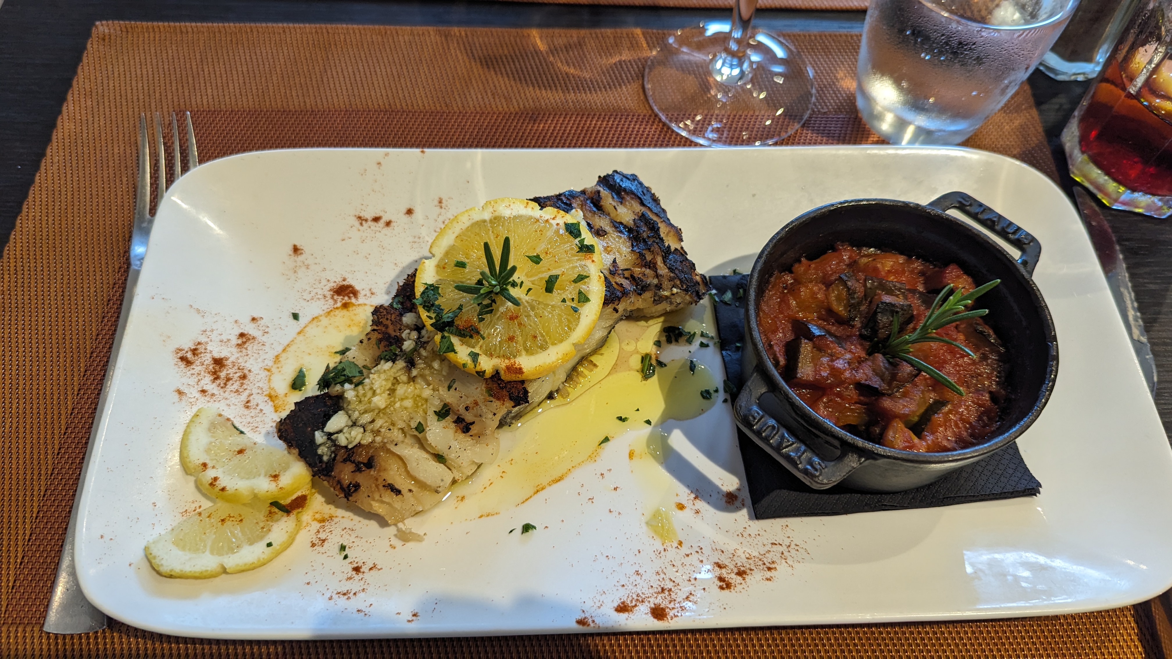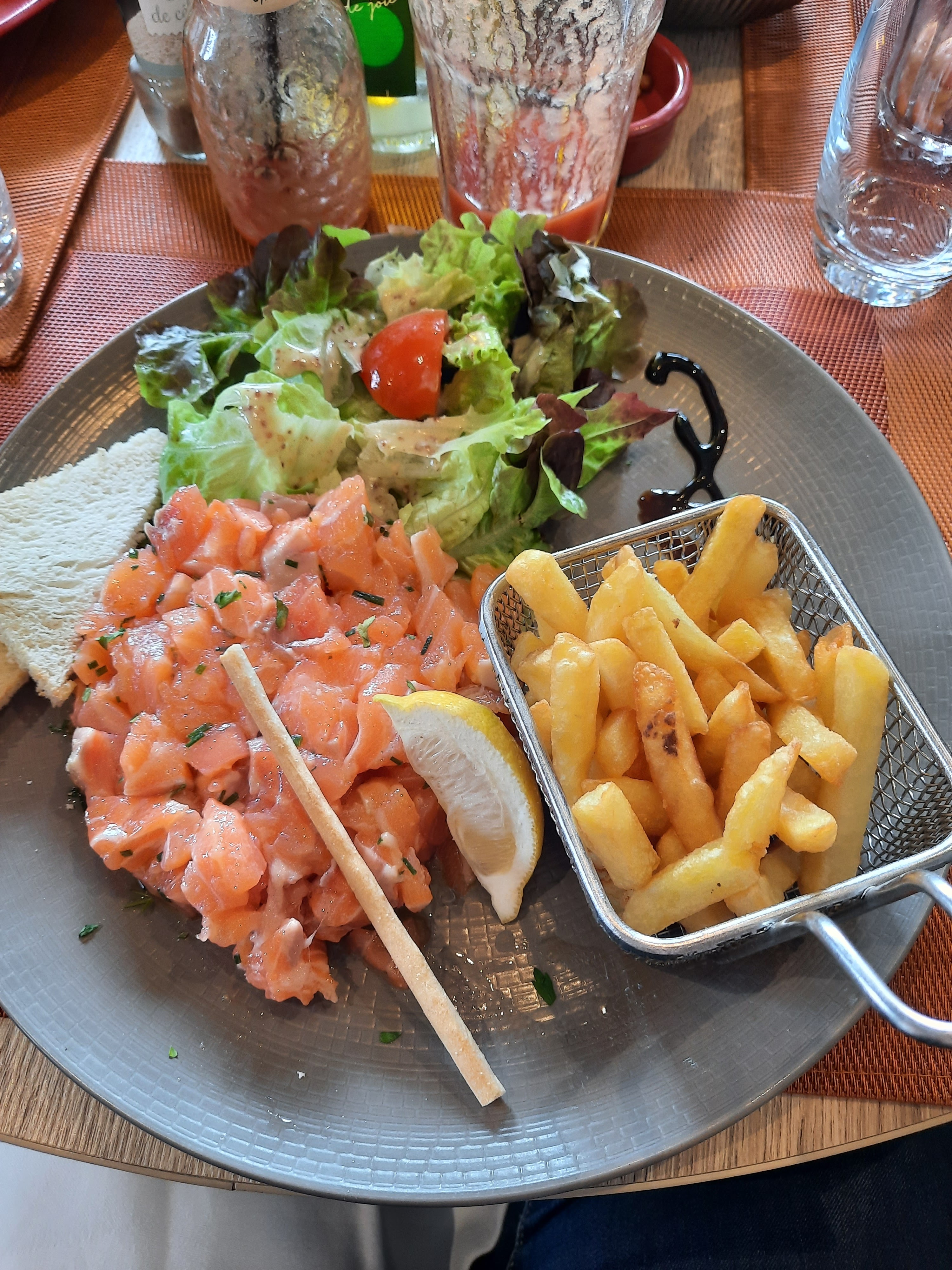 Déjeuner en couple, les plats sont goûteux et copieux, même si le dressage des assiettes manquent un peu de finesse. Le service a été parfait, merci à Océane qui s’est parfaitement occupé de nous.