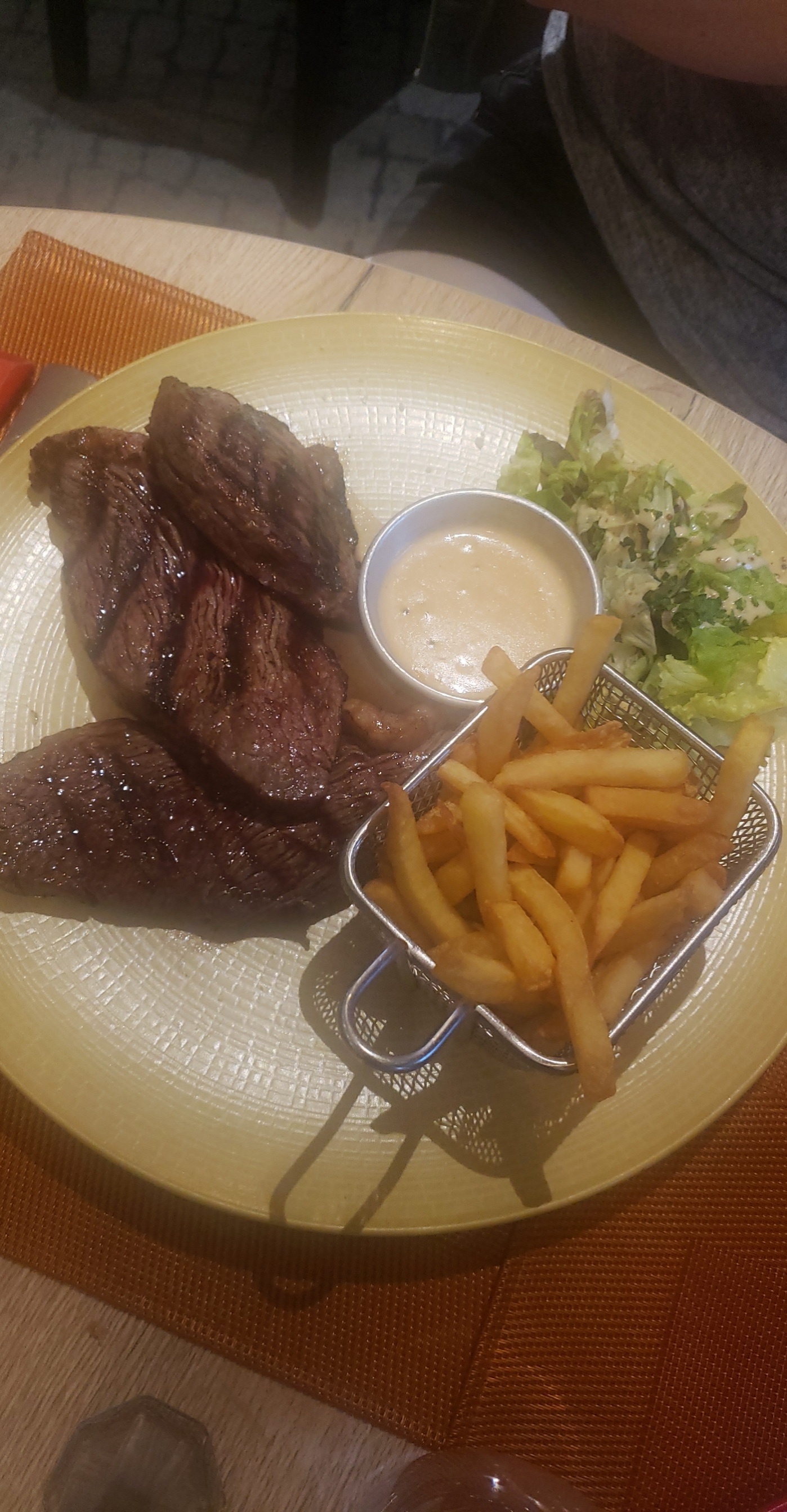 Serveur agréable, cœur de faux filet très tendre je recommande se restaurant.
