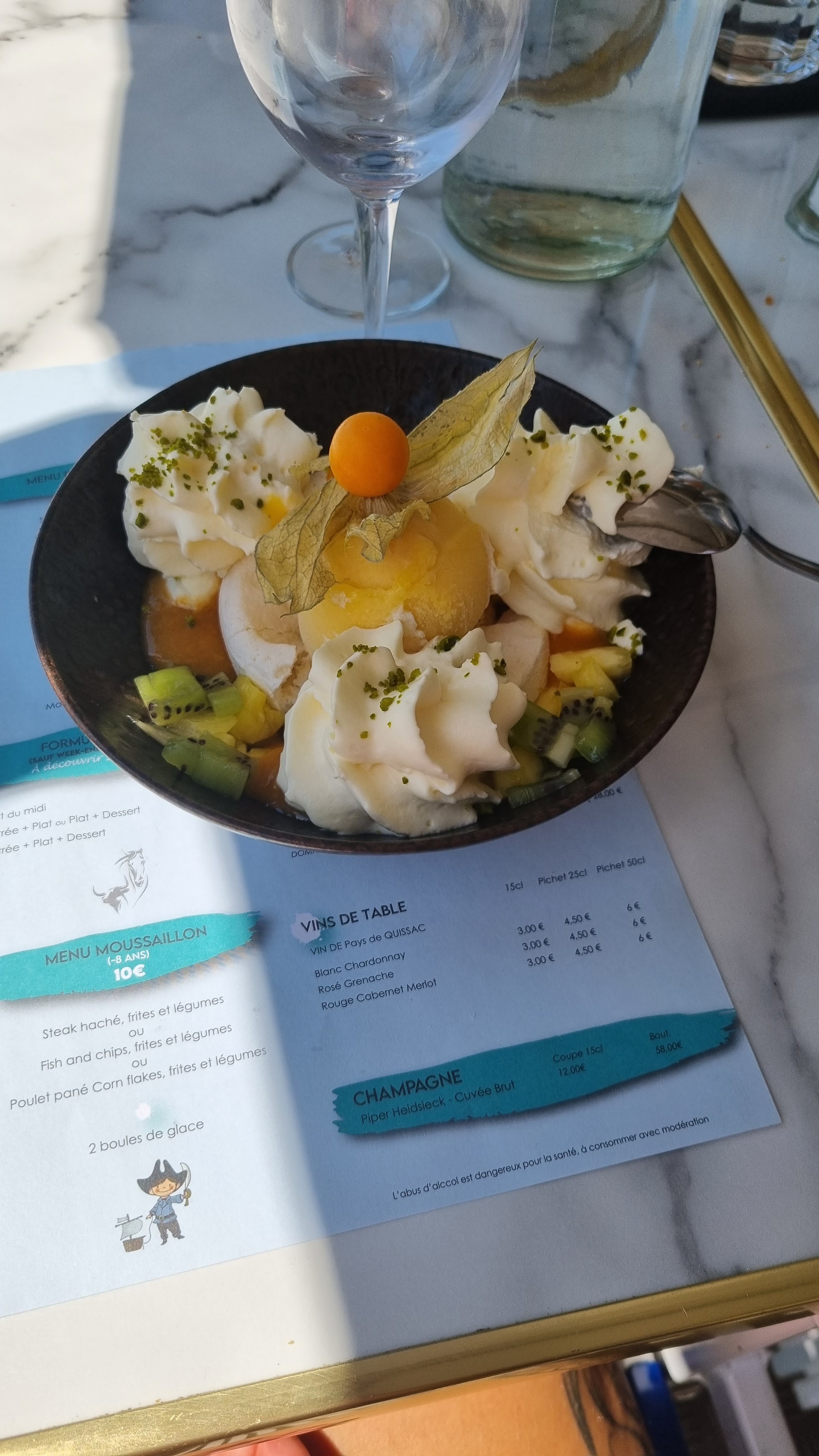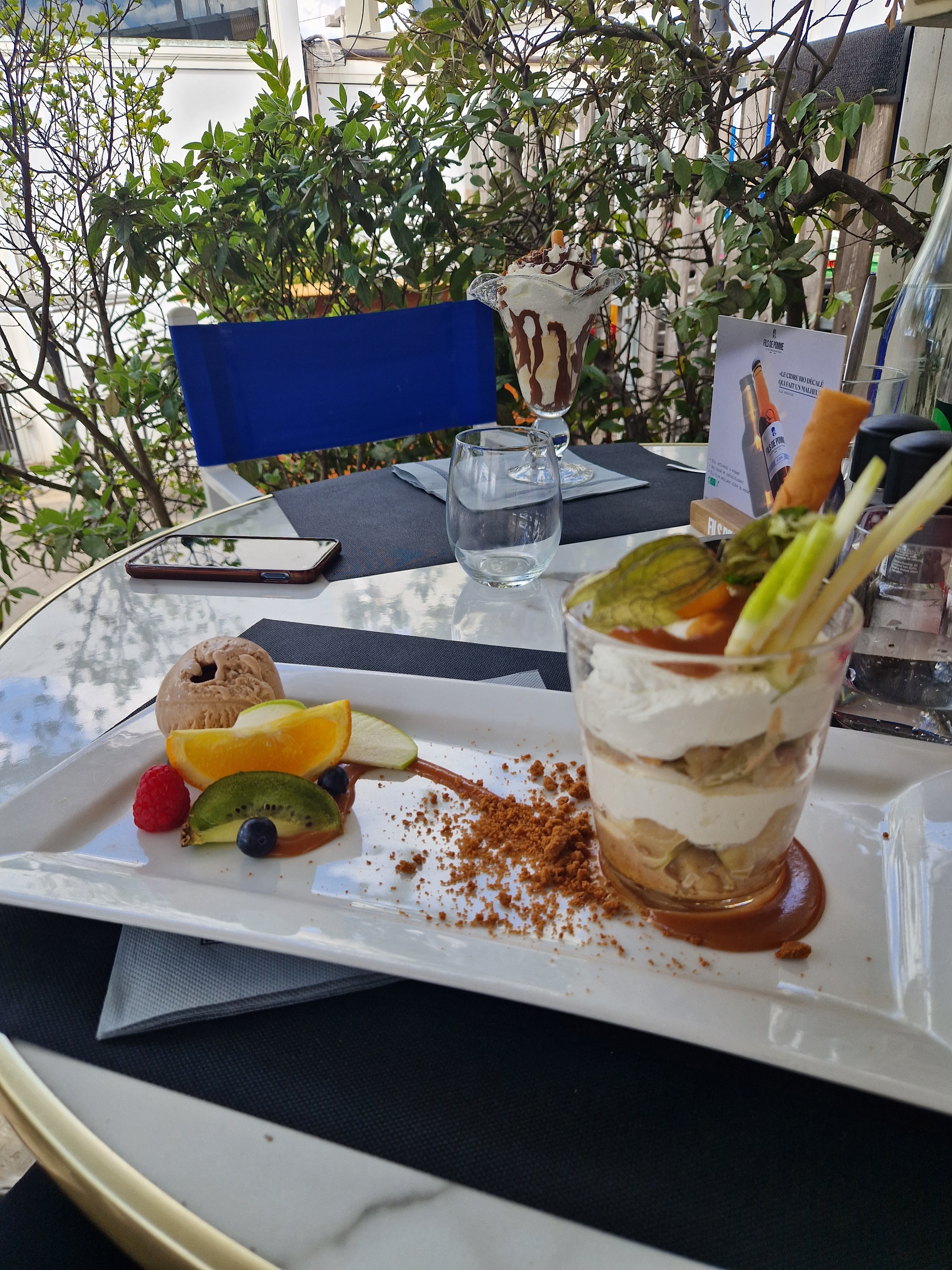 Terrasse sympa avec vue sur le port et les bateaux. Une erreur sur la prise de commande (3 boules de glace) et au final on se retrouve avec 1 boule supplémentaire d'un parfum pas choisi et 1 euro de plus sur la facture. Dommage.