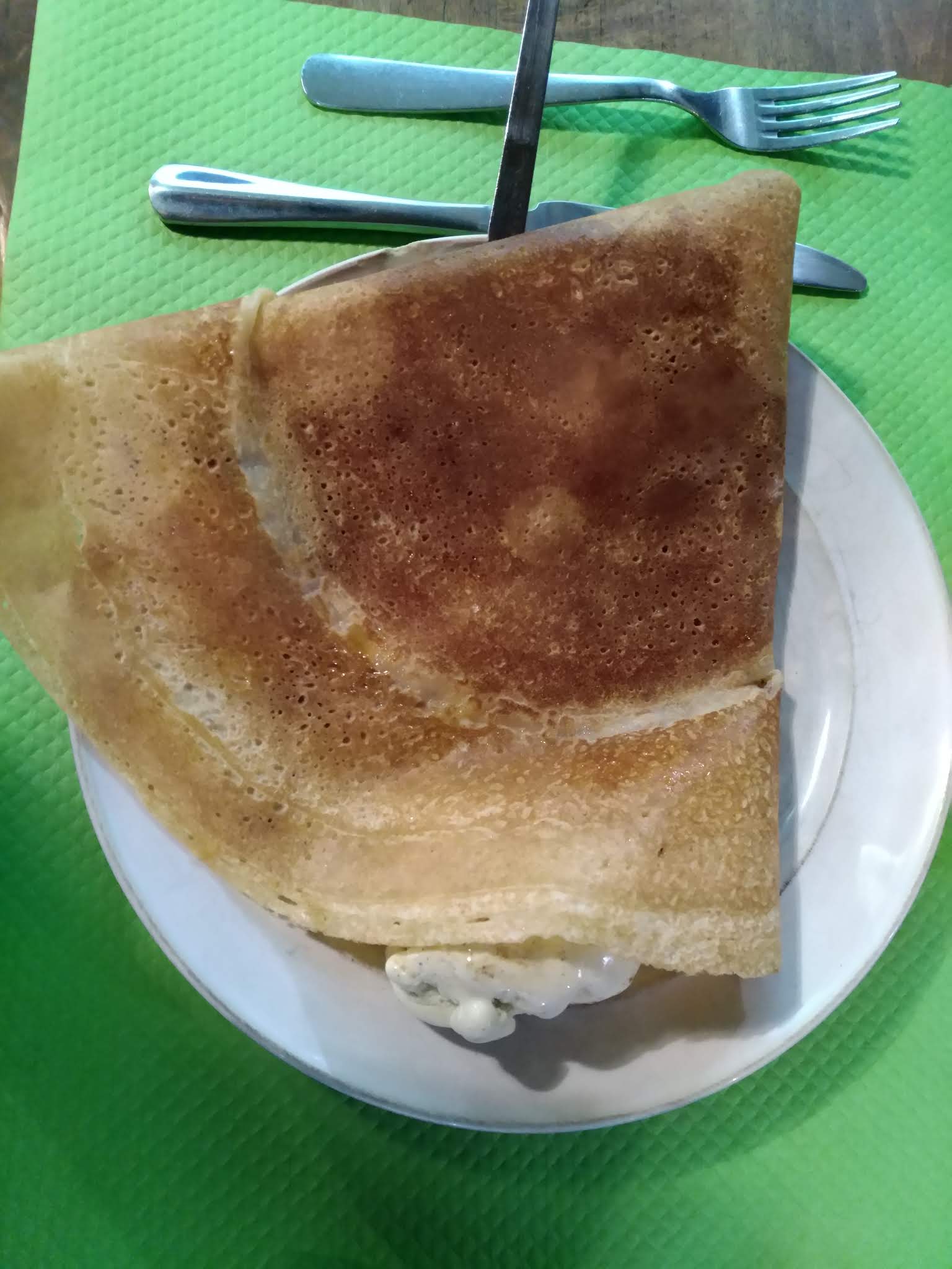 Crêpes quelconques, pâte à crêpe probablement industrielle, présentation peu soignée