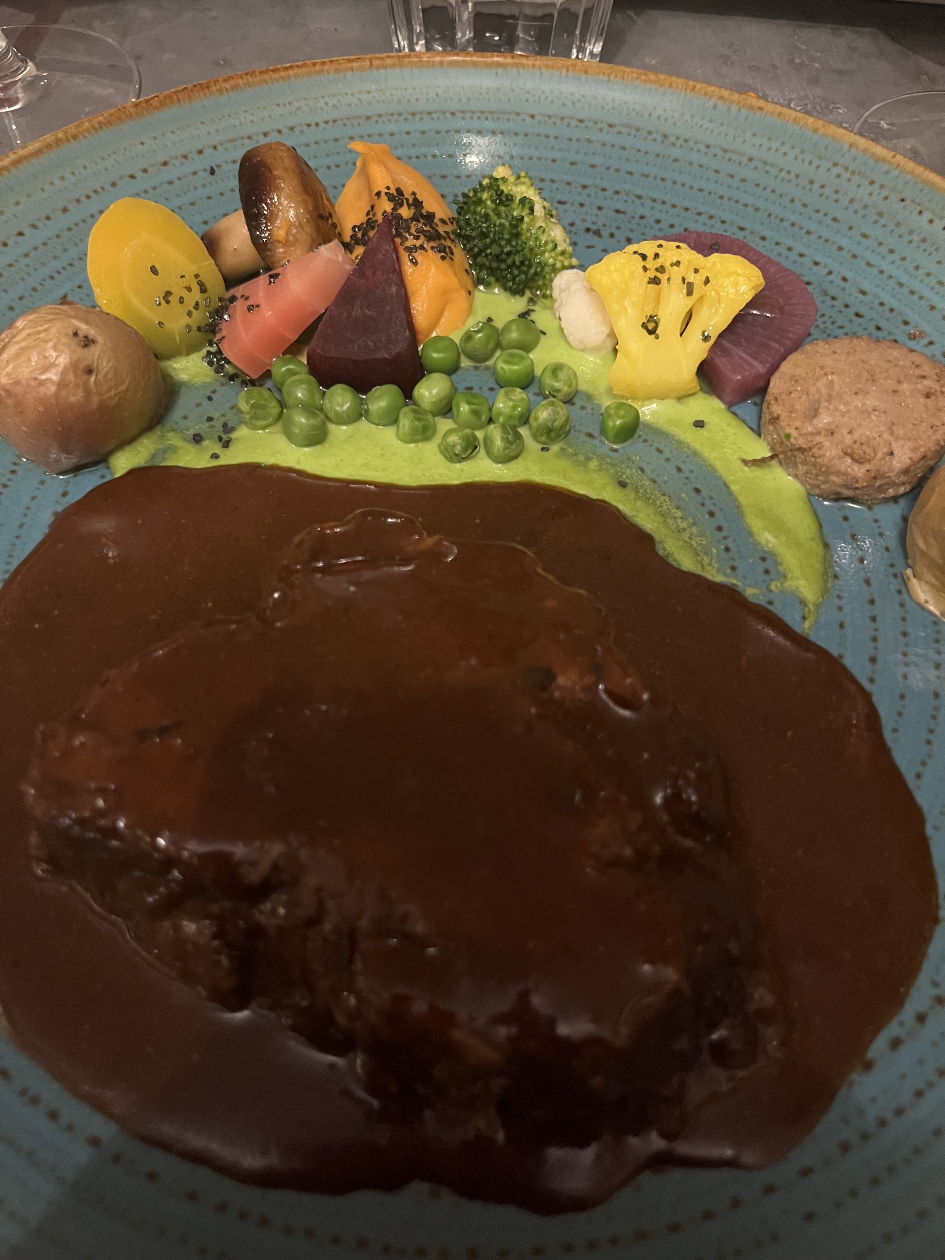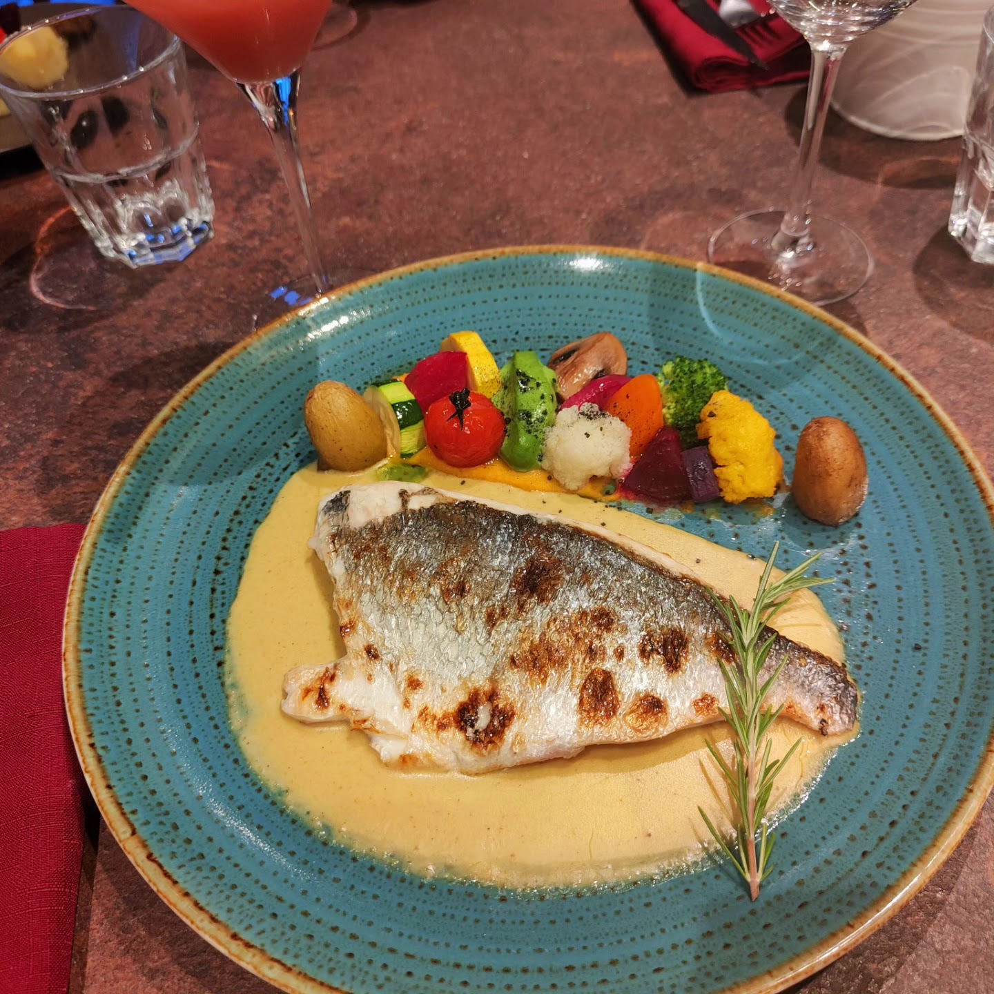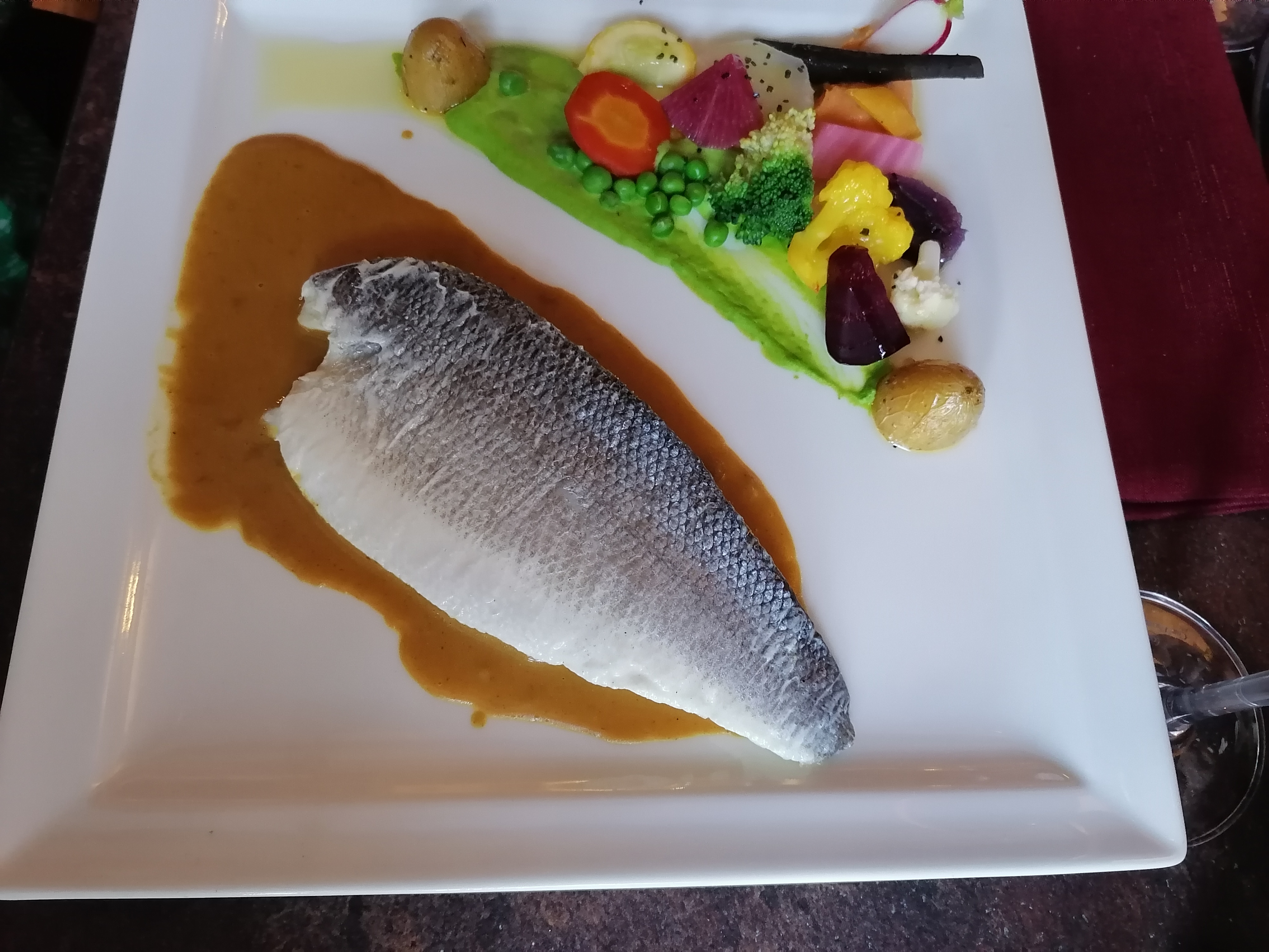 Quelle belle surprise. Les plats étaient excellents et de plus quelle belle présentation avec ces légumes de toutes les couleurs.Pour couronner le tout ,serveur,chef cuisinier, commis et propriétaire du restaurant sont très sympathiques.