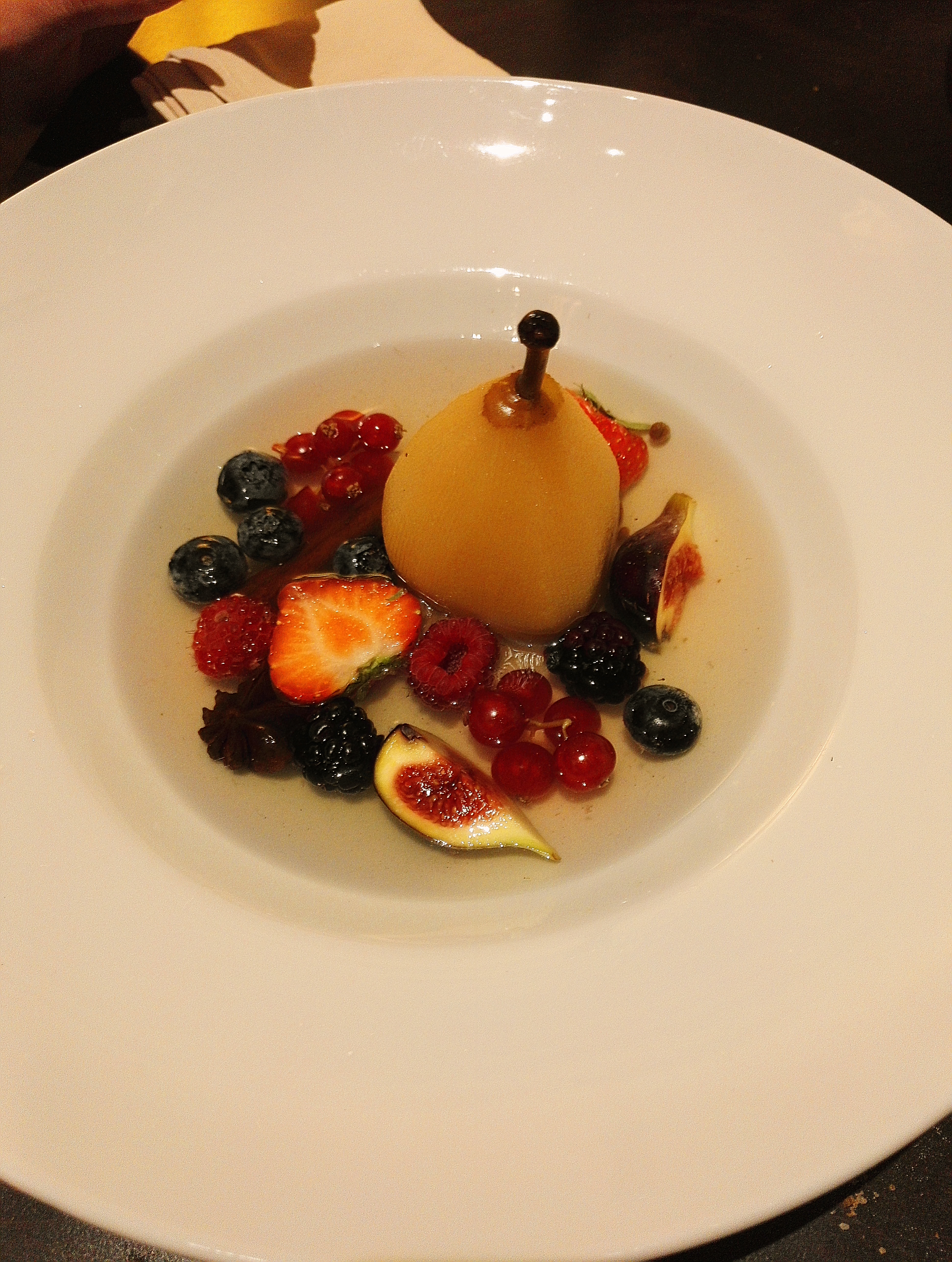 Endroit sympathique mais excentré du centre ville. Accueil en toute simplicité. La salle est agréable, le menu affiché sur le mur. Comptez 35€ pour le menu complet entrée (10€) plat (15 à 20€) et dessert (8€). Vin au verre ou bouteille mais pas de demi. Plats traditionnels, saveurs agréables. En photo pavé de saumon et délice de poire caramel.