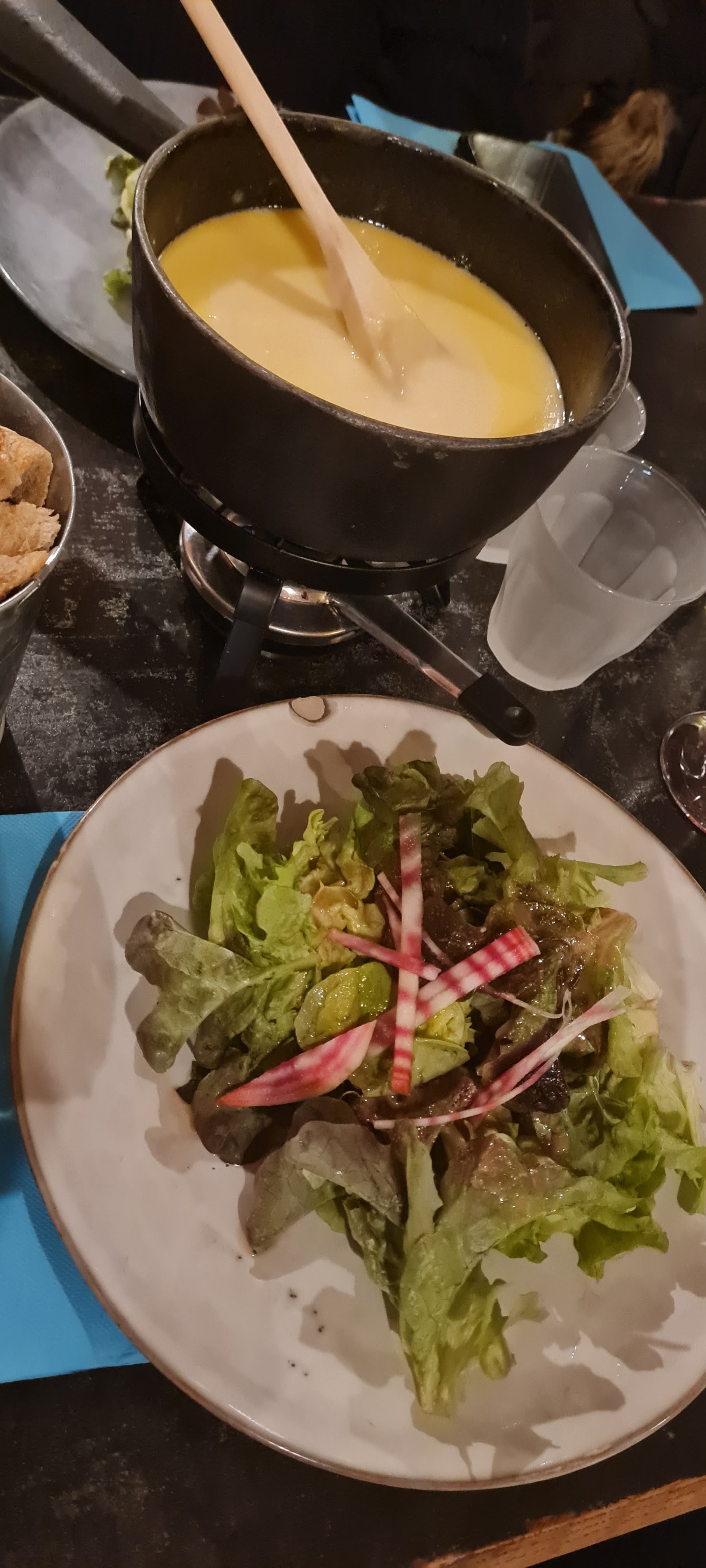 Adepte de la fondue Savoyarde, seul ma grand mère la fait bien ! J’ai retrouvé les saveurs, l’odeur de ce fromage fondue.... Mais sa c’était le plat de Madame... Moi j’avais opté pour une fondue Suisse. Fondue suisse que j’avais découvert lors d’une précédente installation à Monthreux. J’ai eu l’impression d’être en Suisse gustativement ! C’était la même ! Même saveur.... bref un bonheur Qualité, gentillesse et bienveillance (droit à 2 chocobons) on fait de ce moment en famille un vrai bonheur. Merci d’avoir sélectionné les bon produits, merci d’avoir trouvé un bon chef, merci pour ce moment