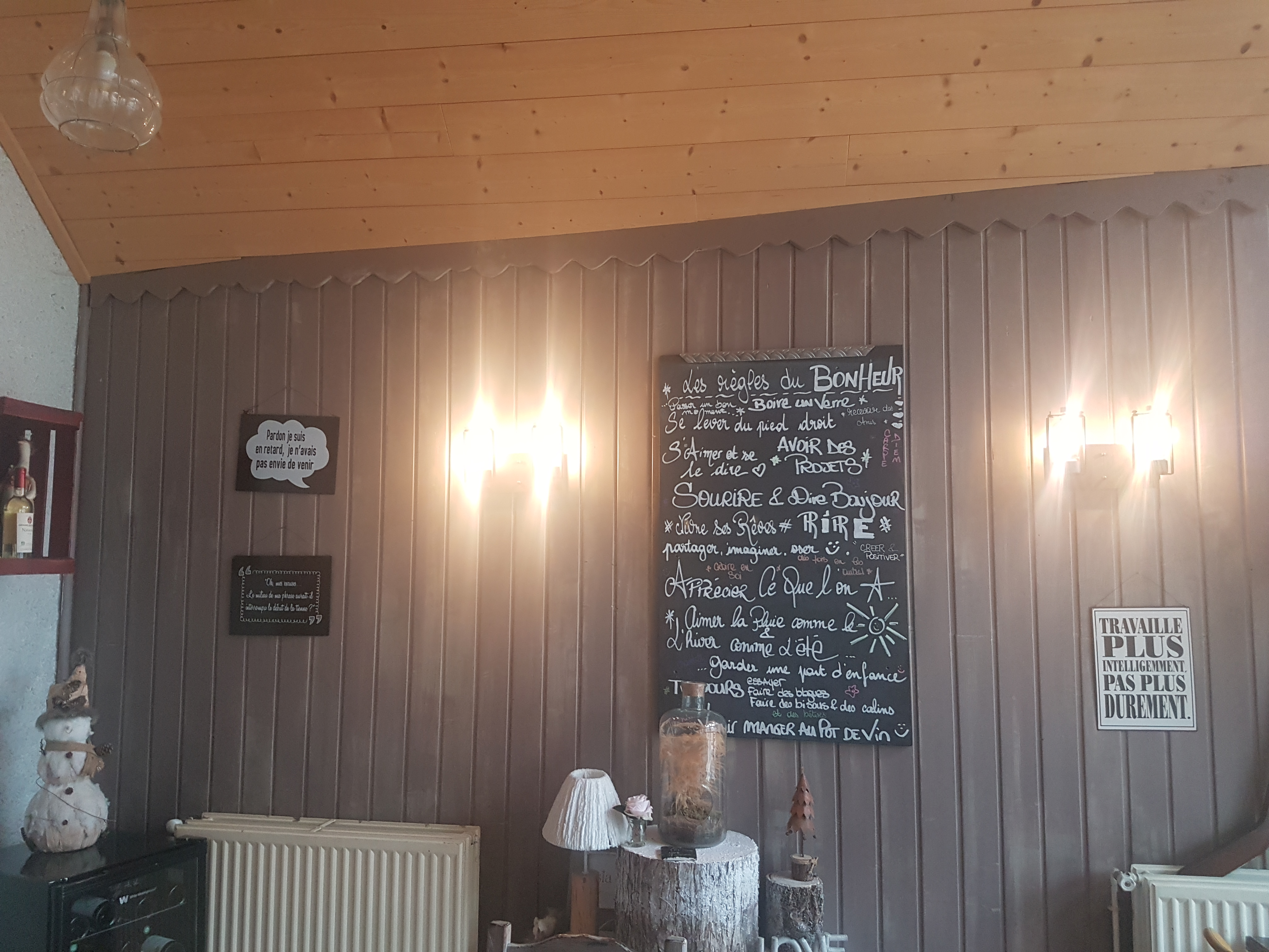 Accueil et cadre chaleureux.Citations à la craie sur ardoises à méditer. Carte variée : plats asiatiques, cuisine de montagne ou traditionnelle, pizzas coûteuses. J'y retournerai.
