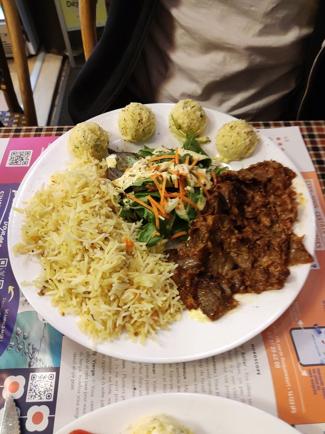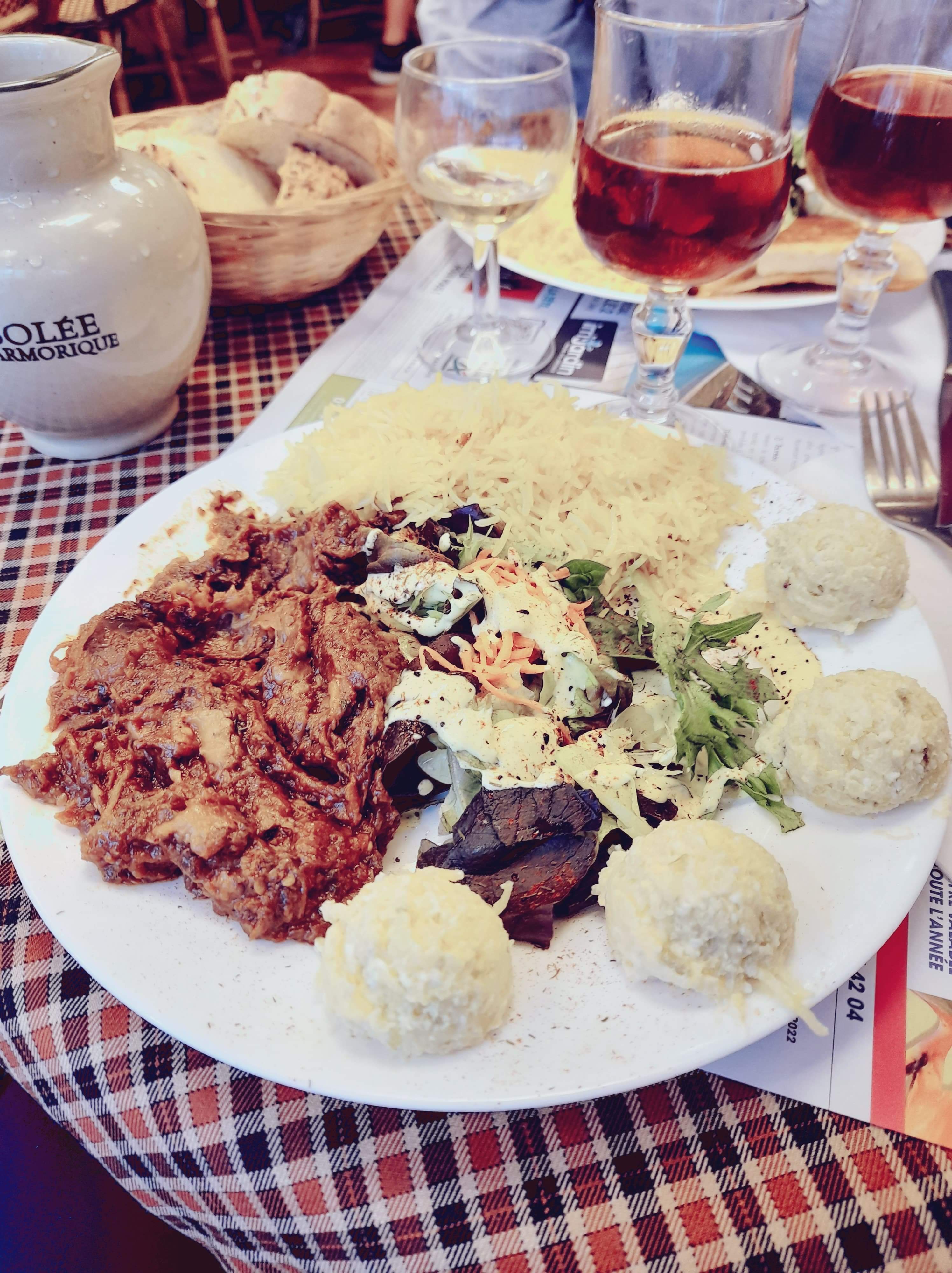 Une envie de voyage culinaire aux notes persanes ? C’est ici à Caen. On a pris une assiette découverte composée de moussaka, riz, salade olivieh, samoussa. Très bon et vous serez très bien accueilli en terrasse. 32€ à 2. 14€ l’ assiette découverte avec une bouteille 1l d’eau gazeuse à 4€.