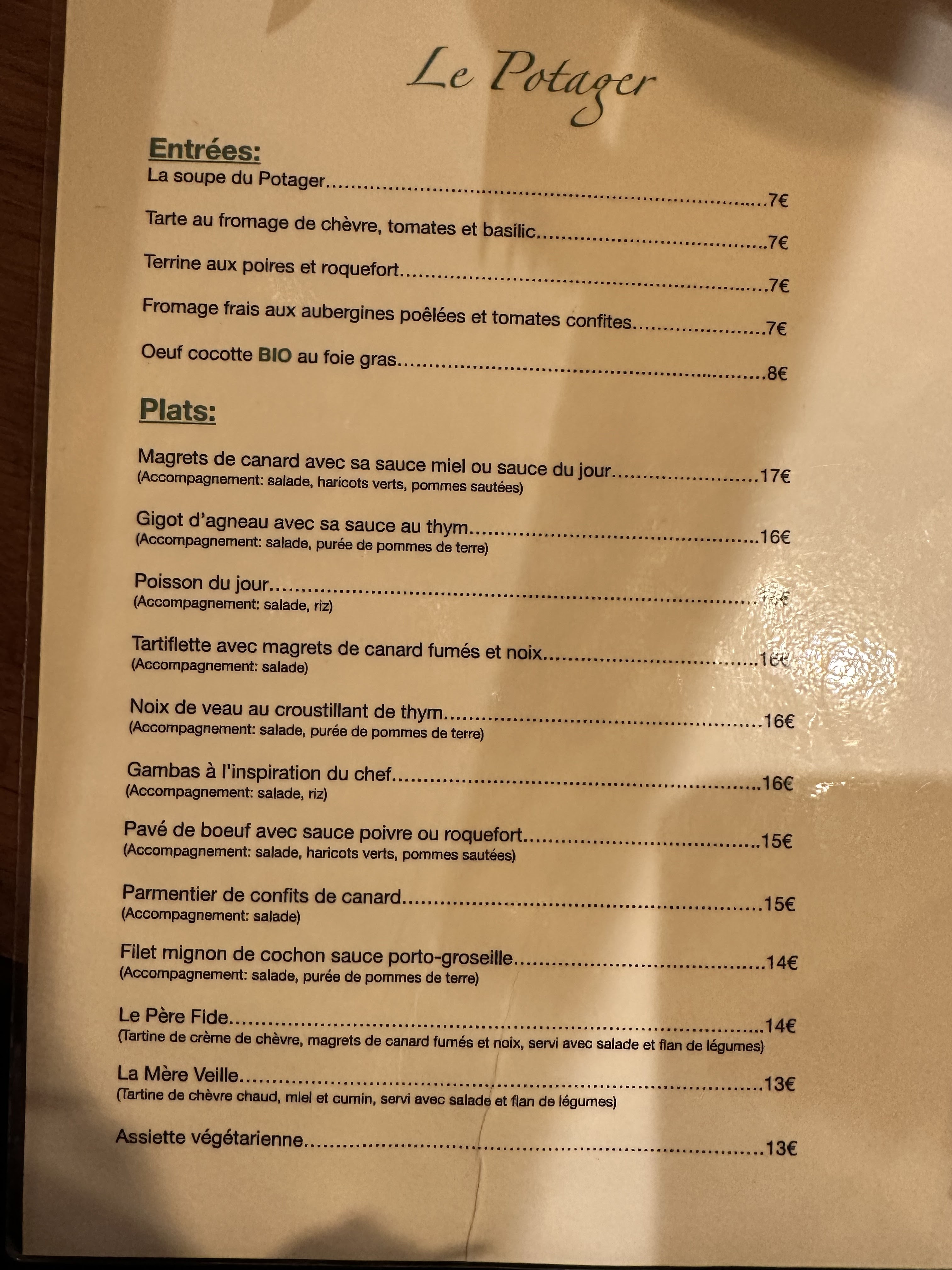 Si vous êtes à la recherche d’un restaurant proposant de la nourriture typique Française avec une petite touche d’originalité, alors foncez ! La qualité est au rendez-vous dans ce petit restaurant plein de charme orchestré par des personnes à l’écoute et pleines de gentillesse. C’est un 5/5 ! Merci Le Potager 🙏🏼