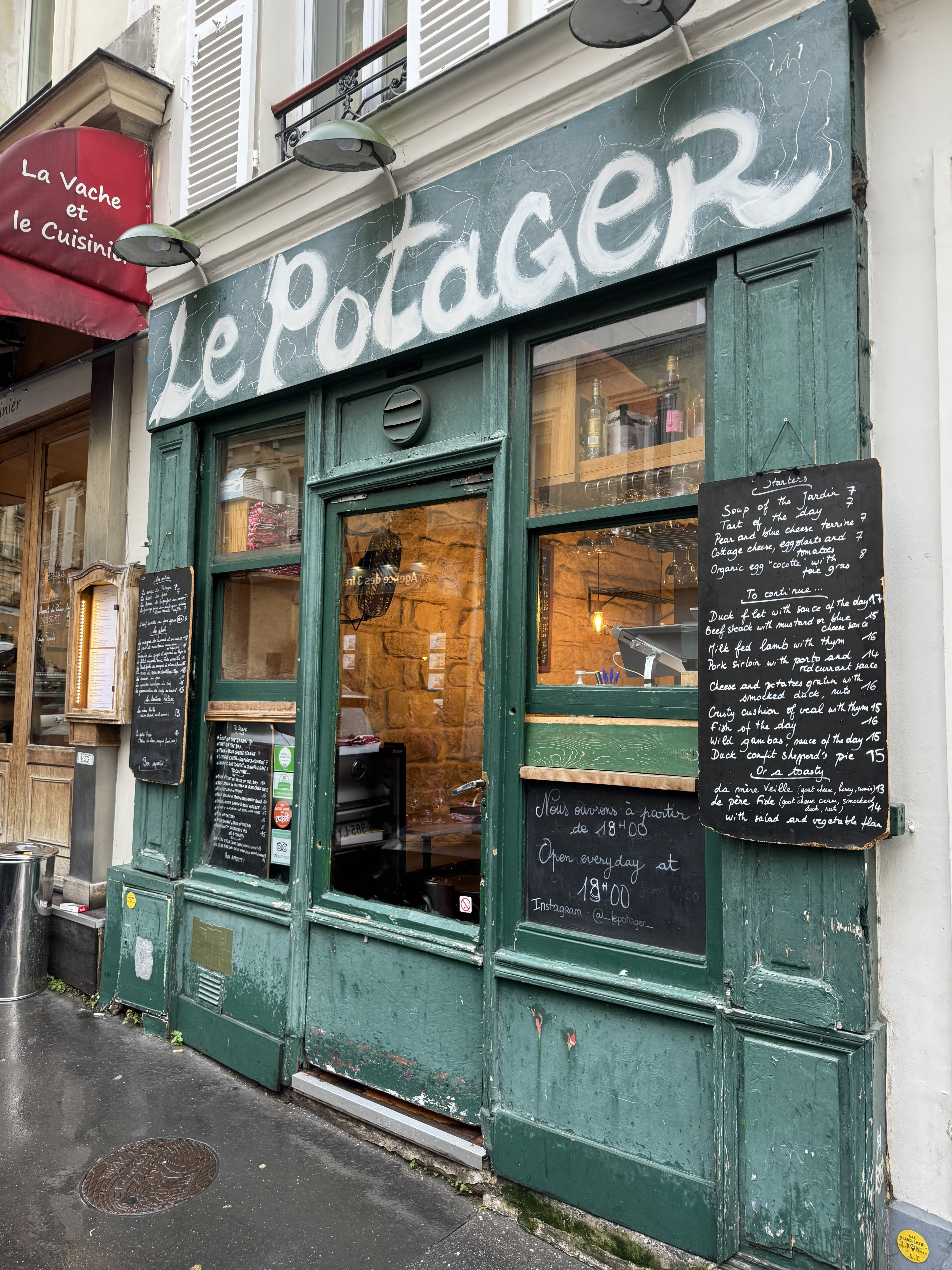 Quand on ne connaît pas le quartier, dur de s'y repérer entre les restos sans intérêt, les attrape-touristes et les ptits restos sympa. Bingo! Le potager, c'est une toute petite salle qui ne paie pas de mine à 1ère vue. On est serré et il y a 10 tables grand max mais ça apporte la touche de convivialité dont on a envie dans un espace réduit comme celui là. Service au top! La serveuse ce soir là était juste parfaite. Efficace, souriante avec beaucoup d'humour, un vrai plaisir. Au niveau de la cuisine, le rapport qualité prix est très bon. Entrées dans les 8€, plats aux alentour des 15€ et dessert dans les 8€. Perso je me suis régalé d'une cocotte de foie gras, d'un excellent coeur de rumsteack (viande de qualité et cuisson parfaite) et d'un sorbet orange avec du chocolat. On y est allé avec unn groupe d'amis, on y retournera, très bonne soirée Merci le potager!