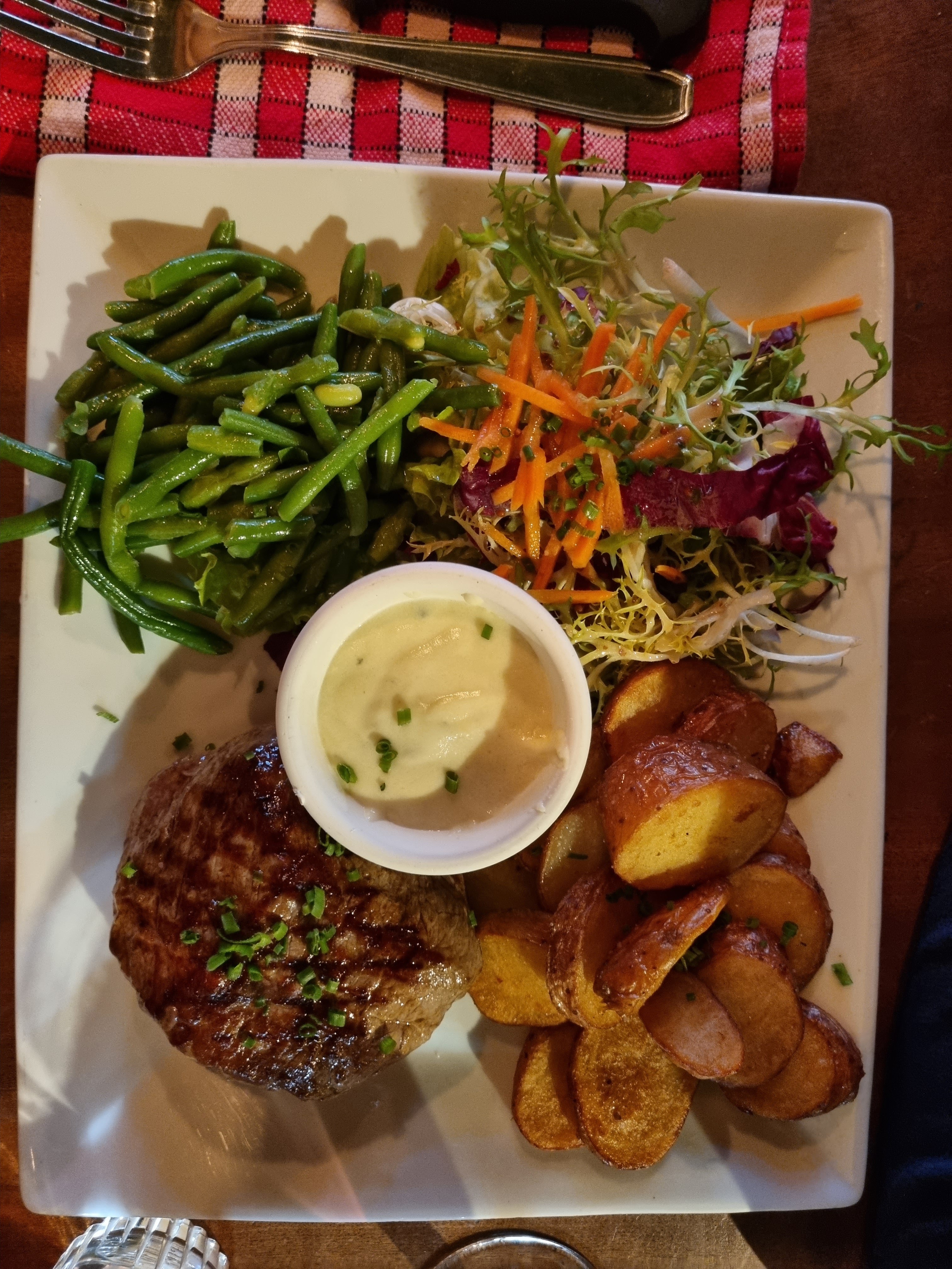 Pavé de bœuf et croustillant de veau exceptionnel. Un accueil et un service très agréable. Un prix défiant toute concurrence pour un lieu aussi touristique. Bref ne pas hésiter.