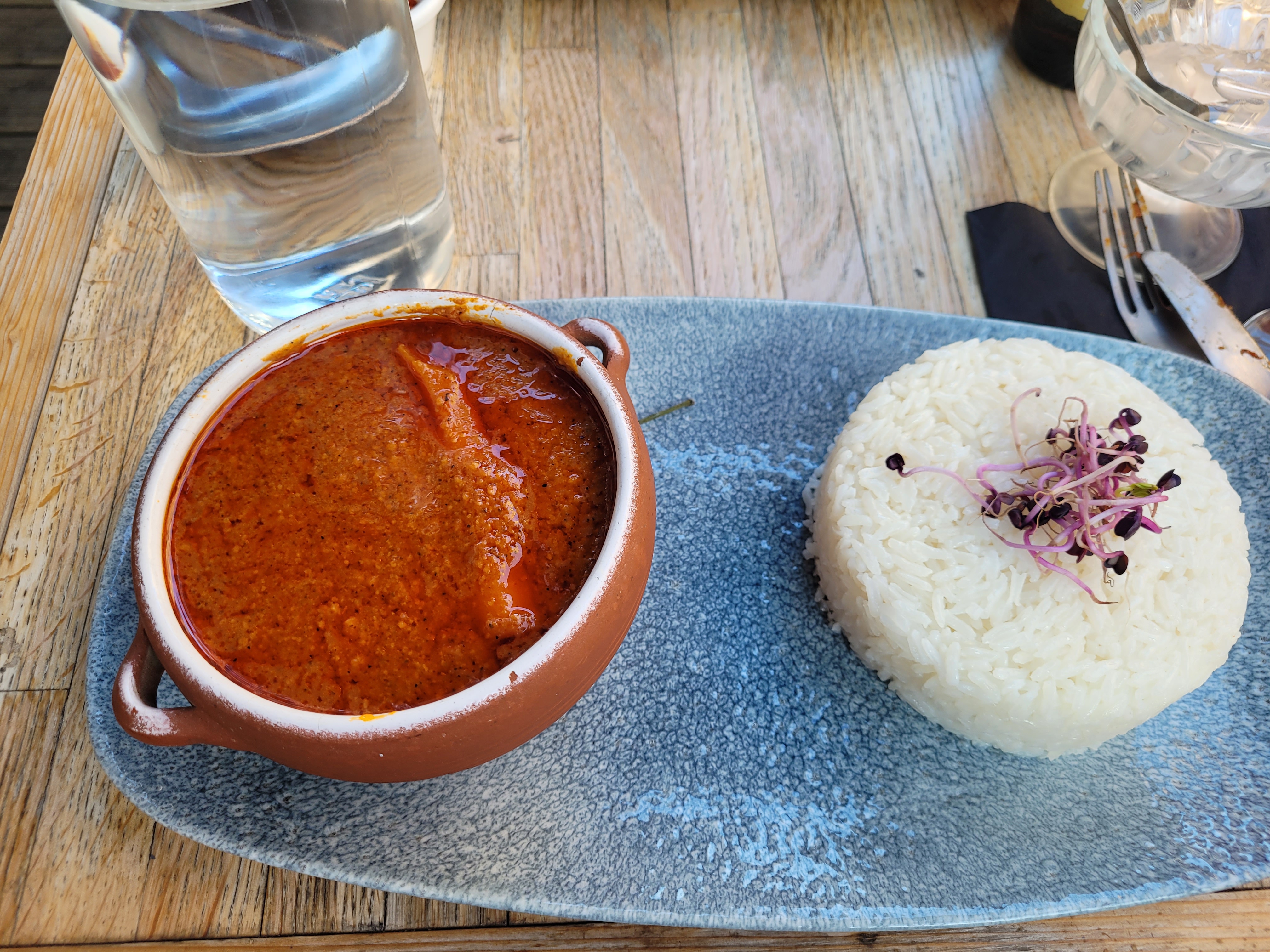 On a pu prendre un déjeuner à emporter sans réserveration. On a même été servis rapidement et avec le sourire. Et que dire quand on a senti l'odeur délicieuse qui se dégageait du sac...mmmhhhh! Très bonne surprise, plat succulent et copieux. On reviendra quand le confinement sera terminé pour manger sur place. Merci pour cette expérience gustative, avec ce plat aux épices du soleil.