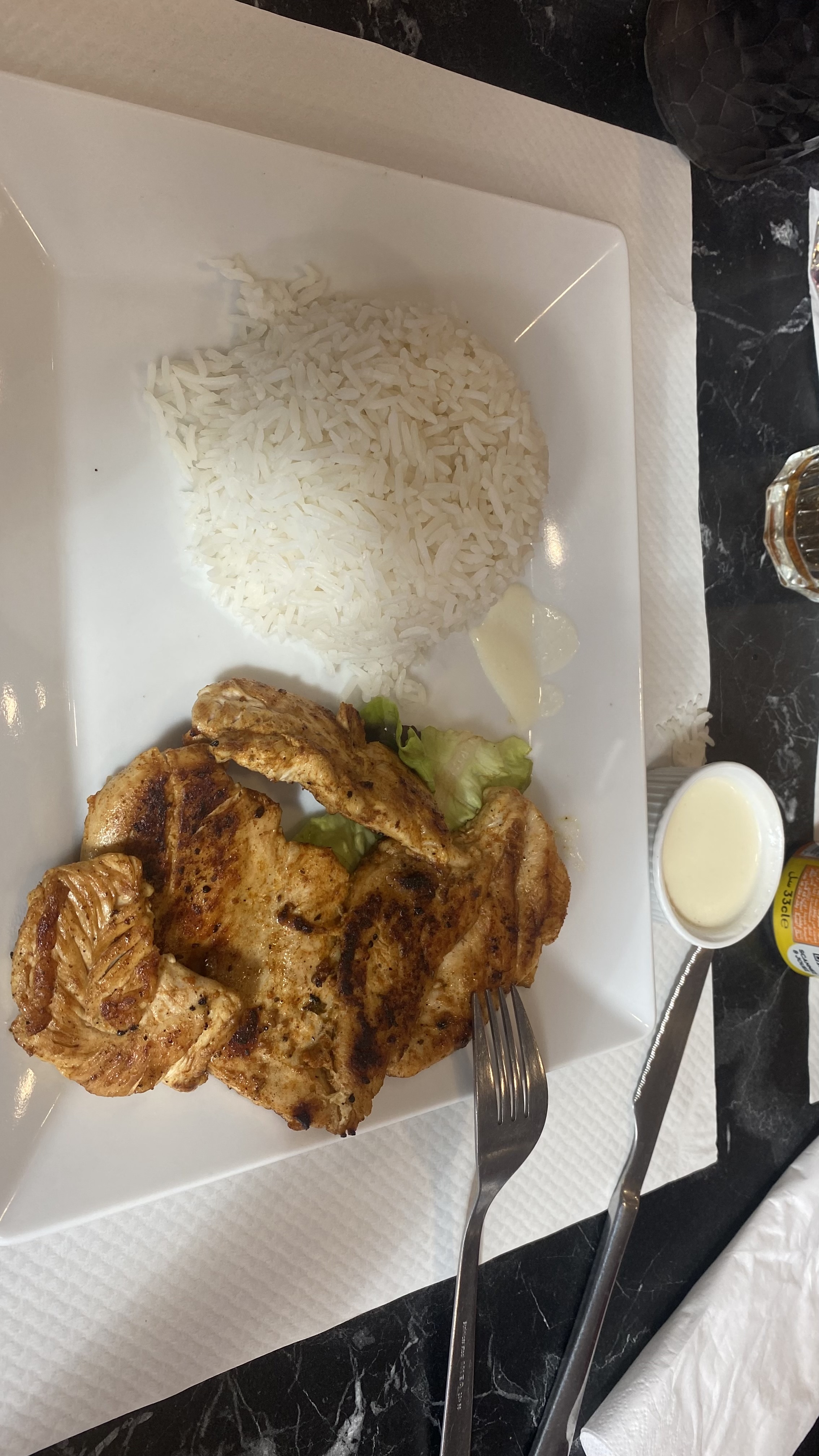 Franchement pas mal Service rapide et accueillant le poulet était bon est bien cuit et la sauce verte huuuum .... super 😊