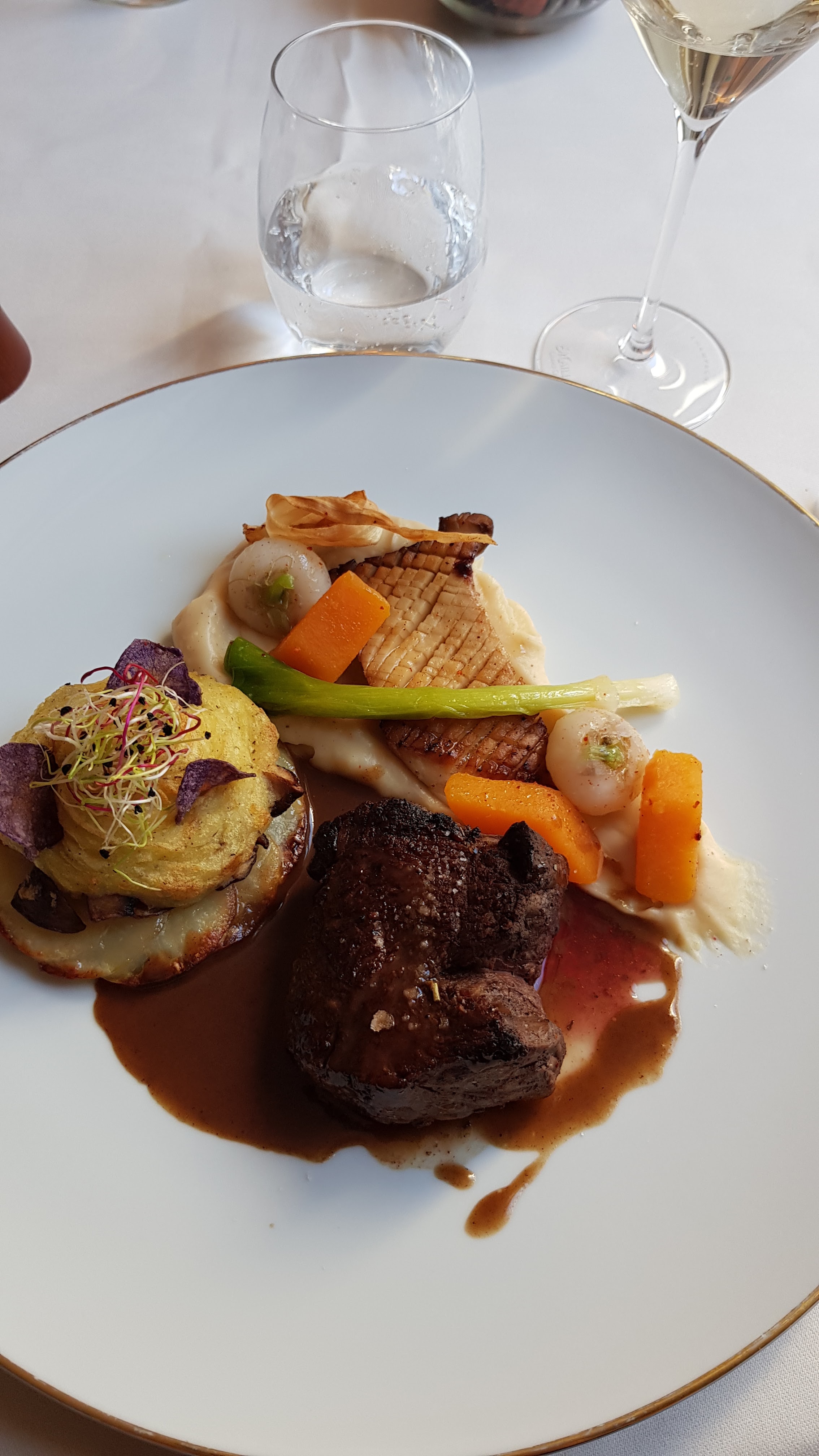 Très beau restaurant, cadre agréable service irréprochable. Petit bémol par rapport aux plats, les légumes trop d'épices du genre curry... et certaines entrées épices trop prononcées également. Il me semble que c'est un restaurant gastronomique français le curry n'a donc pas vraiment sa place à fortes doses, nous ne sommes pas chez les indiens et autres pays aux épices... Sinon c'est bon quand même, bonne musique douce.