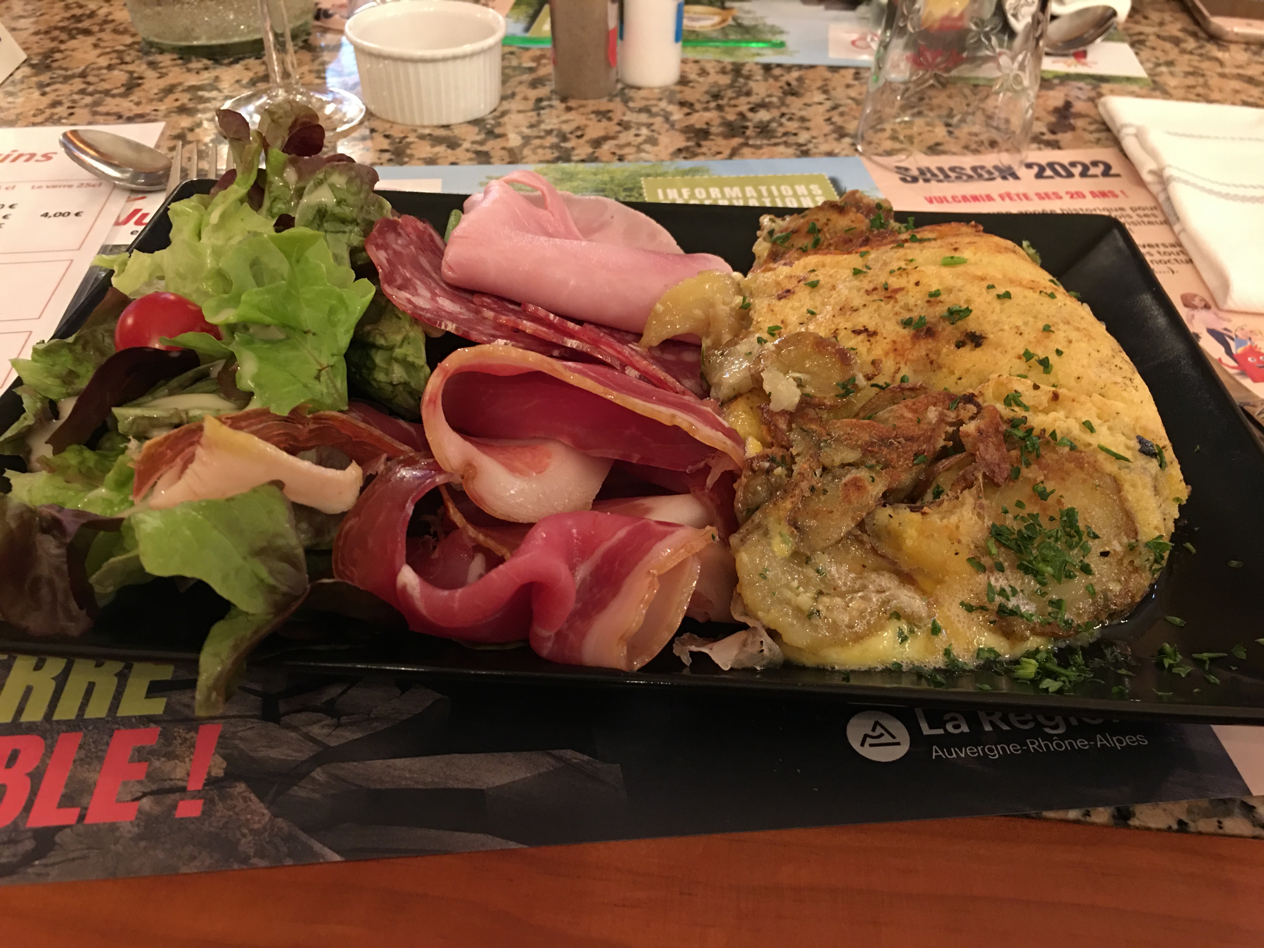 Gras que du gras. Truffade de pommes de terre noires oignons noirs dégoulinantde gras.. Saucisson suant le gras et sentant mauvais. Jambon sec, pour le coup bien sec. Pain grosse croûte dur qui laisse penser à du congelé. Étonnement de la patronne à la demande de cornichons, qui bien sûr ne sont jamais arrivés. A fuir. Tout est reparti dans la 1/2 heure.