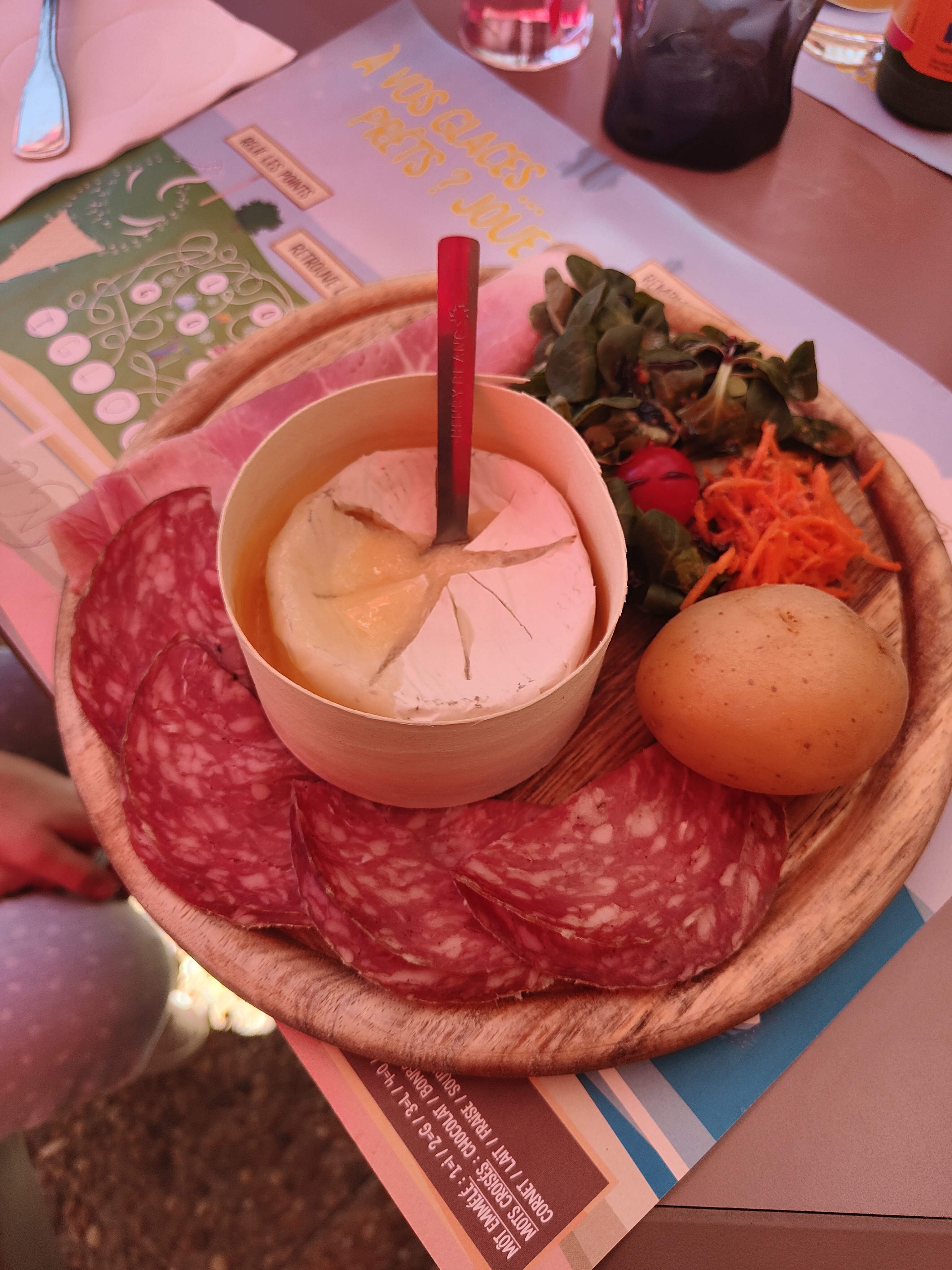 Ce plat, composé des ingrédients les plus basiques de n'importe quel supermarché, coûte aux touristes 28 euros ! Il comprend deux morceaux de jambon, deux morceaux de saucisson, du fromage fondu, des herbes, des petites pommes de terre et le tour est joué ! (voir photo) Voleurs et escrocs. Ils facturent beaucoup moins cher aux locaux.