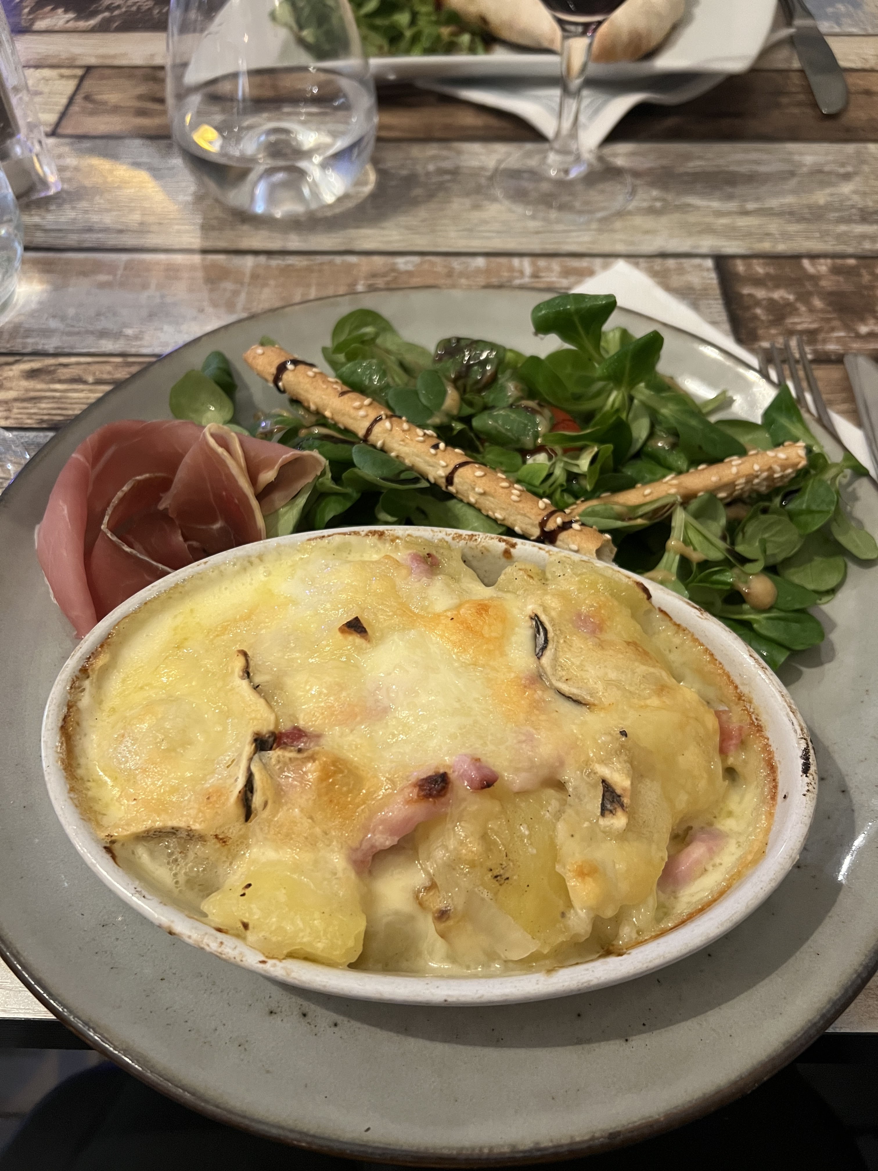 Franchement déçu. 4,7 sur google. Nous y sommes aller confiant. Quelle déception. Plat préparés longtemps à l'avance, juste réchauffé. Les ravioles gratinés de mon mari hyper sèche et peu de goût. Mes gnocchis gratinés, pas vraiment de goût. 1 tranche de jambon et quelques feuille de salade. Un plat à 17 euros tout de même.