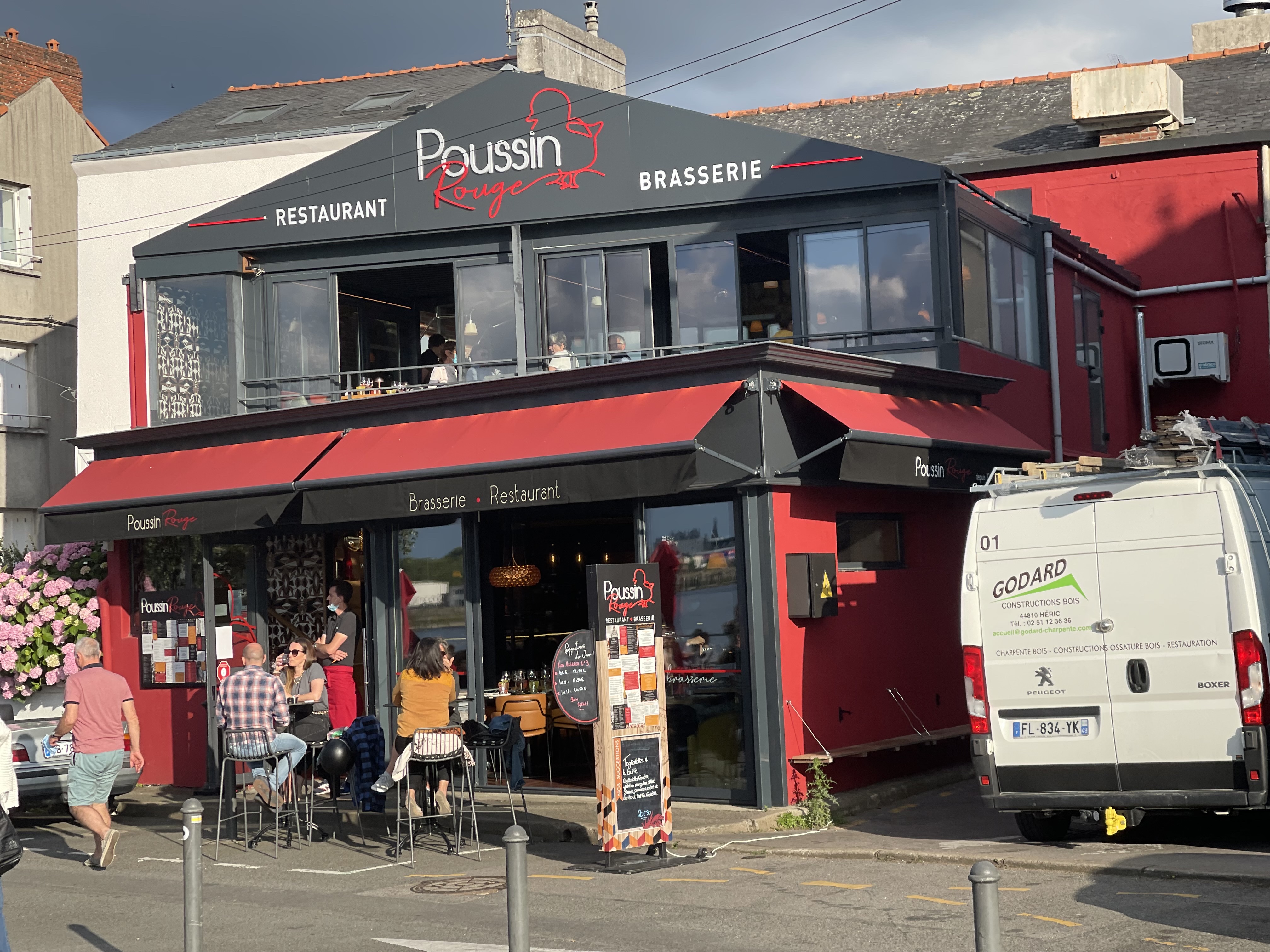 La carte du poussin rouge est variée et ce que nous avons eu dans nos assiettes pouvait être original mais le rapport qualité prix m'a déçue, que ce soit pour le plat ou le dessert (mousse au chocolat pas assez goûtue et gâteau nantais décevant) . Les conseils n'ont pas non plus été remarquables. Le cadre est sympathique et la visite de Trentemoult avant le dîner valait le détour.