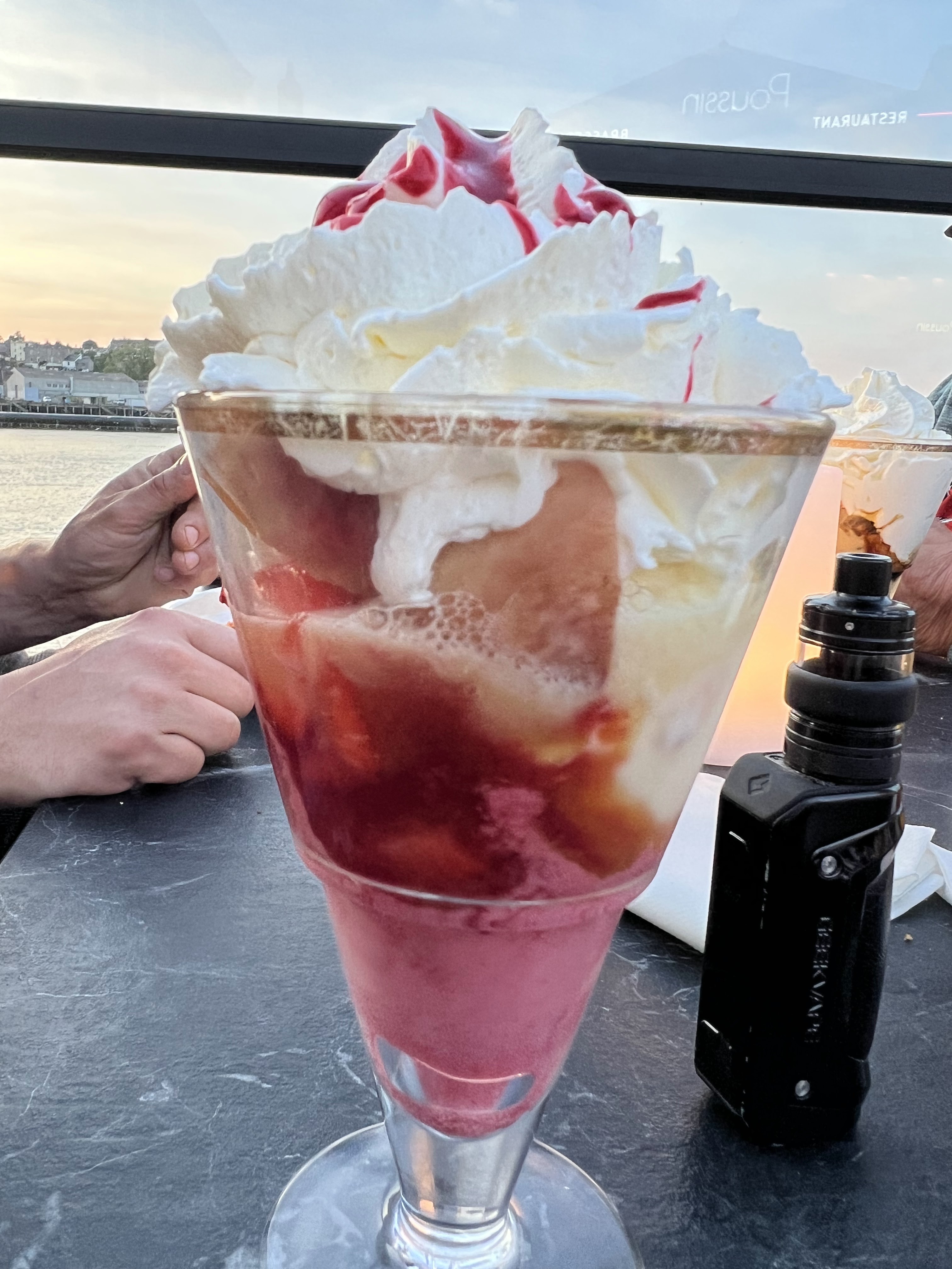 Parfait. De l'accueil en arrivant, aux sourires dans les yeux en partant. Les plats étaient délicieux, les desserts gourmands (photo - coupe la bretonne-du caramel au beurre salé à déguster !) . L'équipe est adorable, à l'écoute et heureuse d'être là (donc nous aussi !!). Nous recommandons avec plaisir, et nous reviendrons avec envie ! Bel été à vous