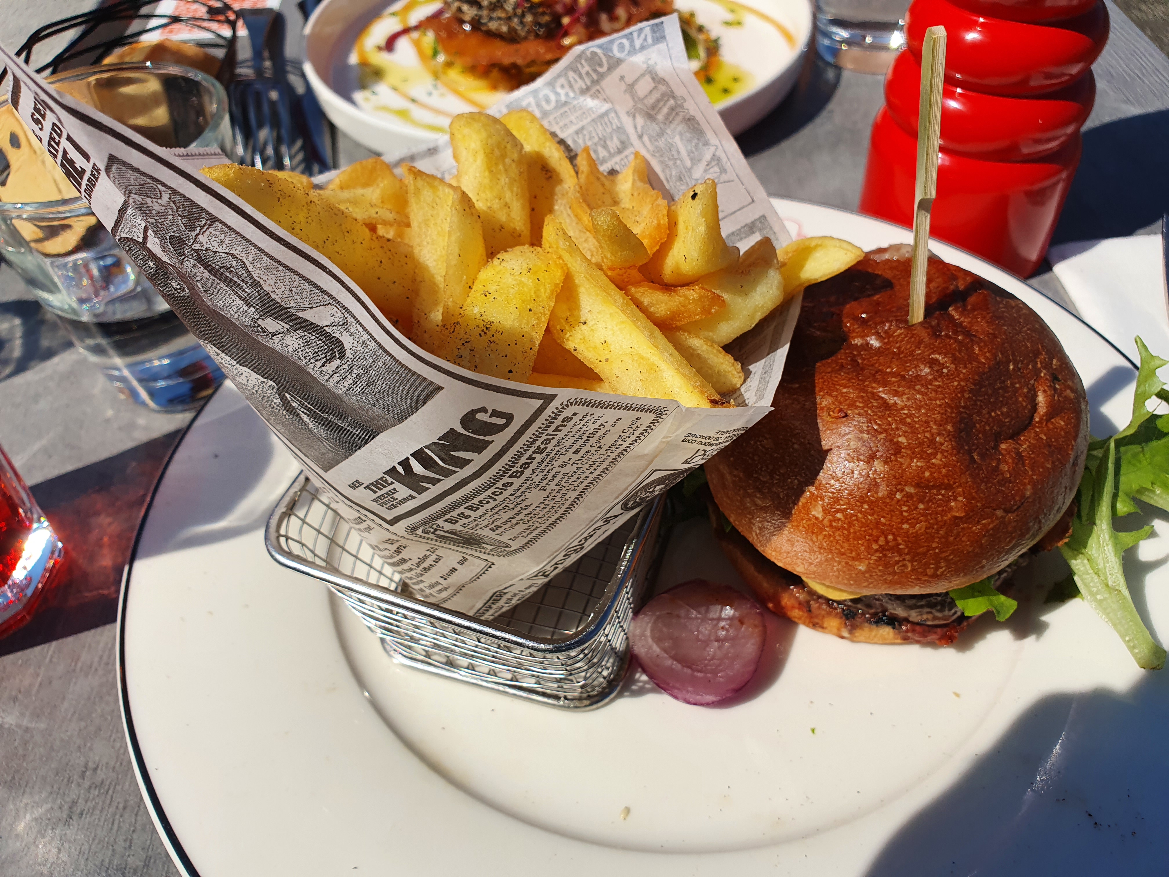 Bon petit restaurant, très bien placé avec une belle vue. Hamburger très bon mais un peu trop petit à mon goût 😁 Par contre les profiteroles, c'est l'inverse 😋 Personnel professionnel et agréable. Je recommande ce restaurant.
