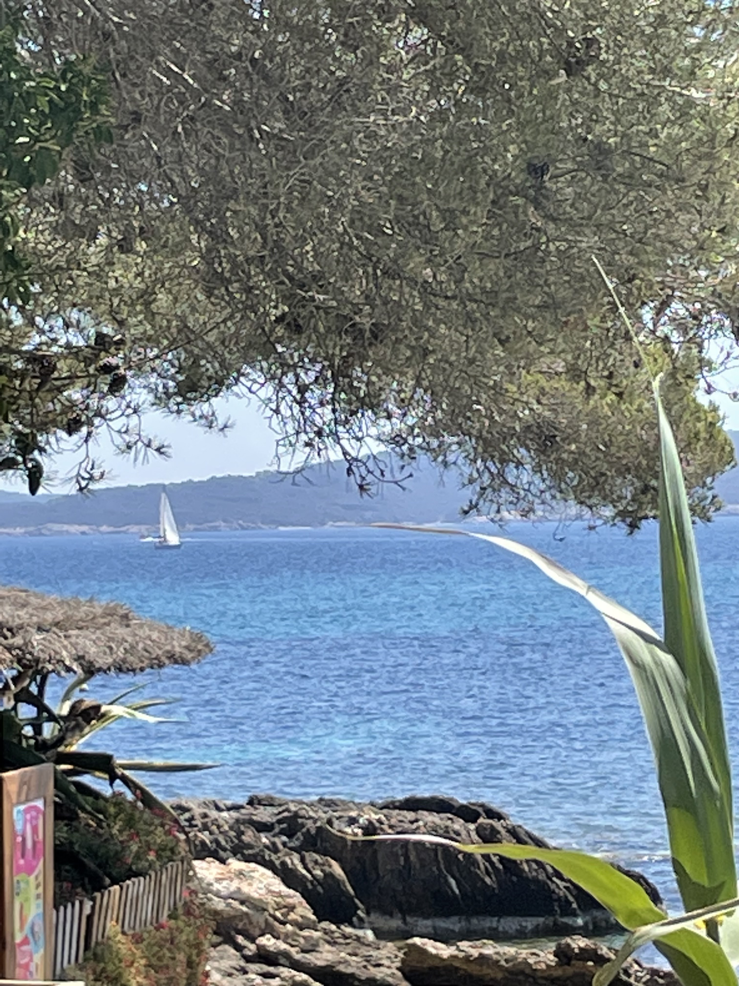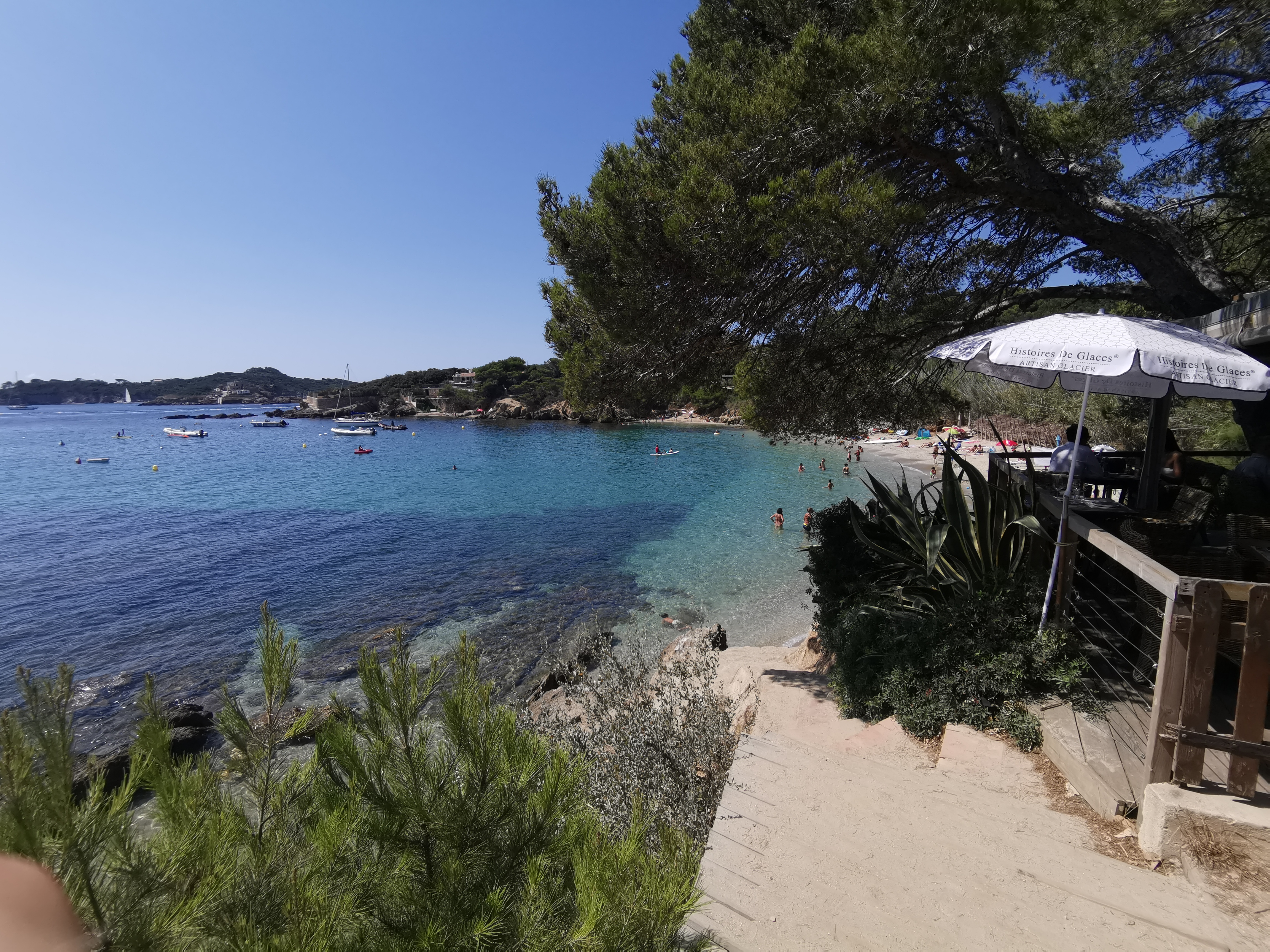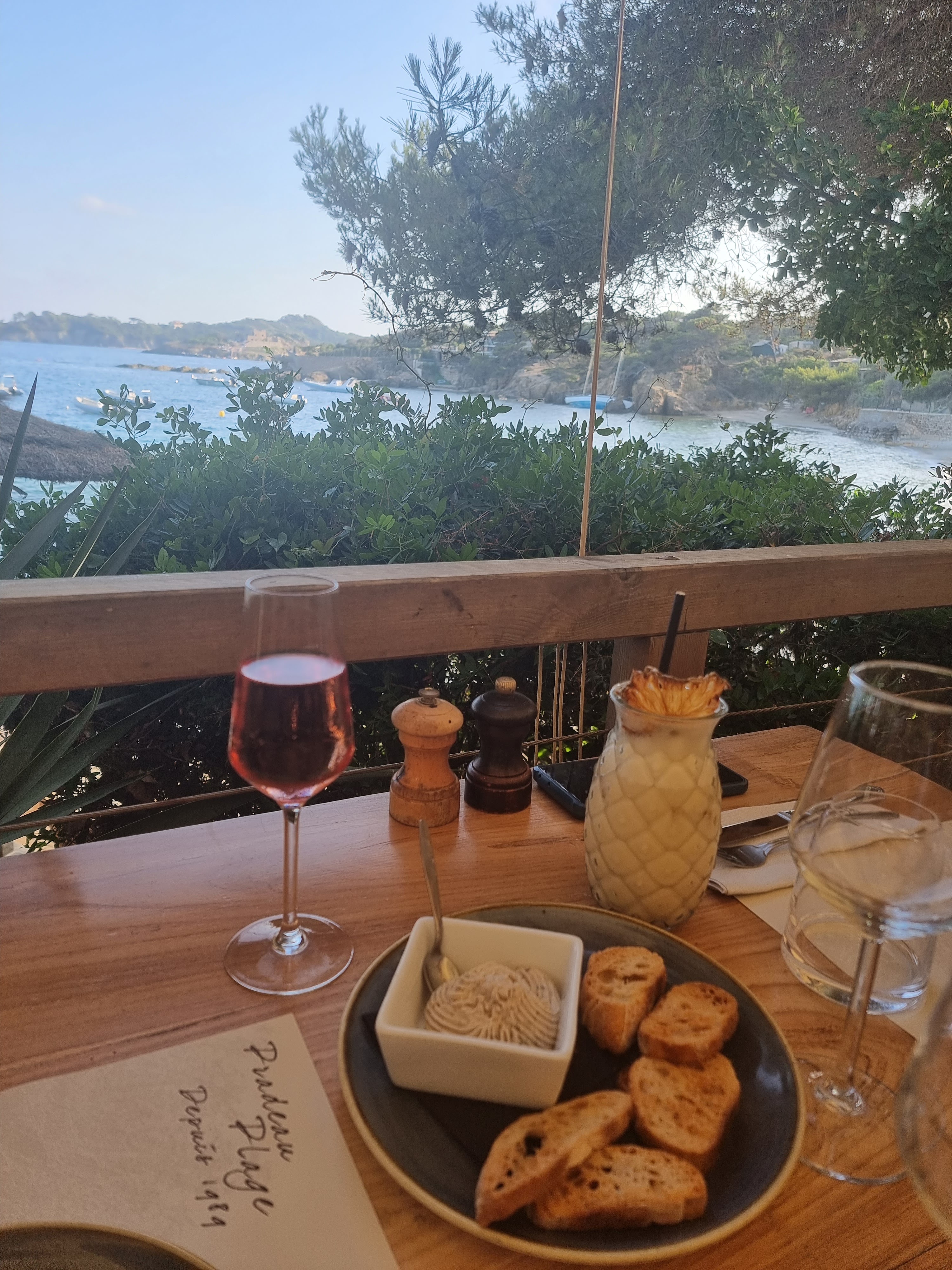 Un endroit magique très préservé, vue sur une crique et Porquerolles. On y mange très bien : poissons frais, pâtisseries délicieuses et cocktails très sympas. Tout y est pour passer un excellent moment dans un cadre magnifique ! Le service est aux petits soins. Allez-y !