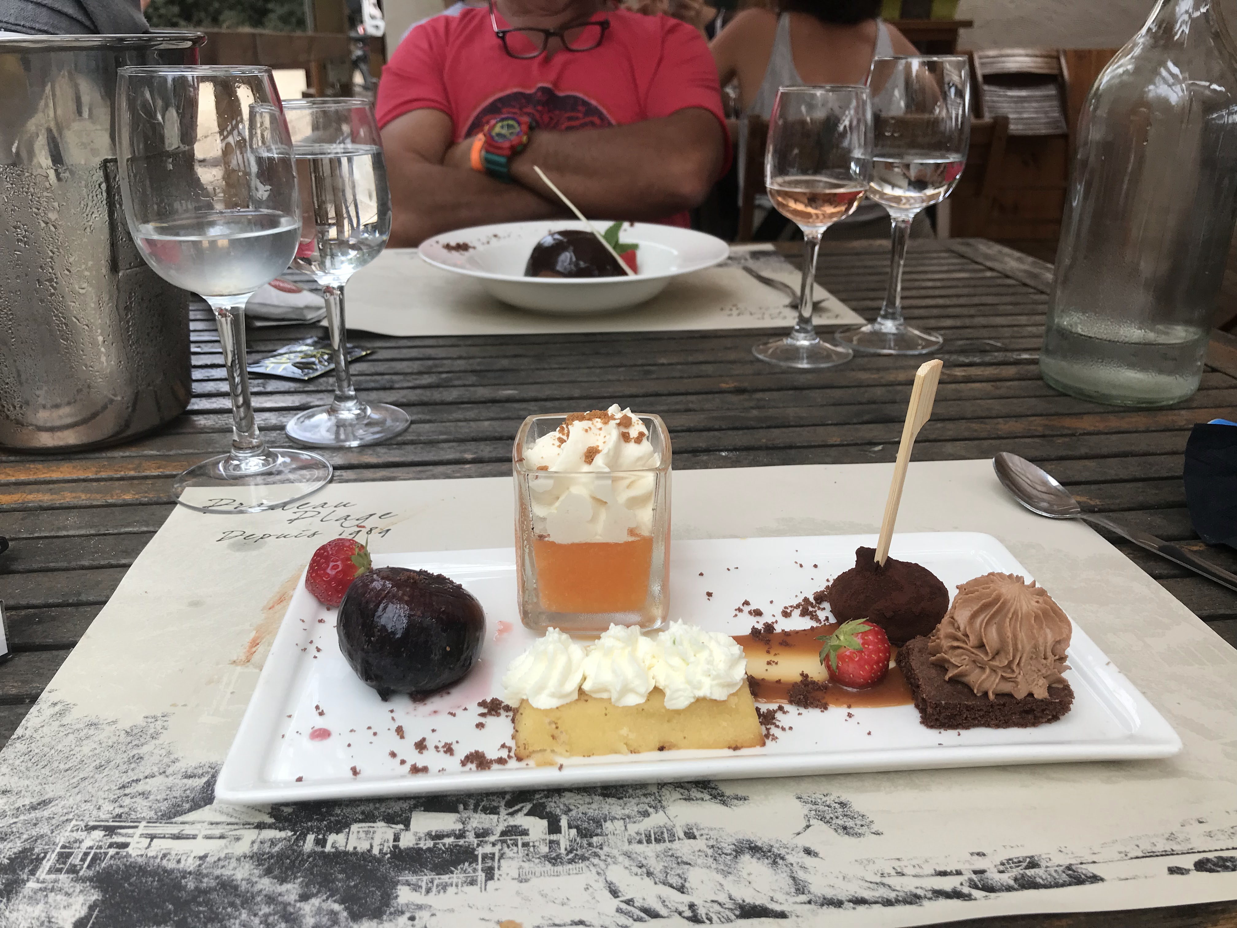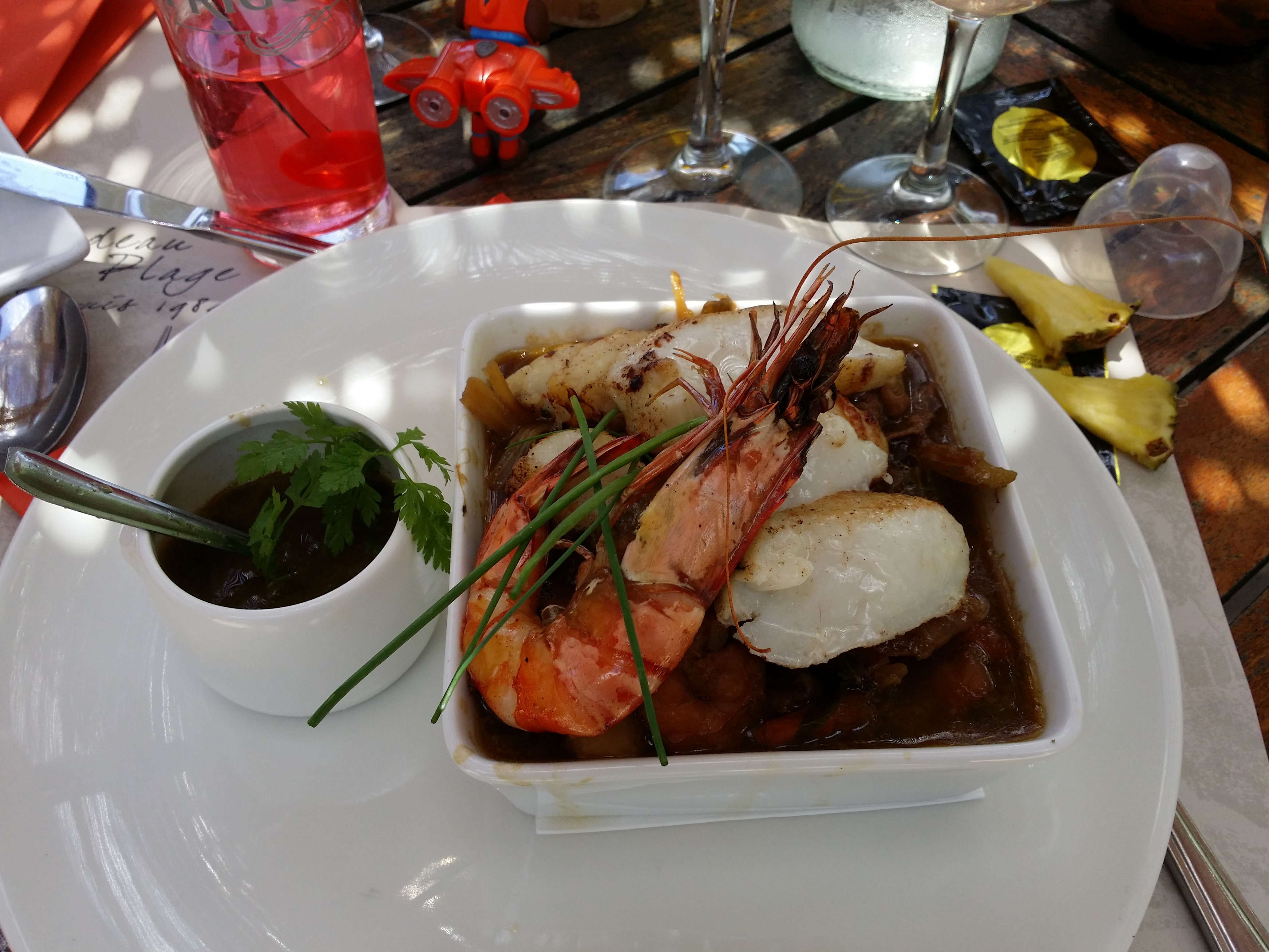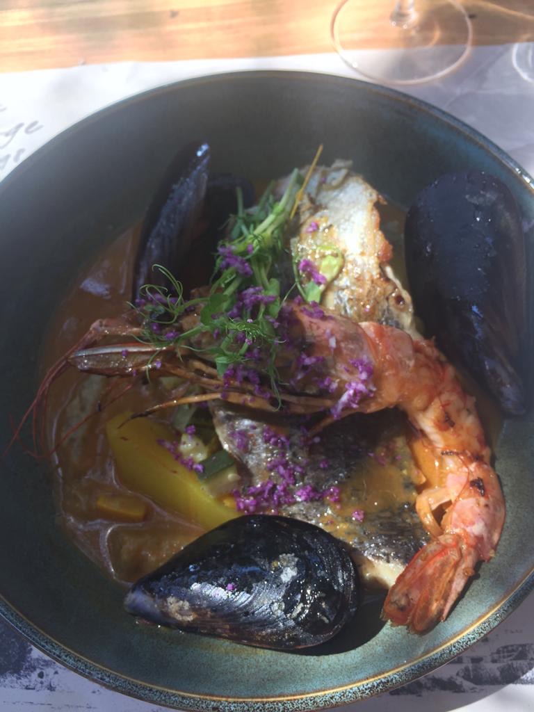 Une tres belle découverte … avec un cadre idyllique! On en a pris pleins les yeux, et au niveau plats, c’était majestueux. De l’entrée (assiette du chef partagée à deux) avec gambas en plat et un remarquable dessert (rochet du Pradeau), sans oublier un cocktail au melon. Un vrai délice. Si vous aimez les fruits de mer, une destination à couper le souffle.