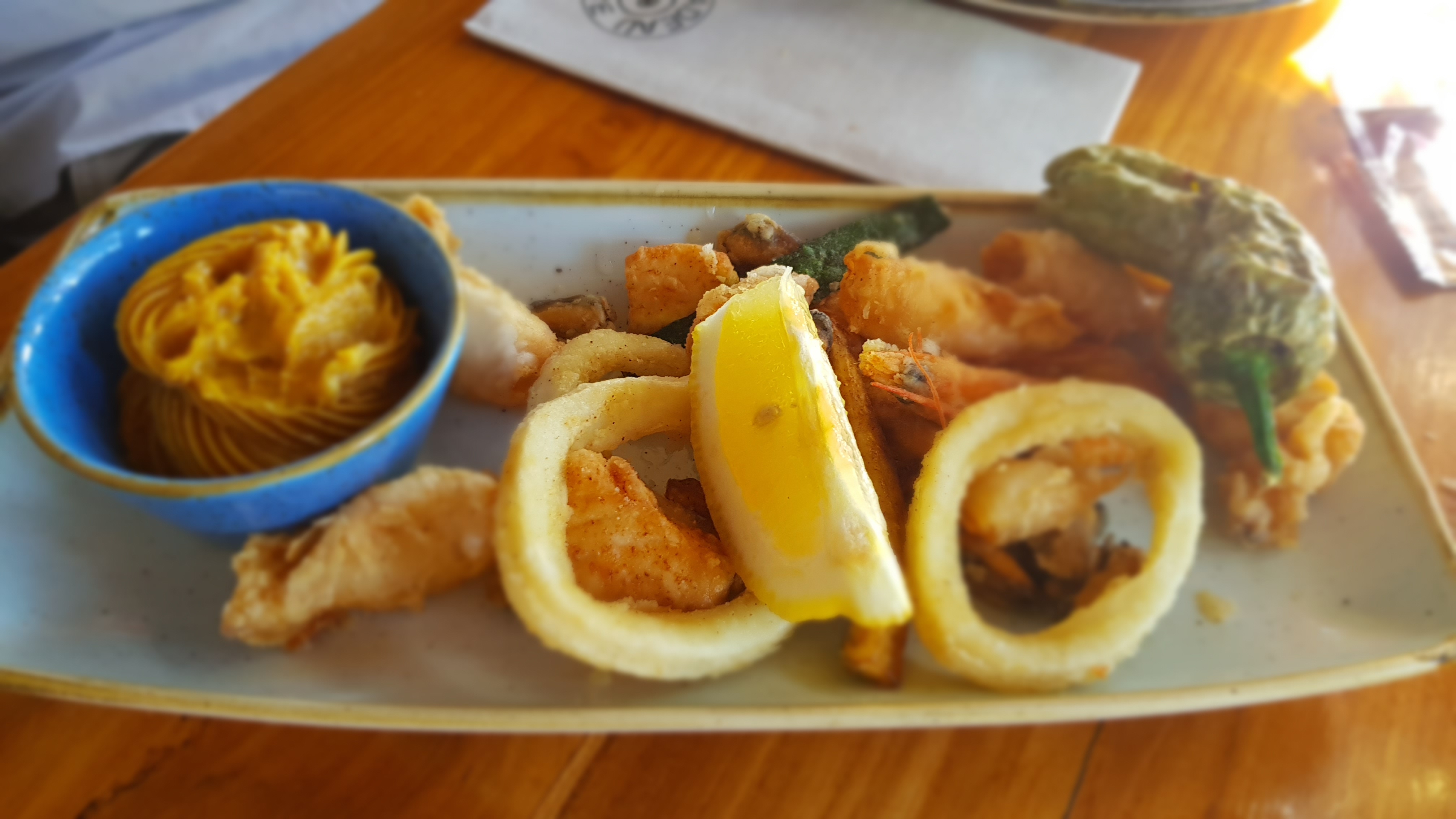 Lieu exceptionnel . Vue sur la mer et les îles , restaurant cosy et charmant . La cuisine est excellente . Amateurs de poissons et fruits de mer, foncez ! Nous avons mangé le risotto saint Jacques et gambas , et un fritto misto. Nous nous sommes régalés ! Les cocktails sont aussi très bons , de nombreuses recettes originales ! Le service était à la hauteur de la cuisine et du lieu. Peu d’attente . Nous avons passé une belle soirée dans ce restaurant qui nous avait été recommandé pour nos vacances par plusieurs locaux .