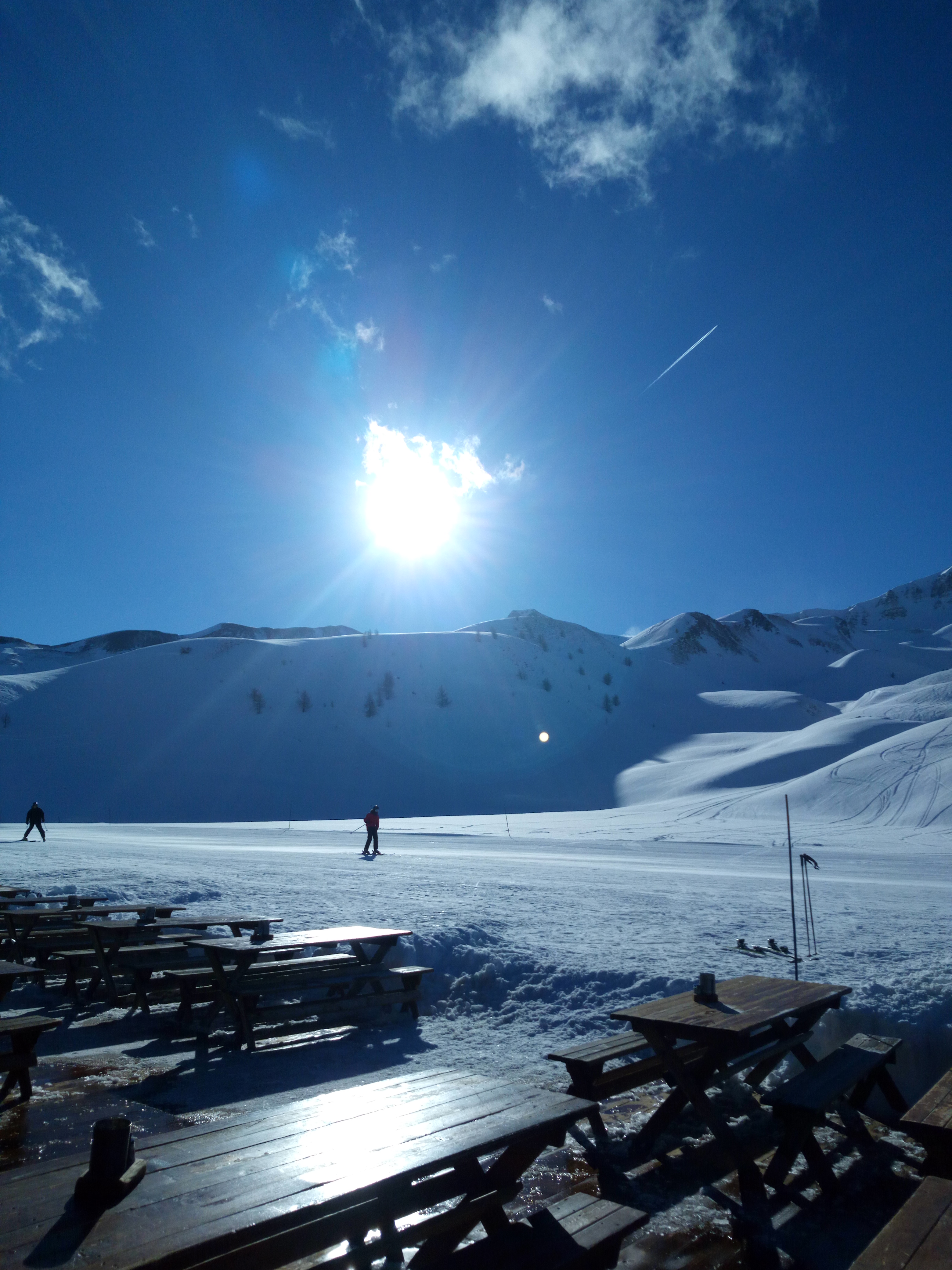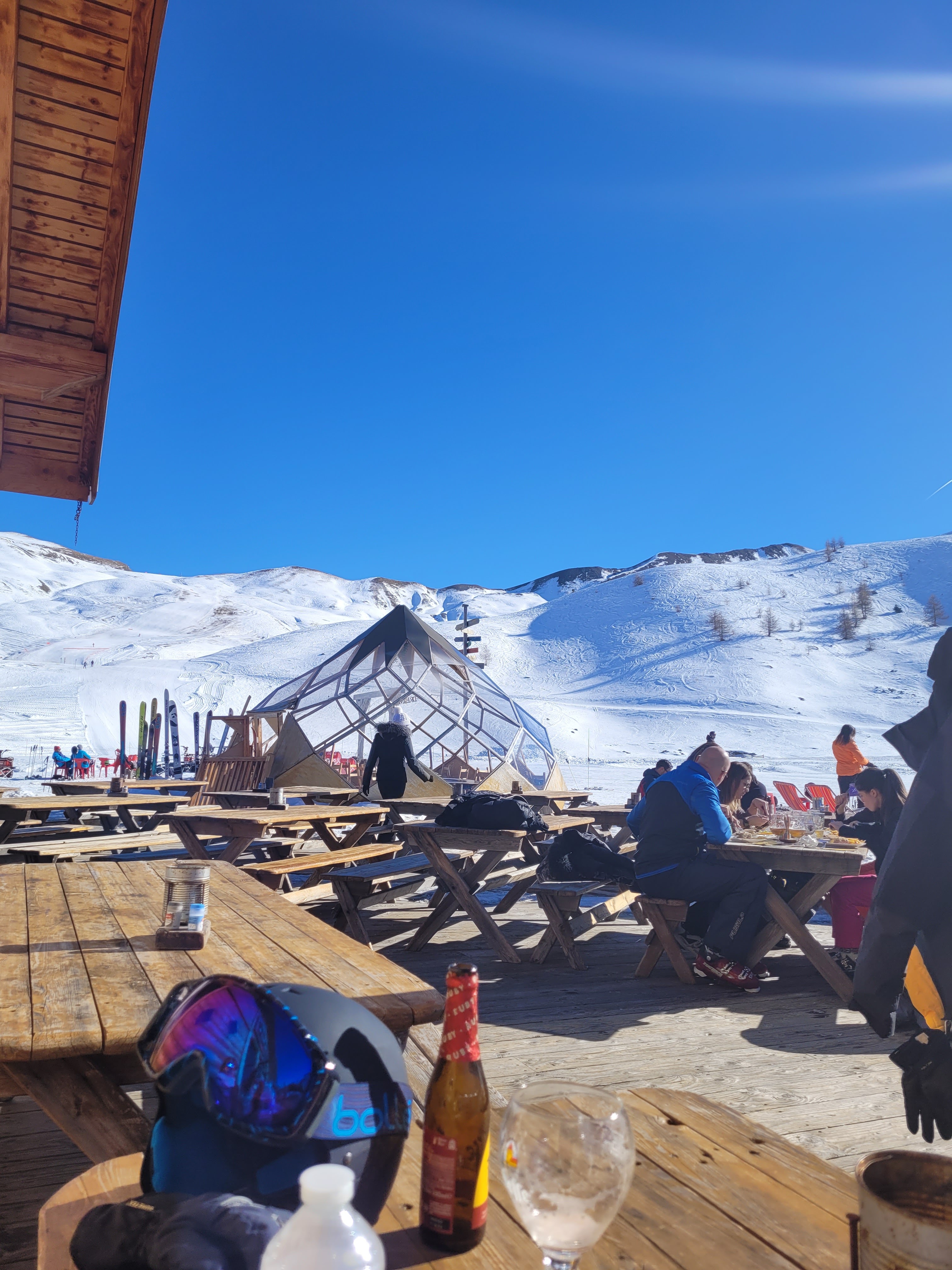 Alors que nous avions décidé de prendre une pause déjeuner au Pra rond, qui, (dans un premier lieu) devait être reposante et agréable, nous avons mes amis et moi commandé une tournée de bières conséquente. Le patron avait avec recette de quoi réparer ses chicos à la sch Cependant à la vue du premier paquet de chips déposé sur l’une de ses tables, ce dernier est sorti comme Chuck Norris d’un saloon texan. Après s’être fait traité de Parigots (alors que je suis auvergnat quelle indignité !) nous nous sommes faits dégagés de la terrasse pour finir dans les transats mis à disposition au bord de la piste par la station. Endroit très sympa mais vous l’avez compris, pas des plus accueillants. + 1 pour la musique