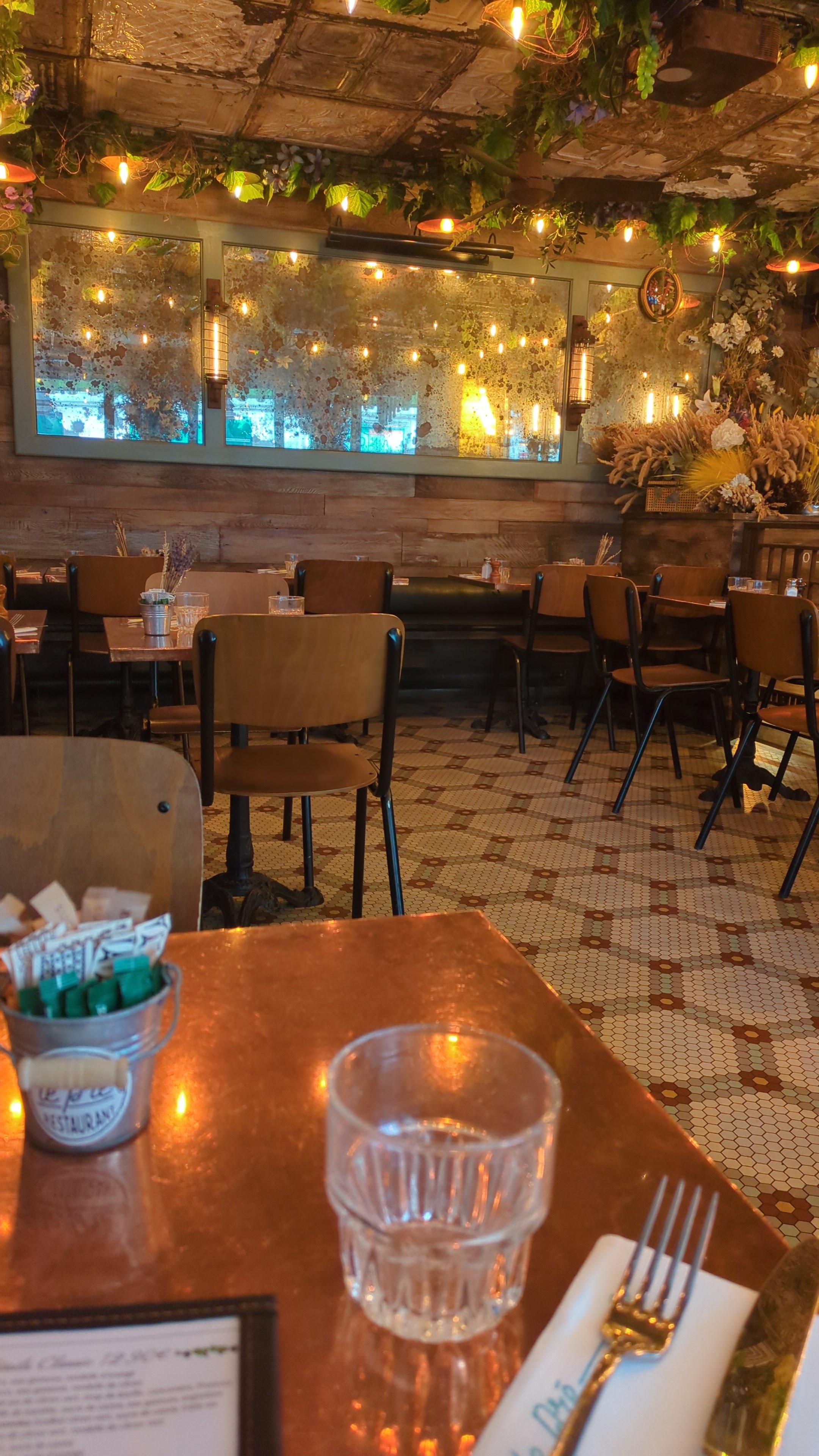 Très bel endroit, personnel chaleureux et attentionné, dîner parisien authentique un vrai régal ! ça change des brasseries classiques. Je vous conseille cette institution qui vaut le détour. Je reviendrai pour le brunch qui me fait déjà saliver ! Allez-y en courant !!