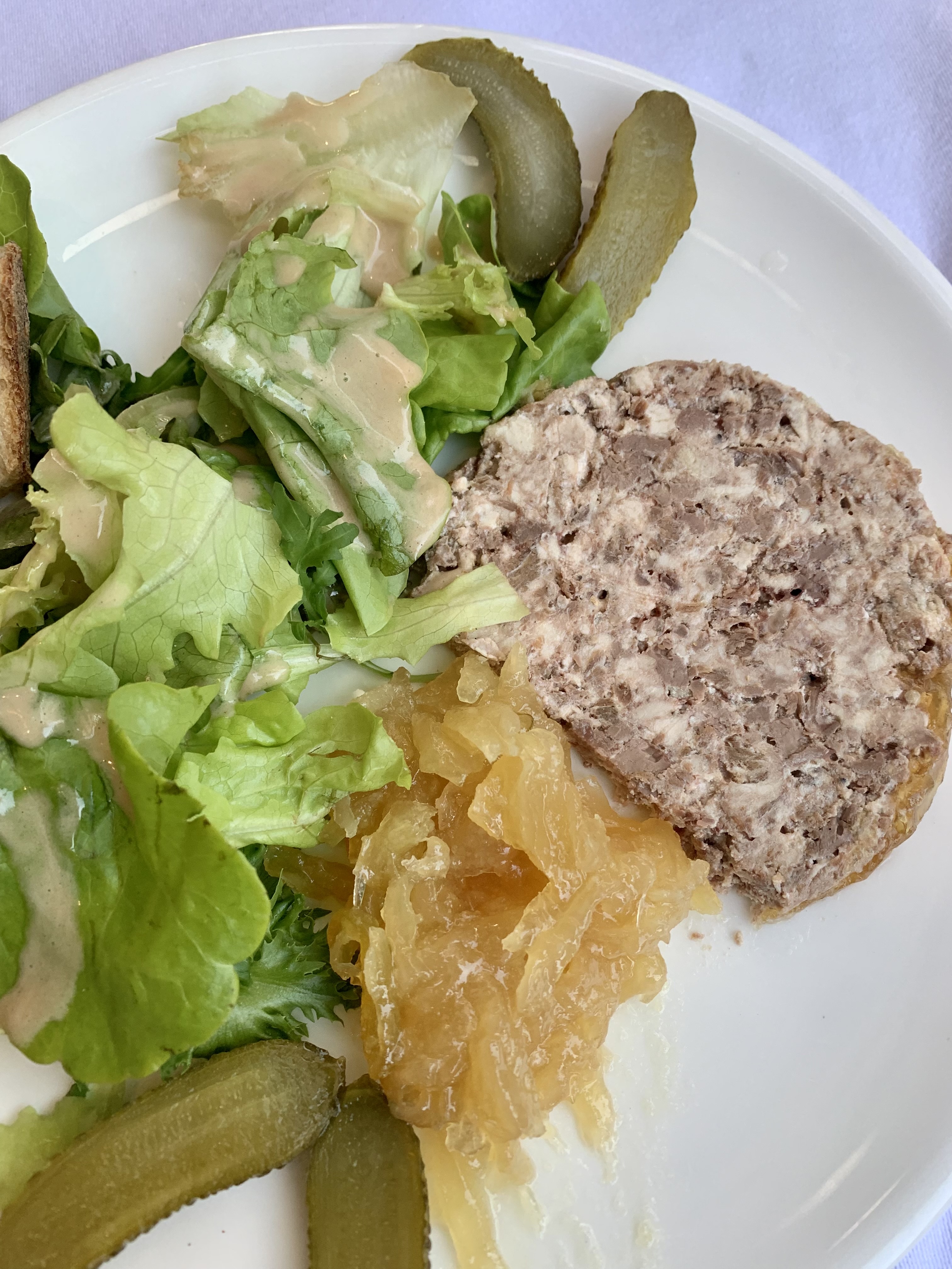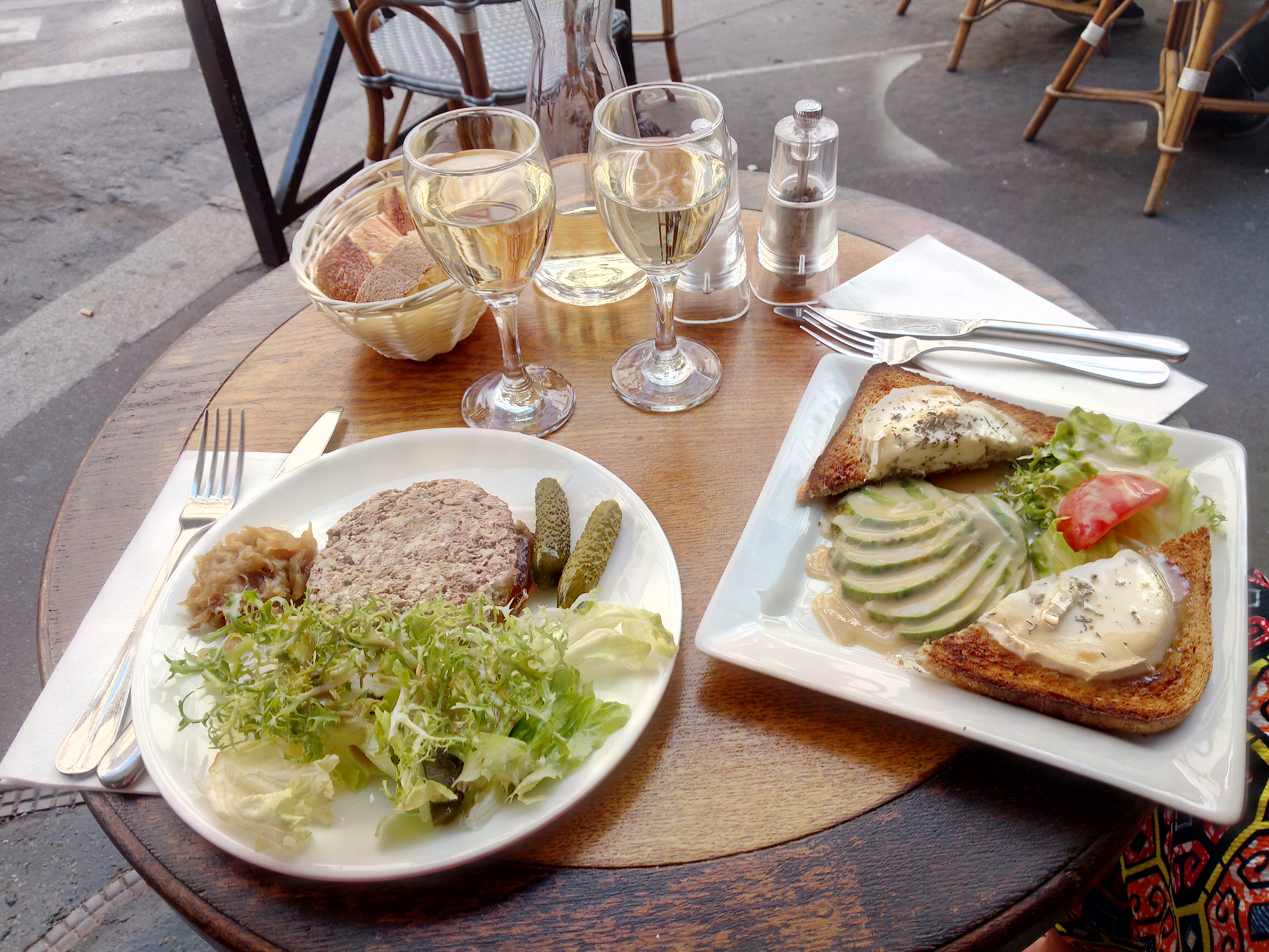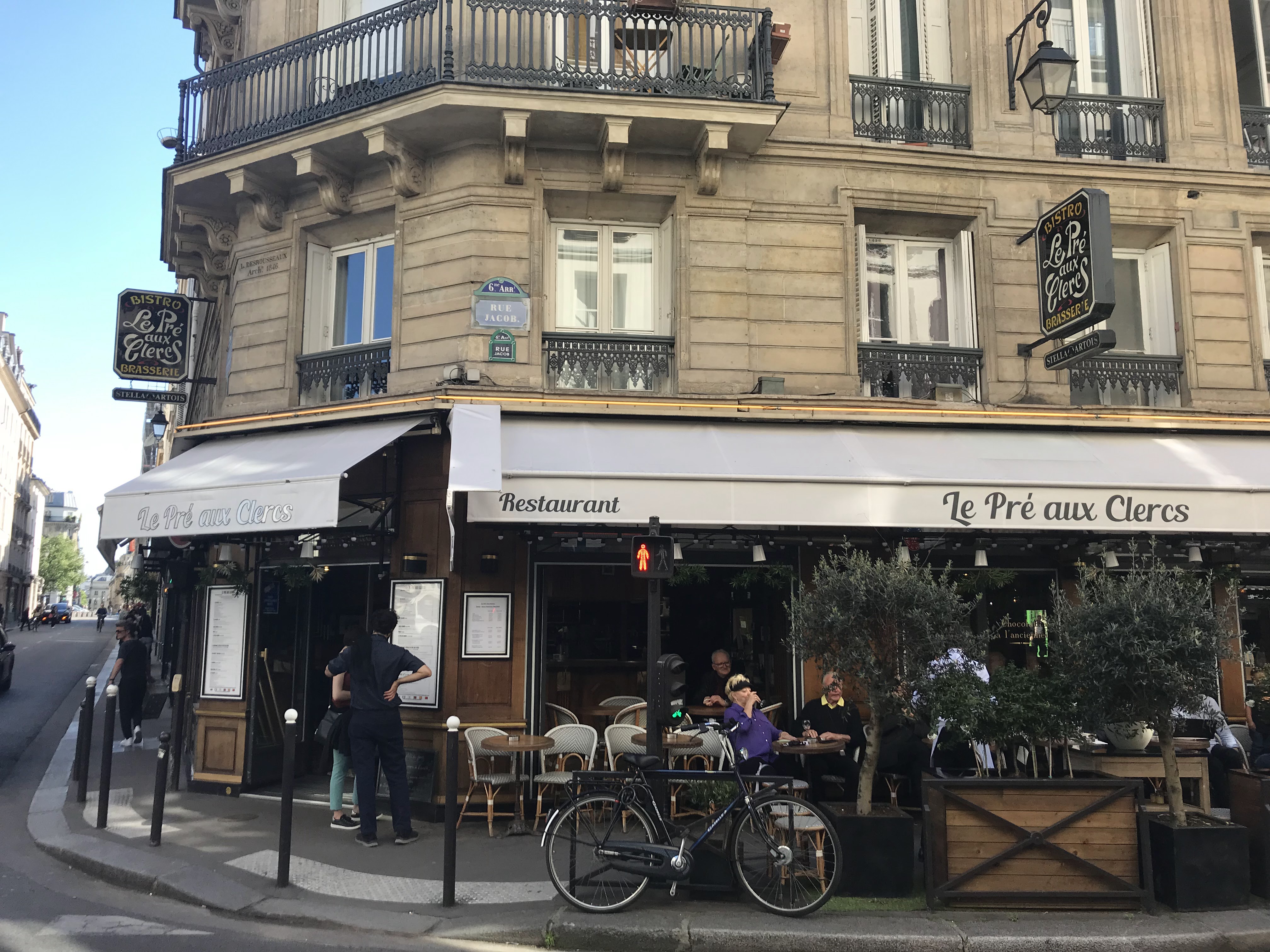 Nous avons eu un délicieux déjeuner composé de charcuterie et de fromage et une fantastique bouteille de vin rouge maison à Lê Pré aux Clercs. C'était délicieux de s'asseoir sur le trottoir de ce restaurant animé et de regarder passer la vie parisienne.
