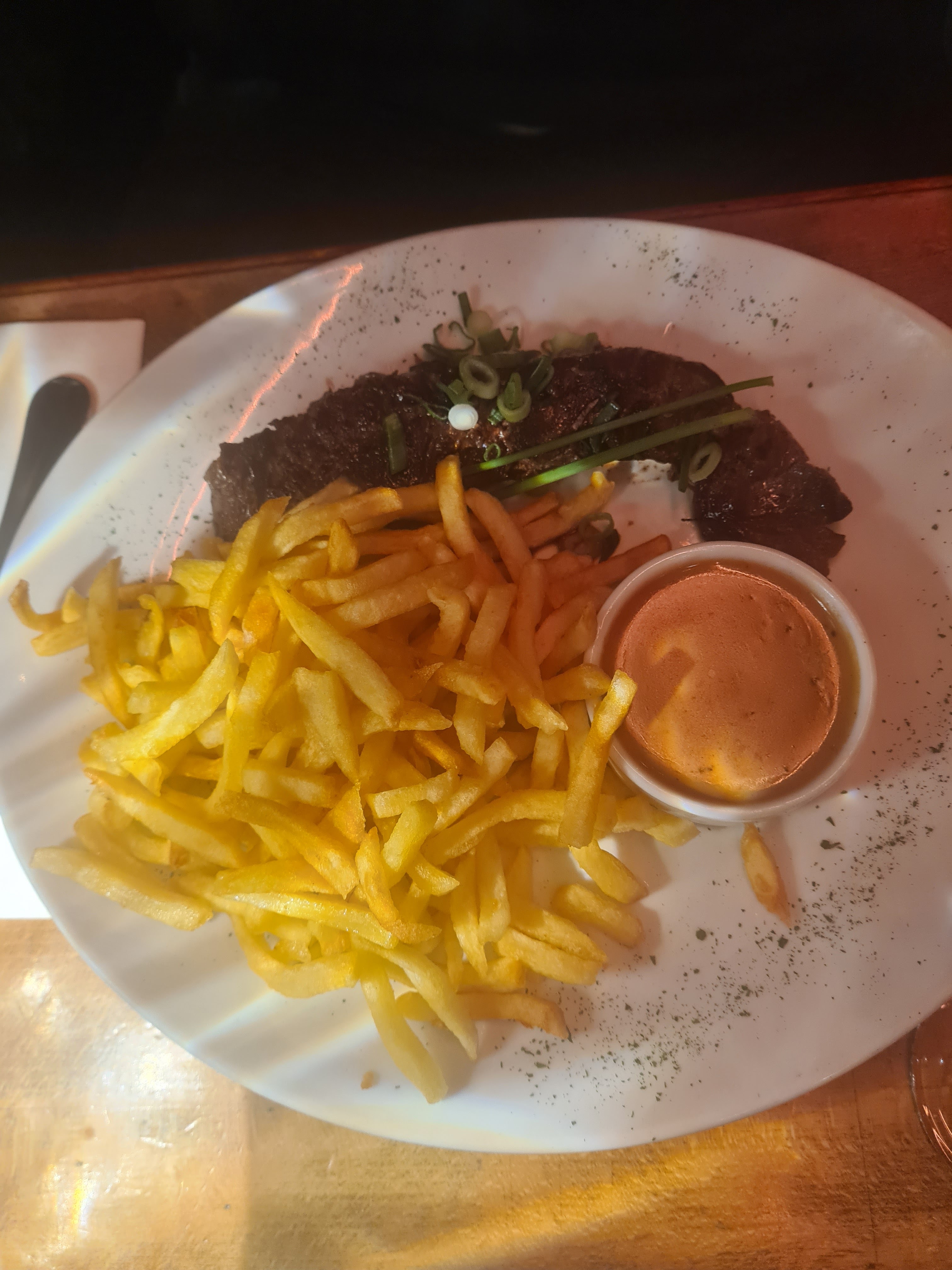 Je suis venu ici plusieurs fois lors de ma visite le week-end dernier. Le personnel était très gentil, l'ambiance était géniale et la nourriture était très savoureuse. Les frites étaient fraîchement préparées, le steak était délicieux et la soupe à l'oignon était un délice. Je le recommande vivement 😍