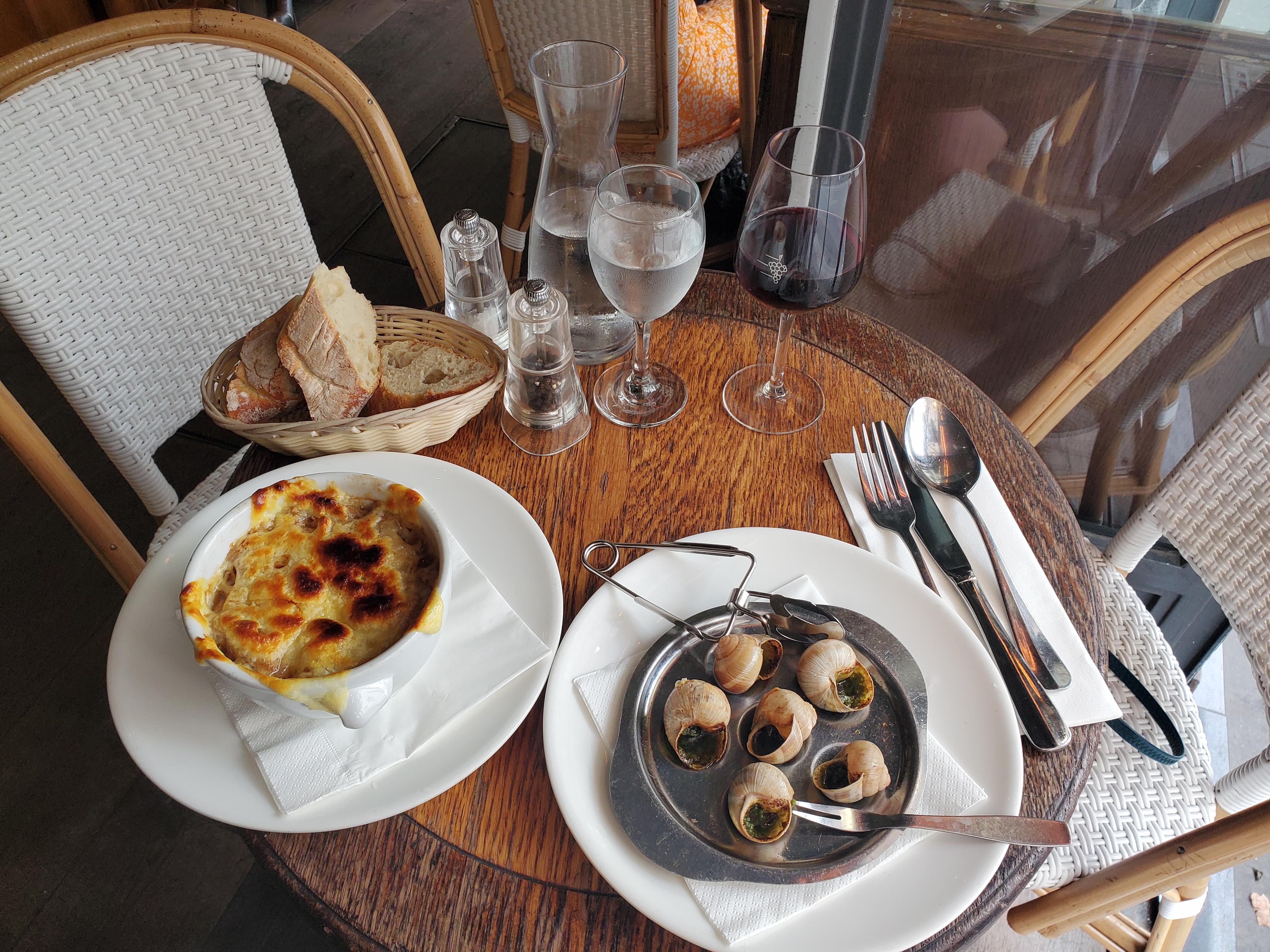 Ce fut une très belle expérience au cœur du quartier Saint German. Commencé avec des escargots qui étaient copieux, avaient un champignon légèrement salé et une délicate saveur d'ail, douce et riche. A été servi avec une sauce au beurre à l'ail pour y tremper. De plus, la soupe à l'oignon n'a rien de spécial, mais c'était ok. Le steak tartare était bon aussi, on pouvait goûter tous les ingrédients en même temps ! Les desserts étaient un régal en fin de journée 😊