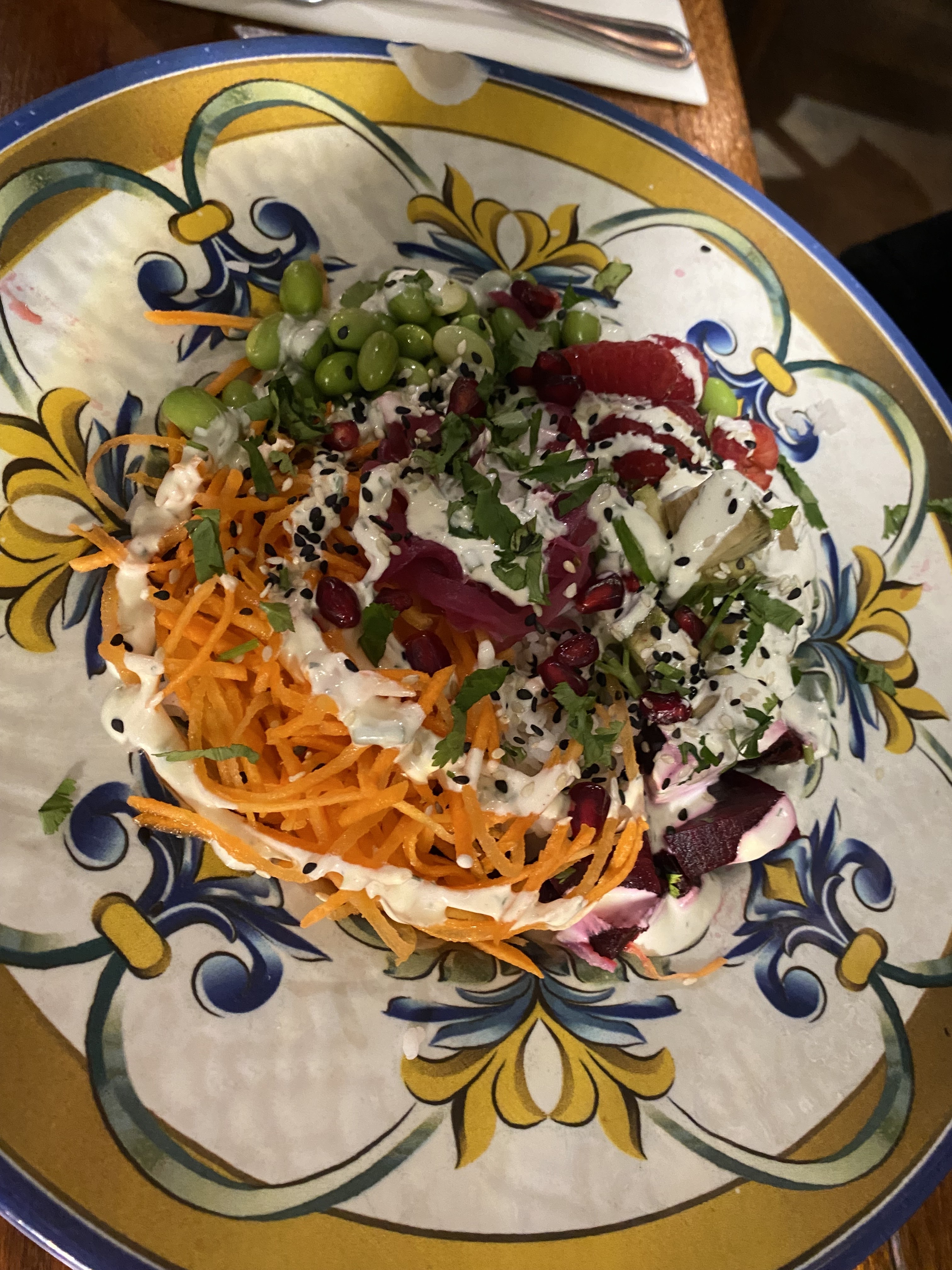 Alors que nous marchions dans la rue, ce restaurant a attiré notre attention en raison de sa bonne ambiance, nous avions faim et nous y sommes allés. Nous avons été bien reçus et placés rapidement à une table même si le lieu était occupé et plein. Quelle que soit la direction dans laquelle vous regardez, vous aurez un look styliste. La sélection de vins est fantastique et les plats du menu sont uniques. Le canard est excellemment préparé ainsi que les pâtes faites maison, à la fin nos assiettes étaient complètement vides, on en voulait encore ! J'y retournerais sans hésiter pour une nourriture délicieuse et un bon moment. Très recommandé