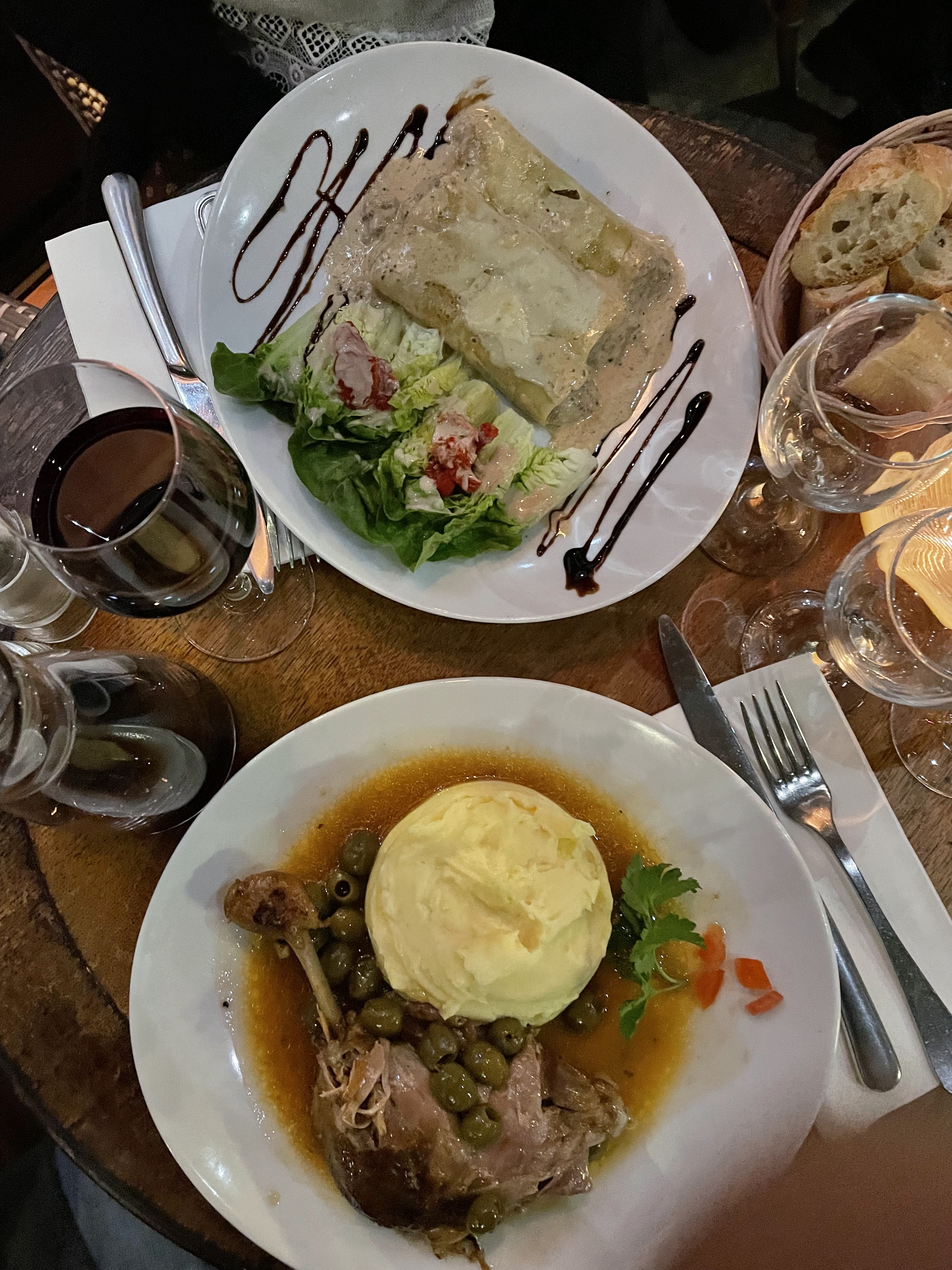 Le confit de canard est hors de ce monde. J'ai mangé du canard dans de nombreux pays, et jamais je n'ai mangé un canard confit aussi succulent, aussi riche et décadent que celui que j'ai vécu aujourd'hui. La sélection de vins n'est pas mauvaise, il y a un peu de circulation à l'extérieur, mais tout cela n'a pas d'importance lorsque vous dégustez le canard. Si vous êtes près d'ici, faites-le. Je suis tenté d'acheter un appartement près d'ici juste pour pouvoir répéter cette expérience tous les quelques mois.