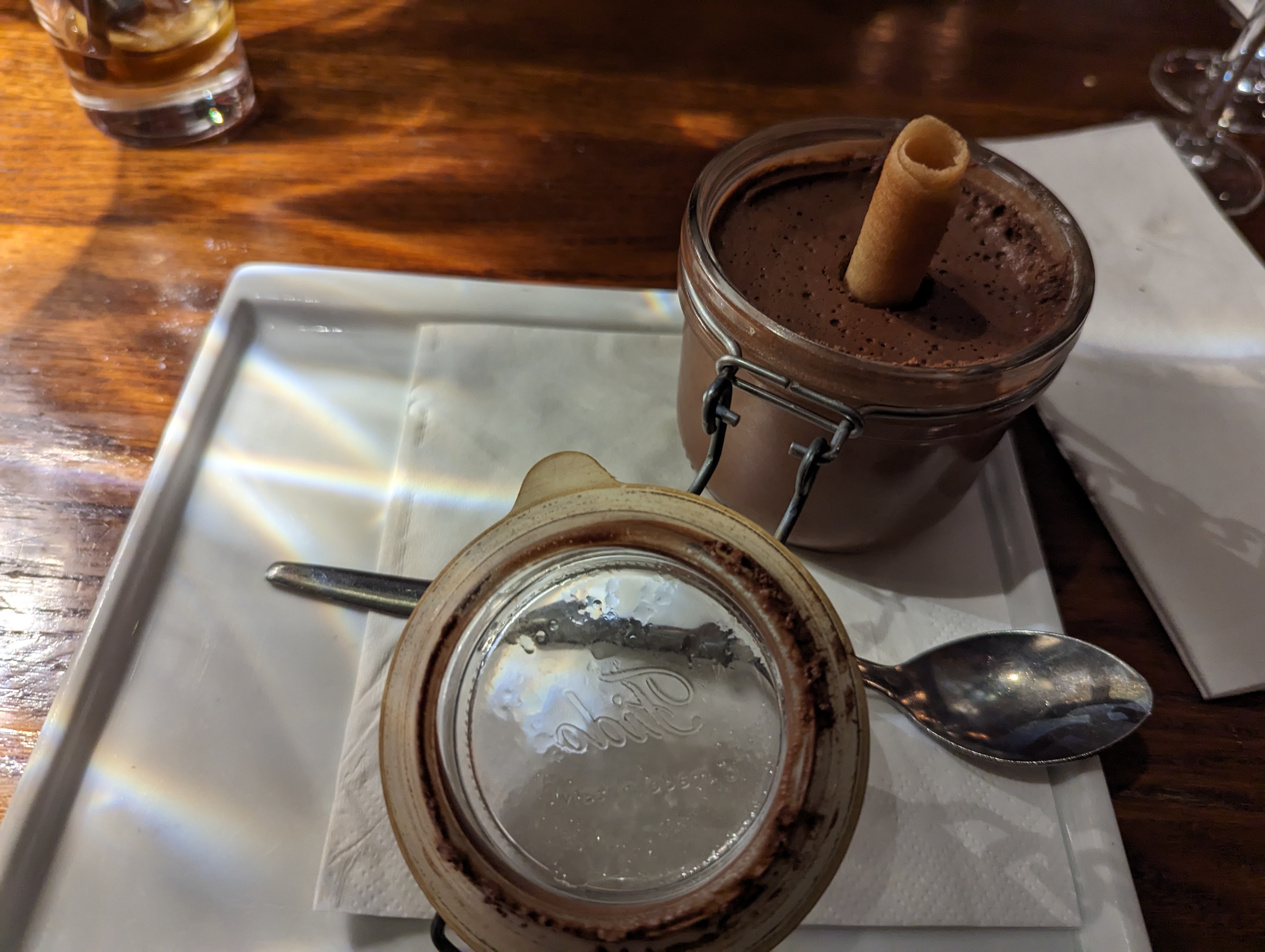 Entrecôte pas super tendre et tiedasse pour moi. Même sort pour le magret de monsieur. Les cuissons (saignant et rosé) étaient cependant respectées. Les accompagnements sans plus et plutôt gras. Service correcte et ambiance chaleureuse mais très touristique.
