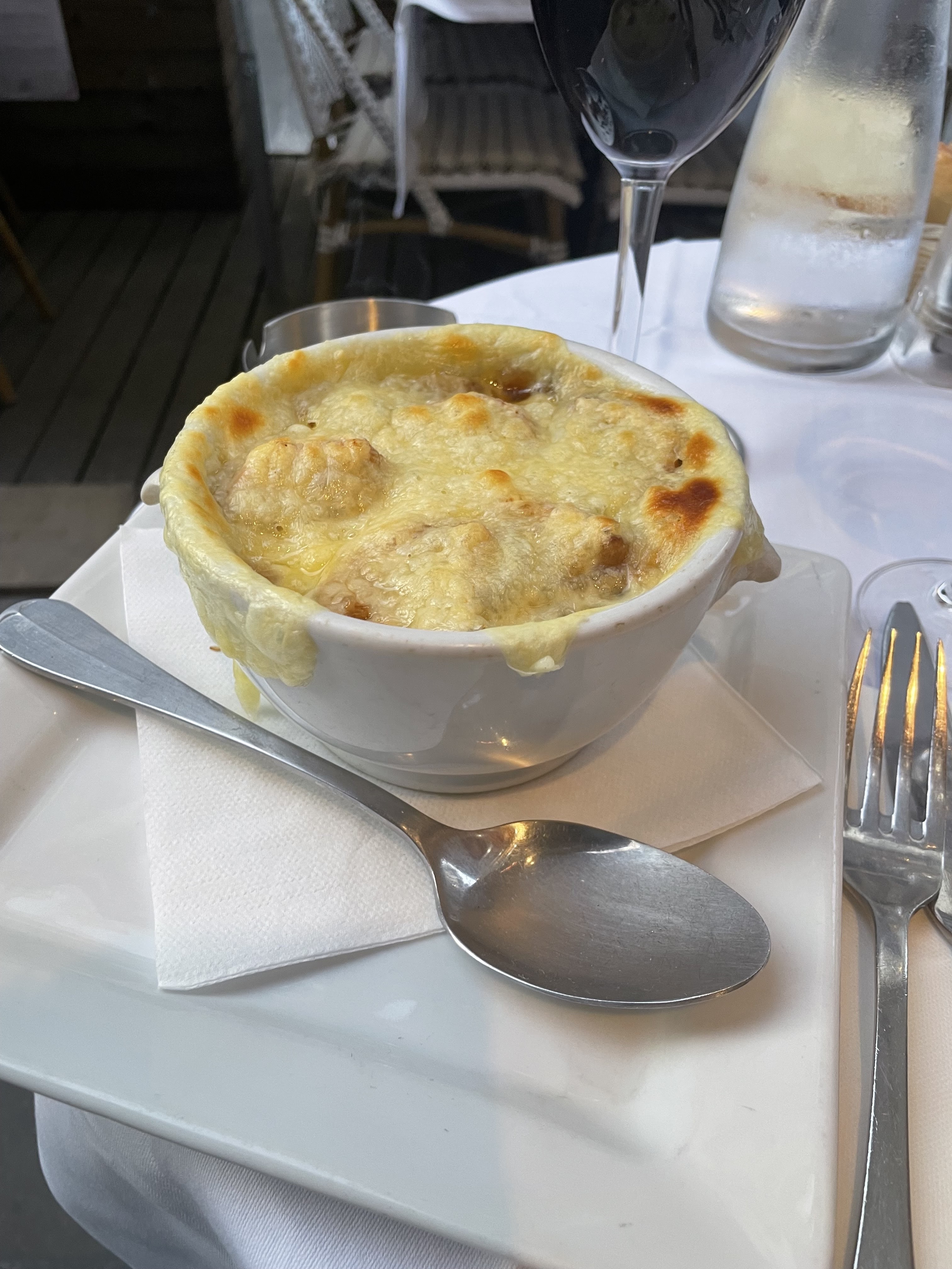 Excellent service, ambiance et musique. La soupe à l'oignon incroyable, la crème brûlée fantastique. Belle soirée, merci.