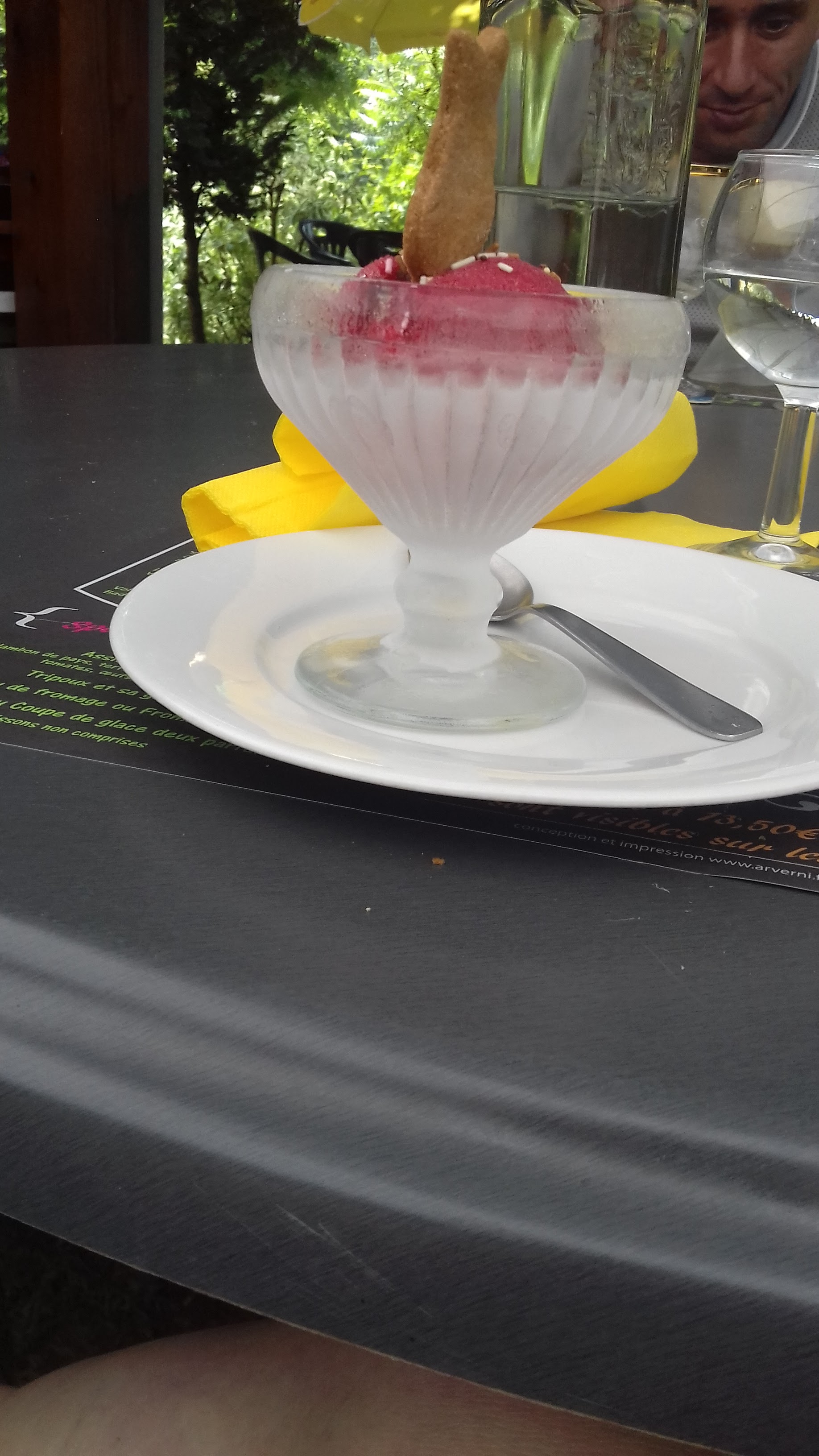Un mois d’août … un froid comme jamais. On essaye d’aller dans un restaurant pas loin, mais au vu des commentaires, nous avons préfères partir un peu plus loin et atterrir à Saint Germain l’Herm. Restaurant complet et quand la restauratrice nous a vu, elle a poussé la table ou été posés les condiments. Menu 15,50€ : entrée, plat, fromages et dessert … du jamais vu! J’ai eu le plaisir de goûter à l’araignée de veau avec des frites cuitent sur l’instant T, une terrine de légumes en entrée, c’était merveilleux! J’étais déjà repue! Toutefois j’ai eu droit a un vrai plateau de fromages locaux. Mais quel plaisir d’avoir et de voir le plateau posé comme cela, sans se soucier de ce que l’on prend ou autre !!! Certes j’ai tout de même prit 5 petits morceaux de fromages, mais fallait les goûter! ;) Le dessert, c’est mon mari qui l’a mangé après un jarret de porc cuit au feux de bois! C’était une crème caramel … pour l’avoir goûté, elle fait partie de mon top 3, après celles de ma famille (tout de même !!! ) Comme vous avez pu le comprendre, ce fut le meilleur hasard qui nous ait arrivé en ce début de séjour. Je ne suis pas prête d’oublier cet instant de bienveillance et de douceur dans vos plats !!! Encore bravo!
